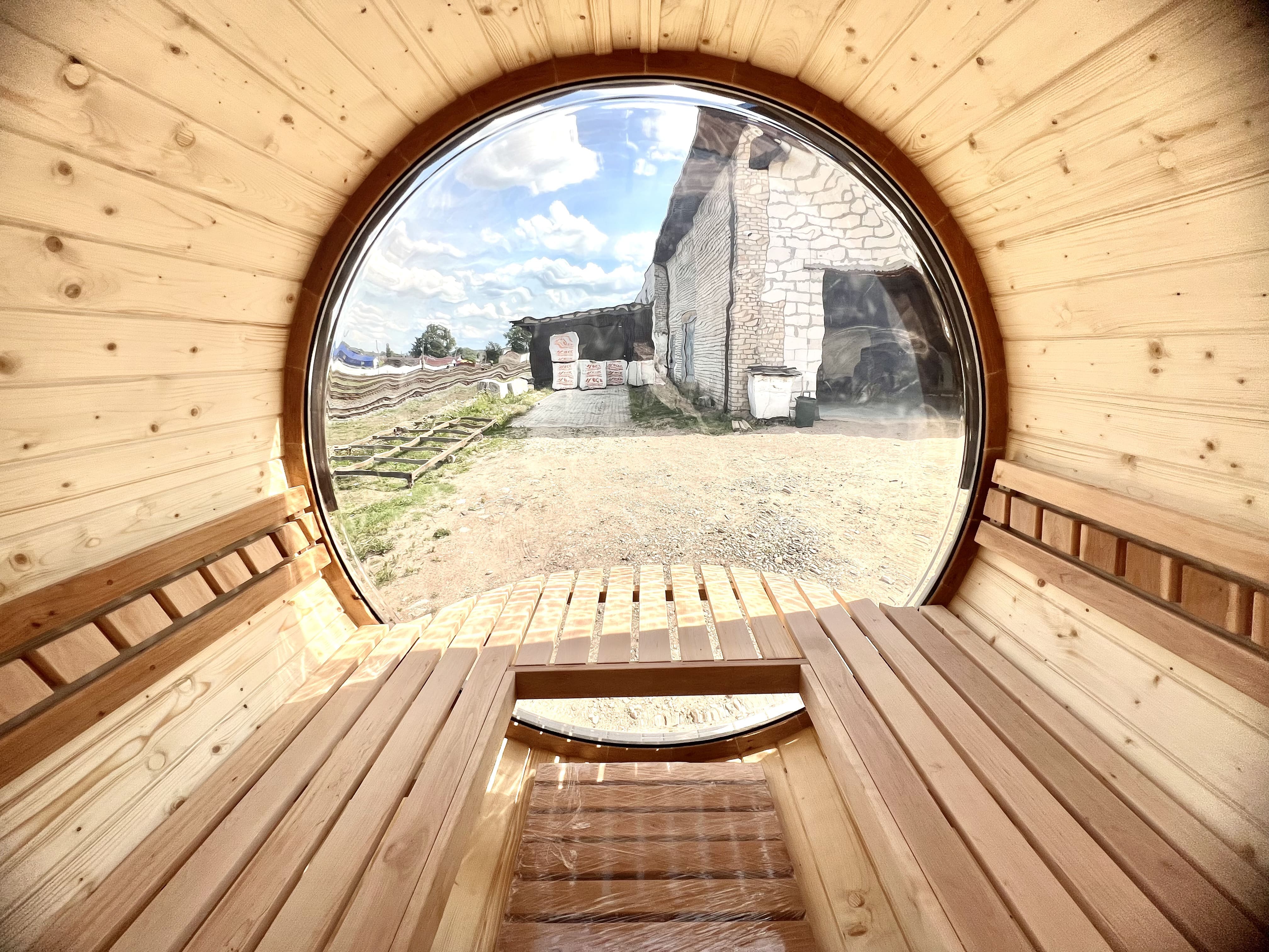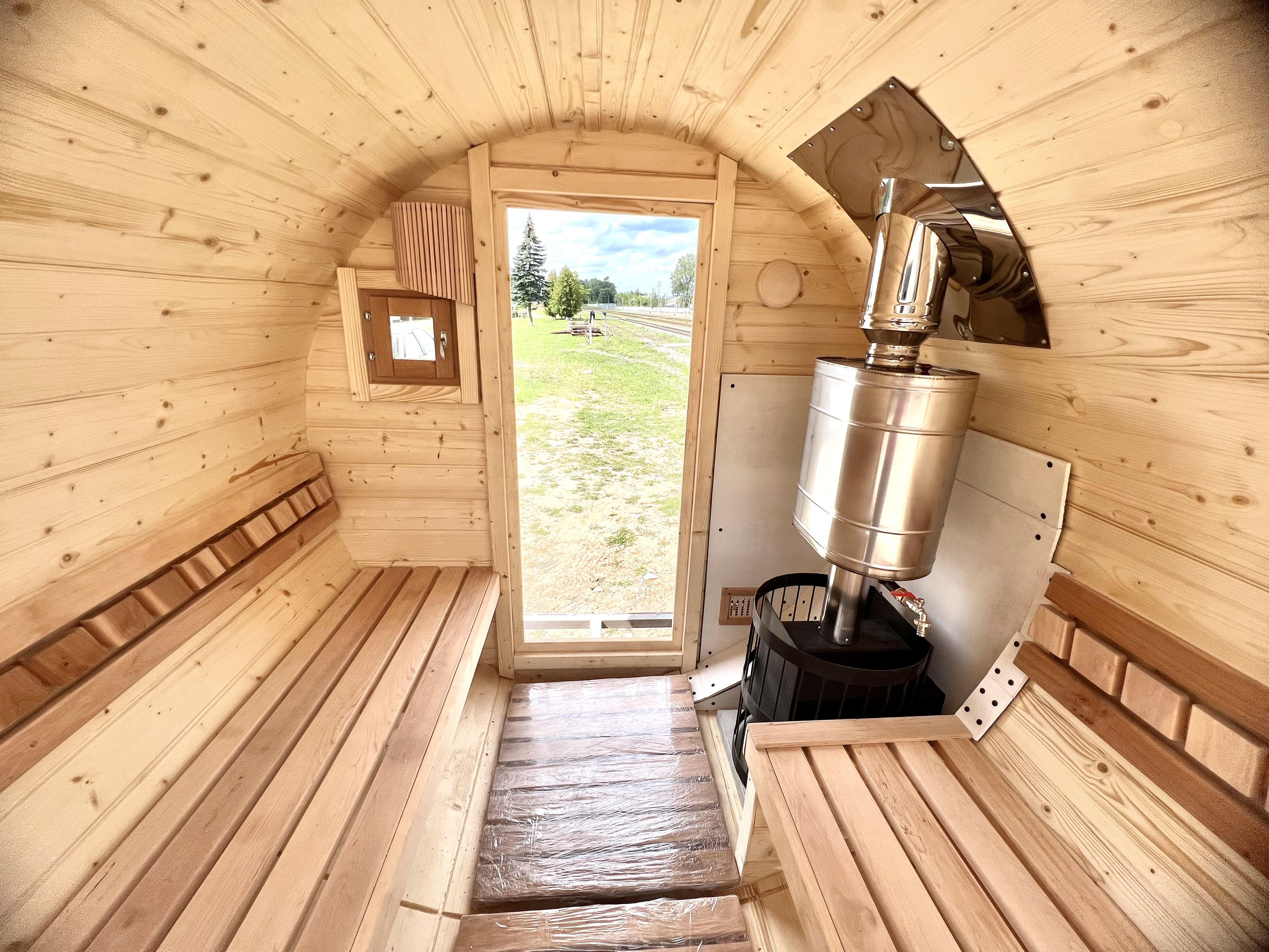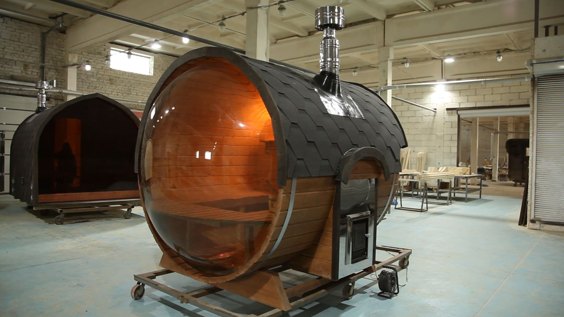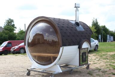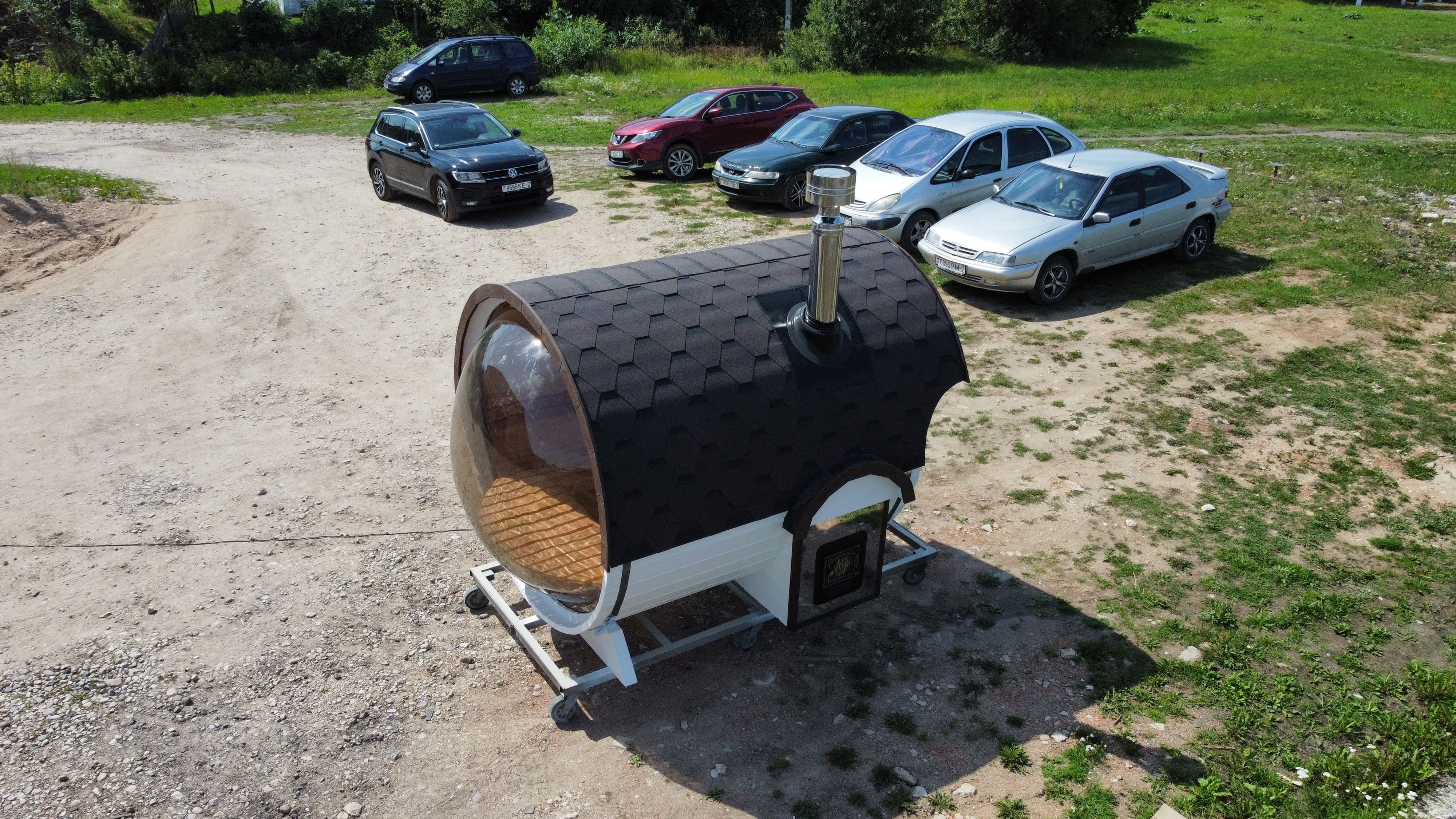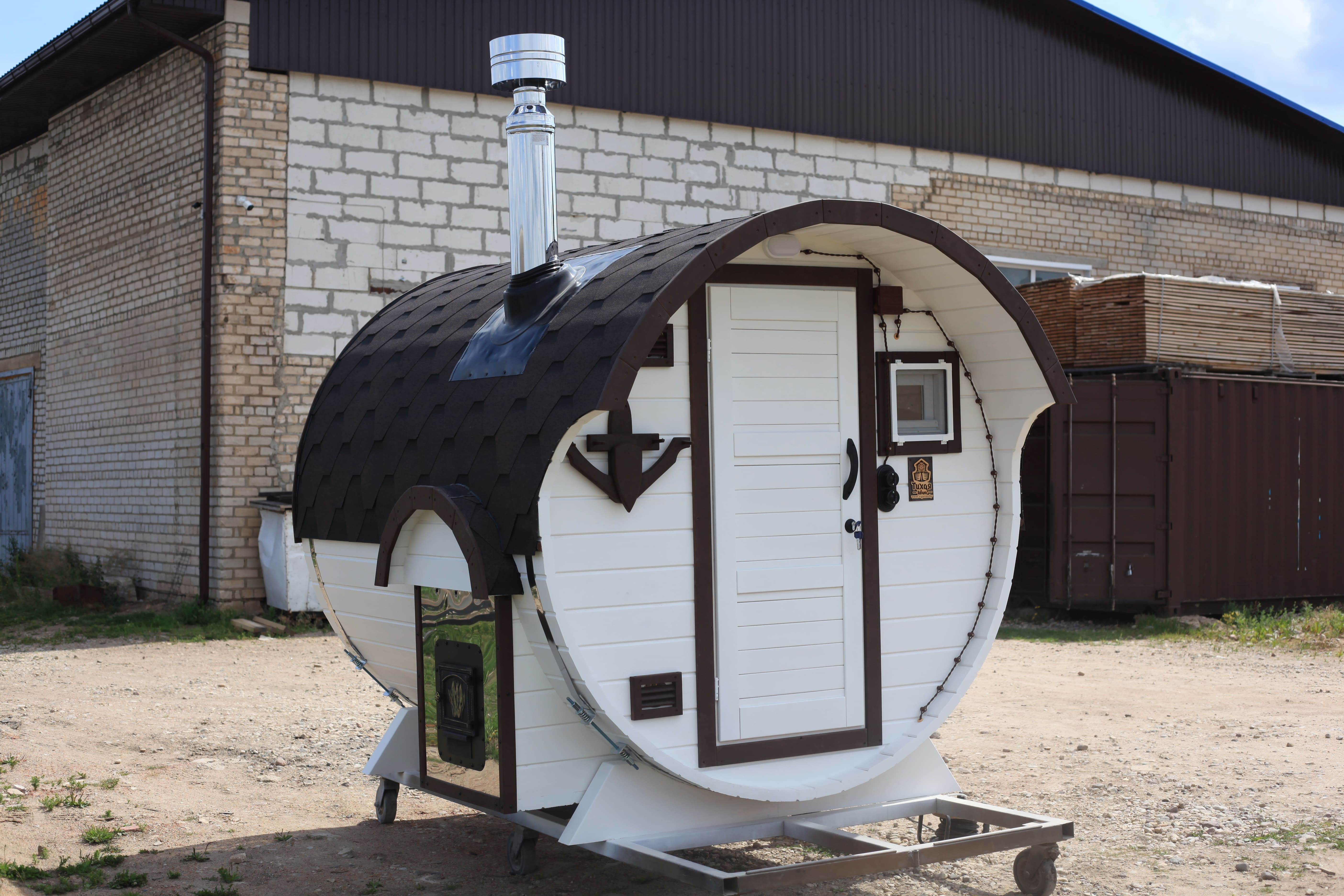 Несмотря на компактные размеры, внутренняя планировка продумана так, чтобы обеспечить удобное размещение и качественный прогрев. Мобильная баня с выпуклым окном легко перемещается и может использоваться там, где невозможно разместить стационарную парную.