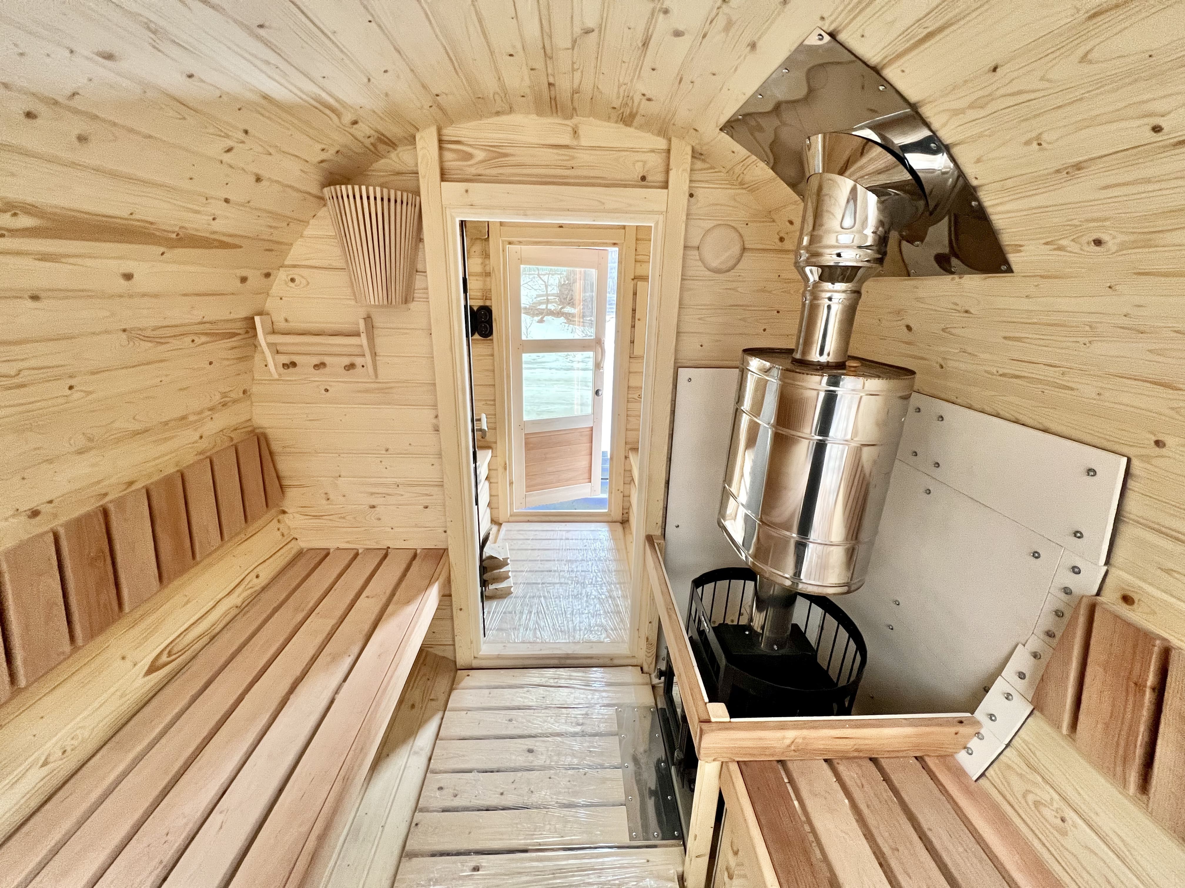 Увеличенная длина обеспечивает комфортное размещение нескольких человек и полноценный прогрев парной. Модель сочетает мобильность и функциональность стационарной бани.