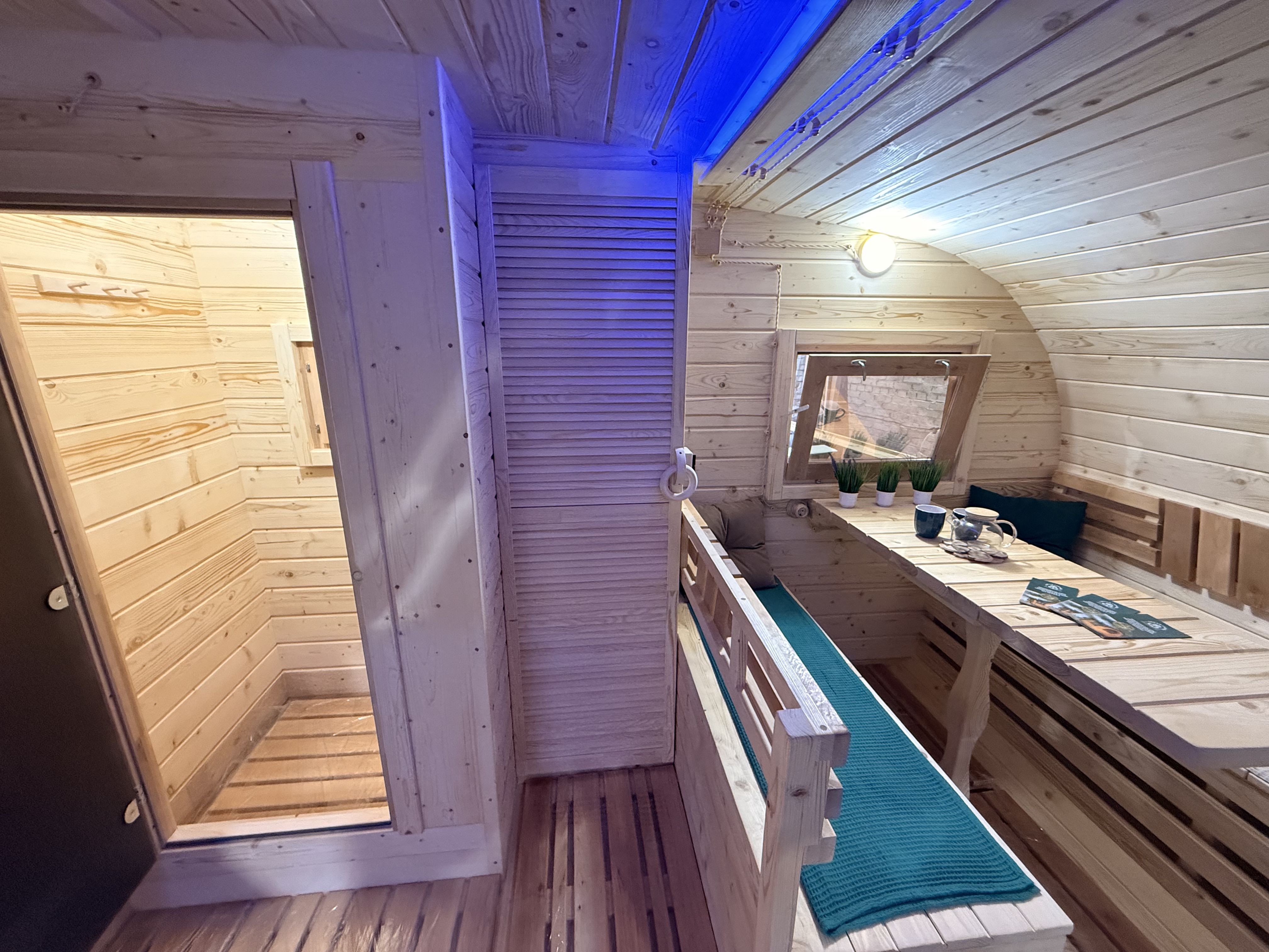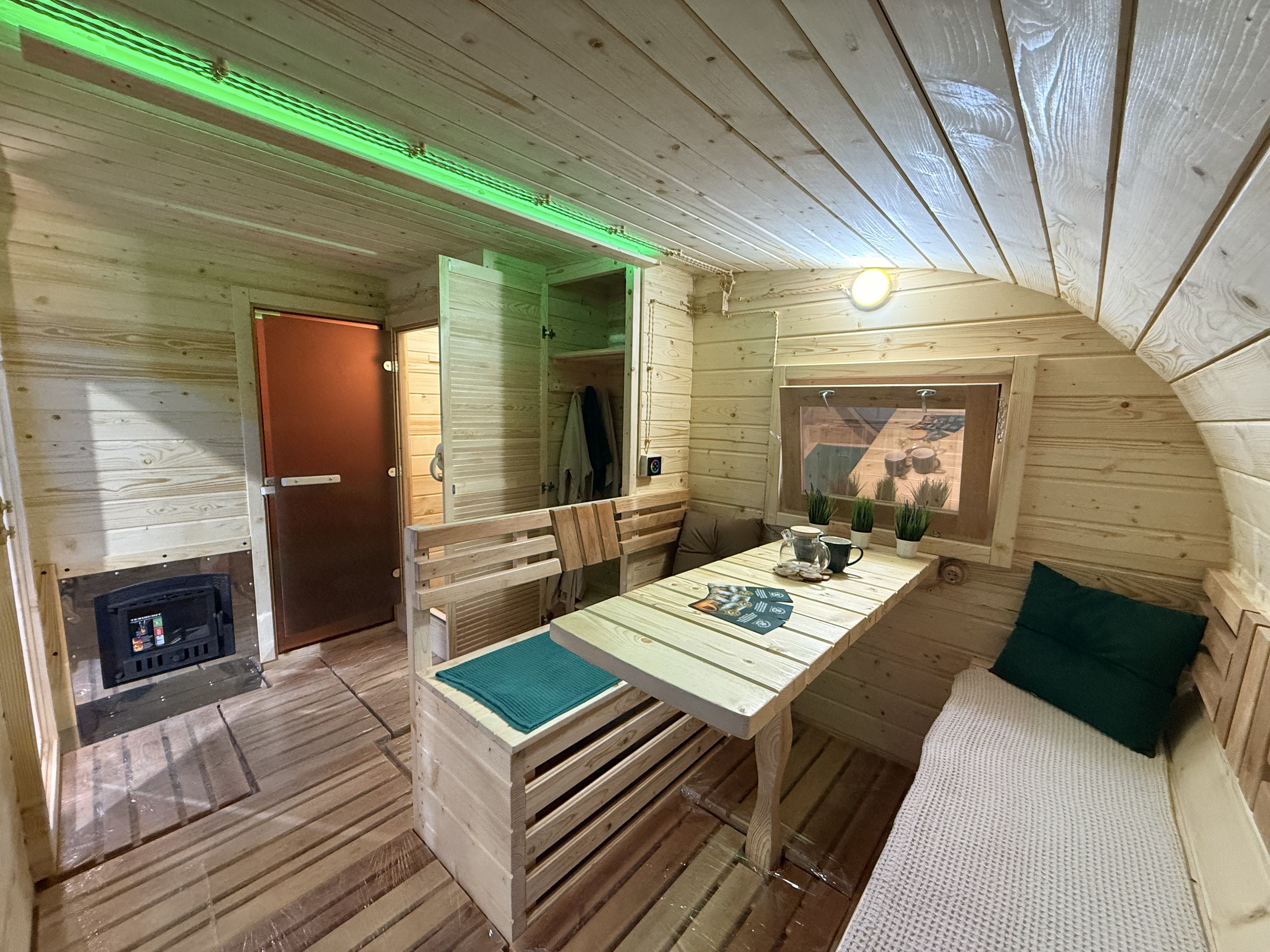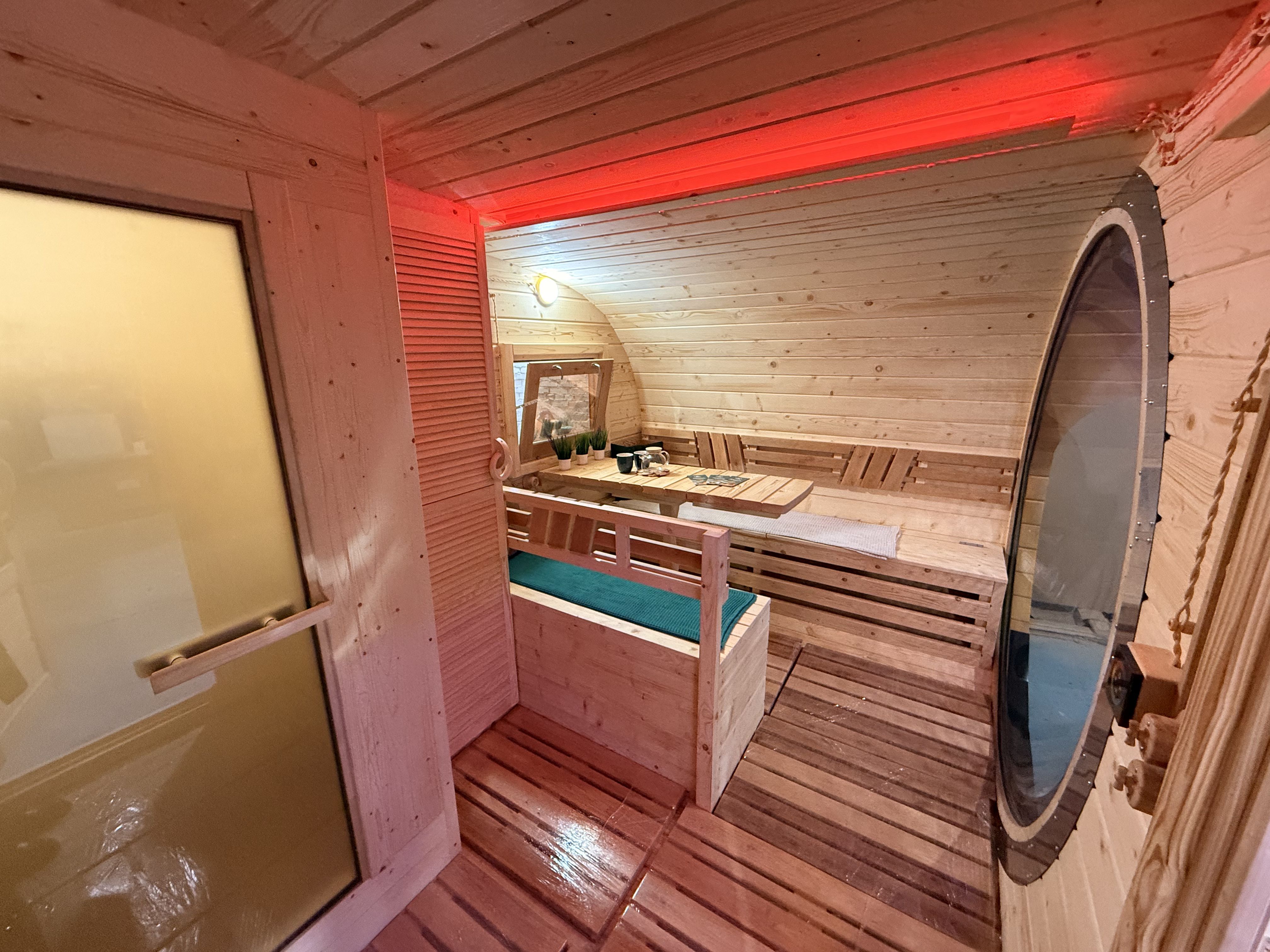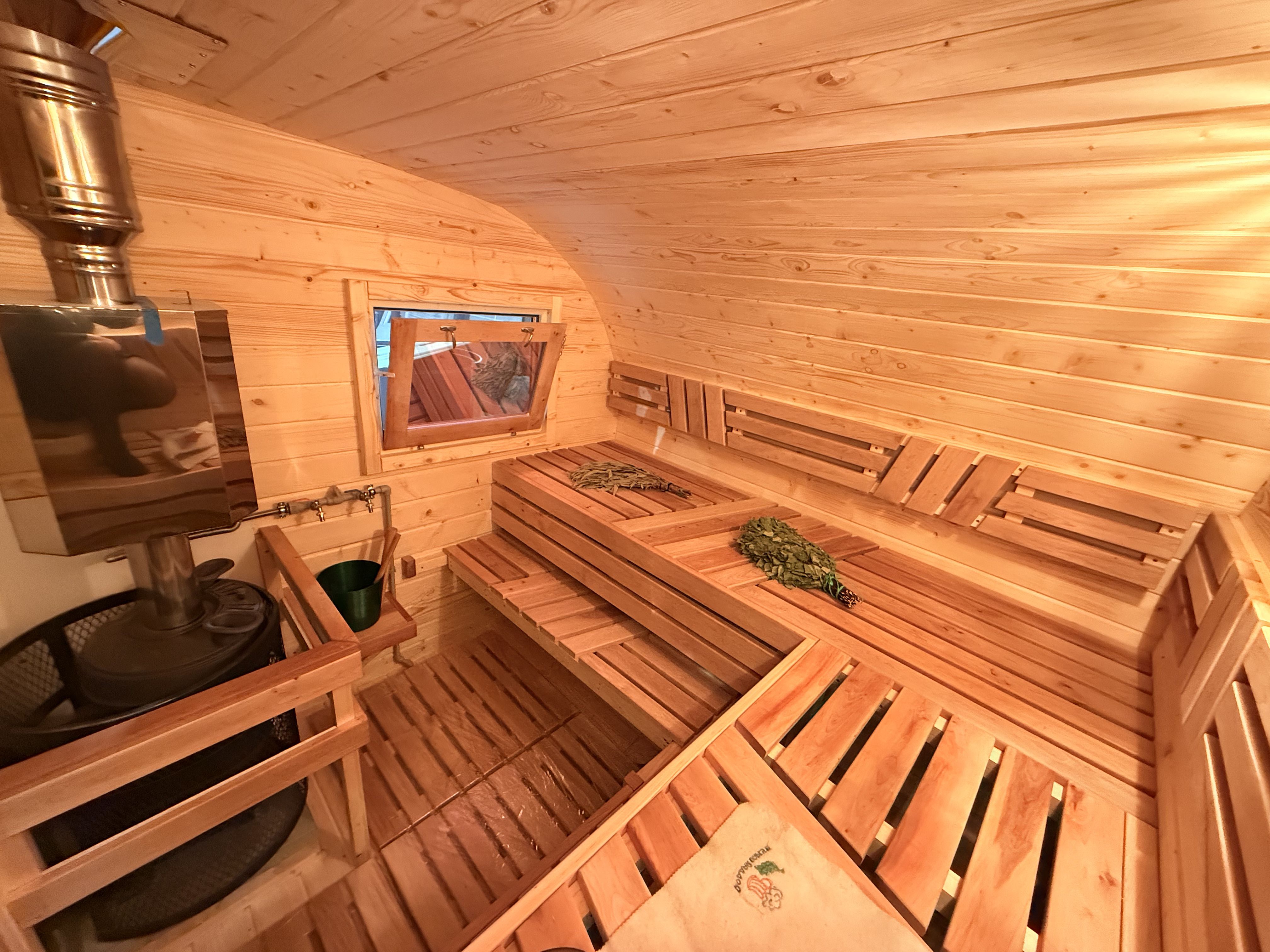 Баня овальная 3*6 метра с панорамным куполом и душевой