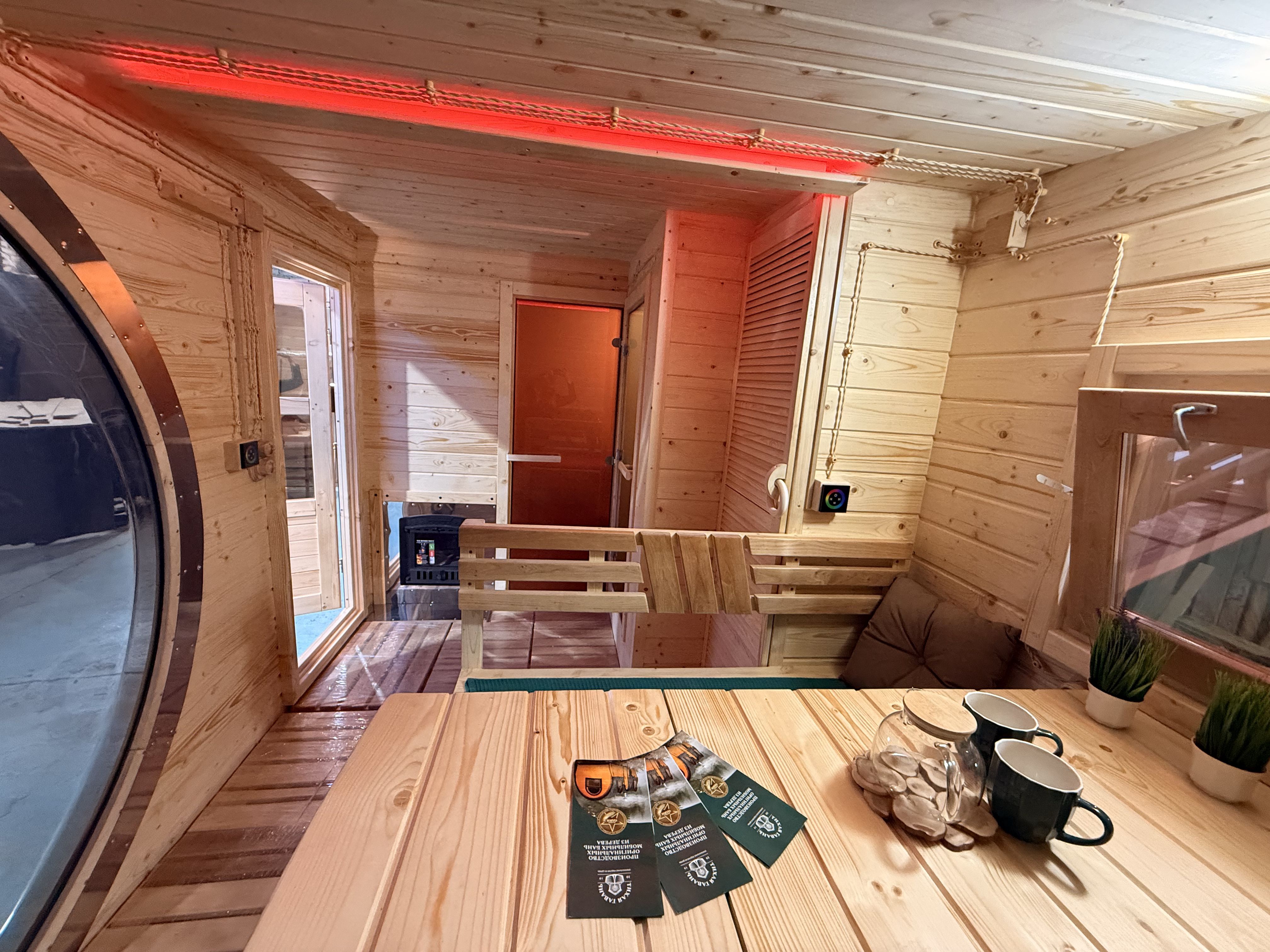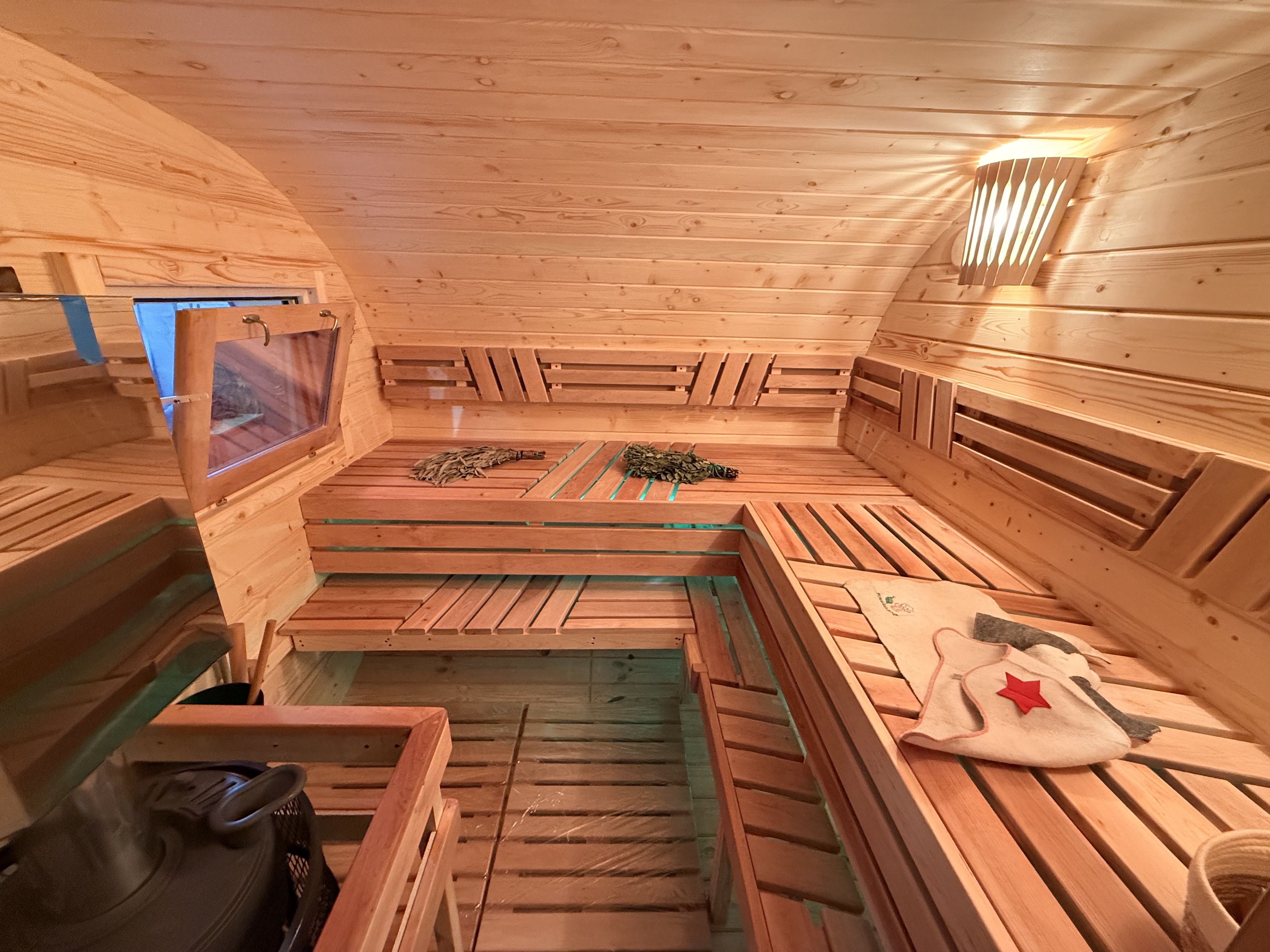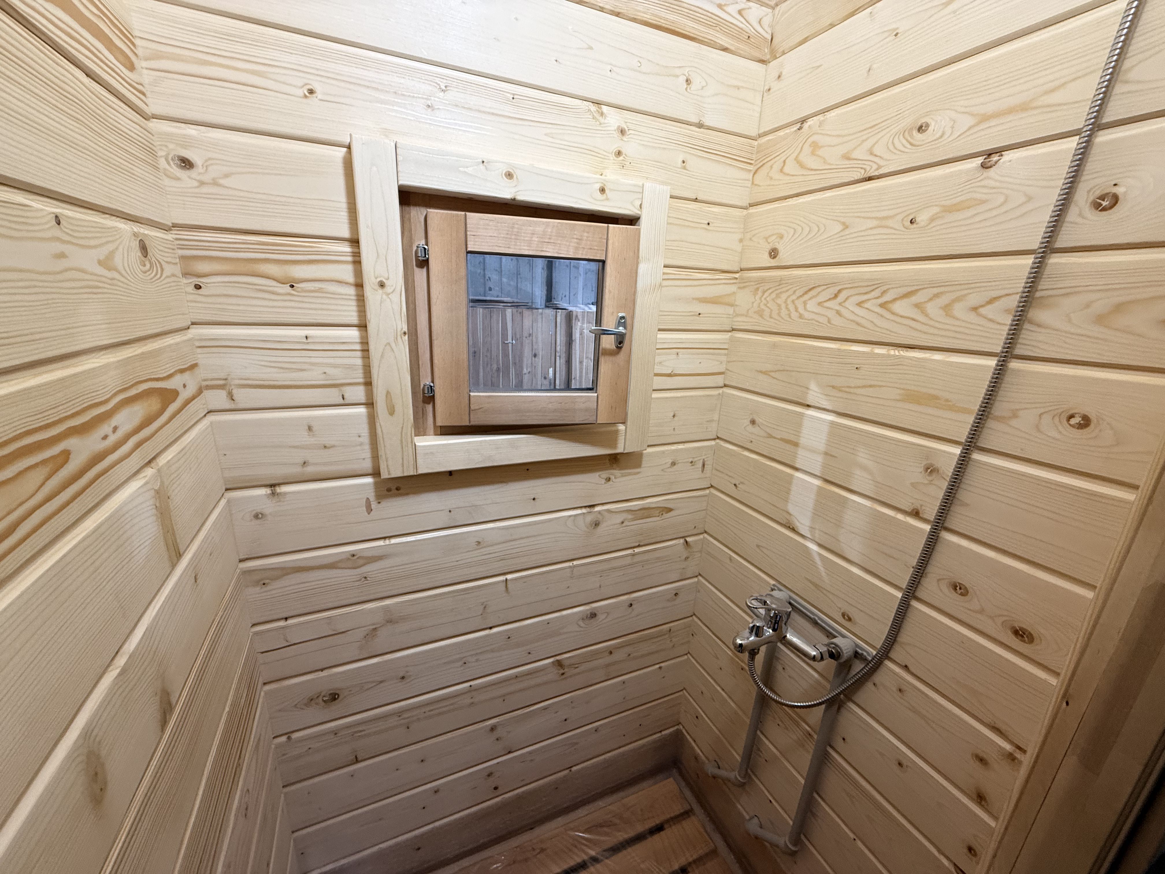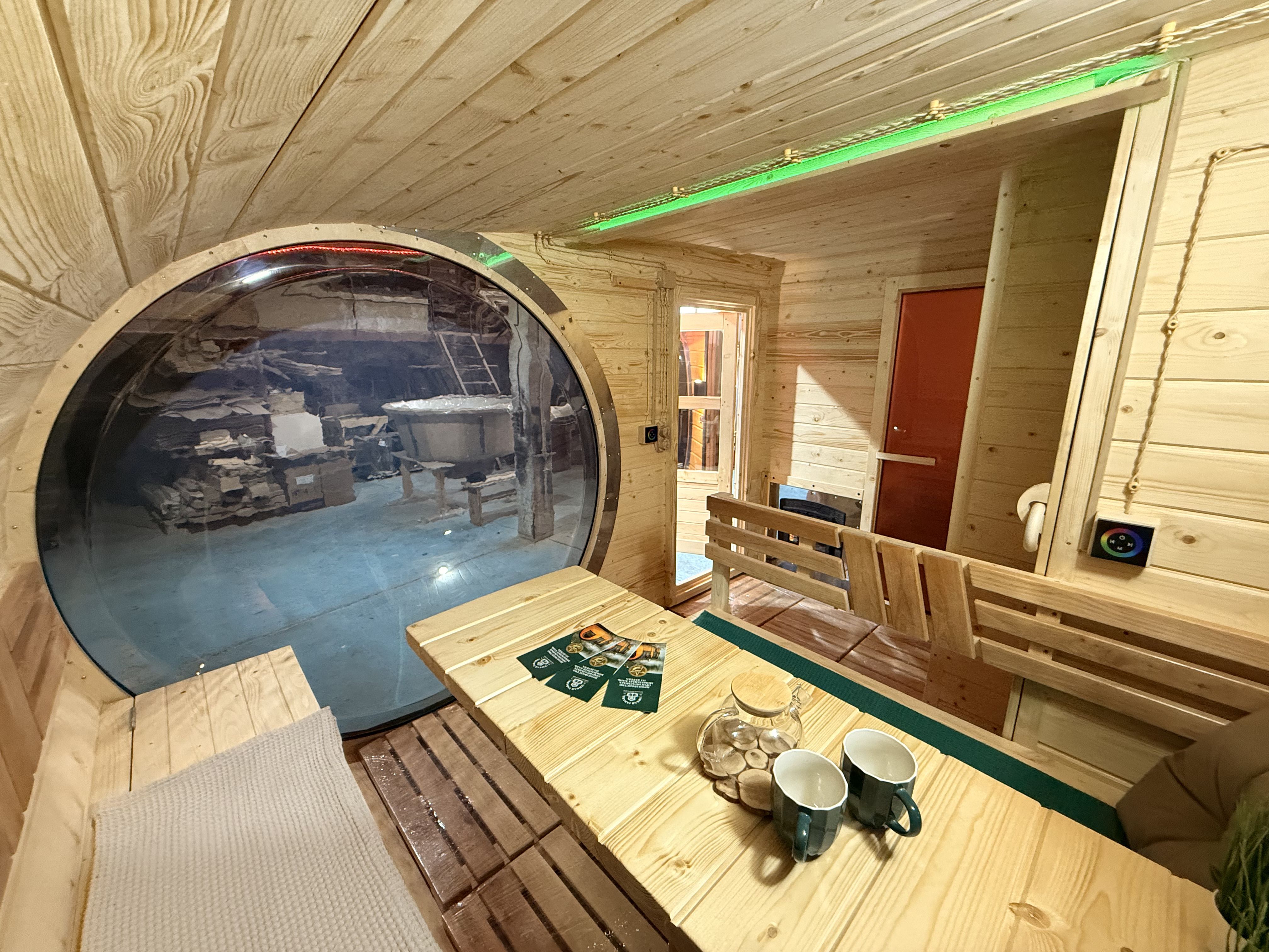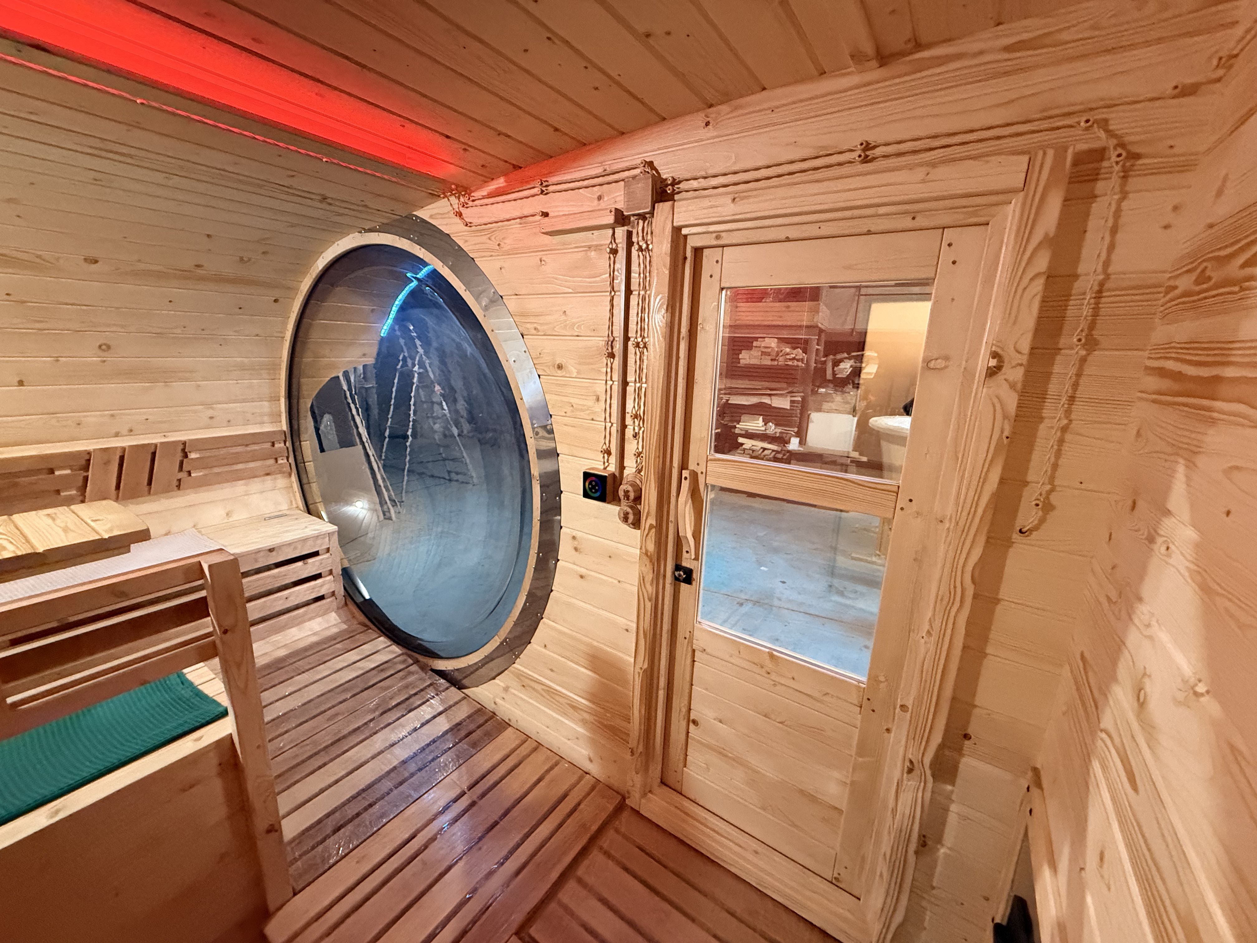 Баня овальная 3*6 метра с панорамным куполом и душевой