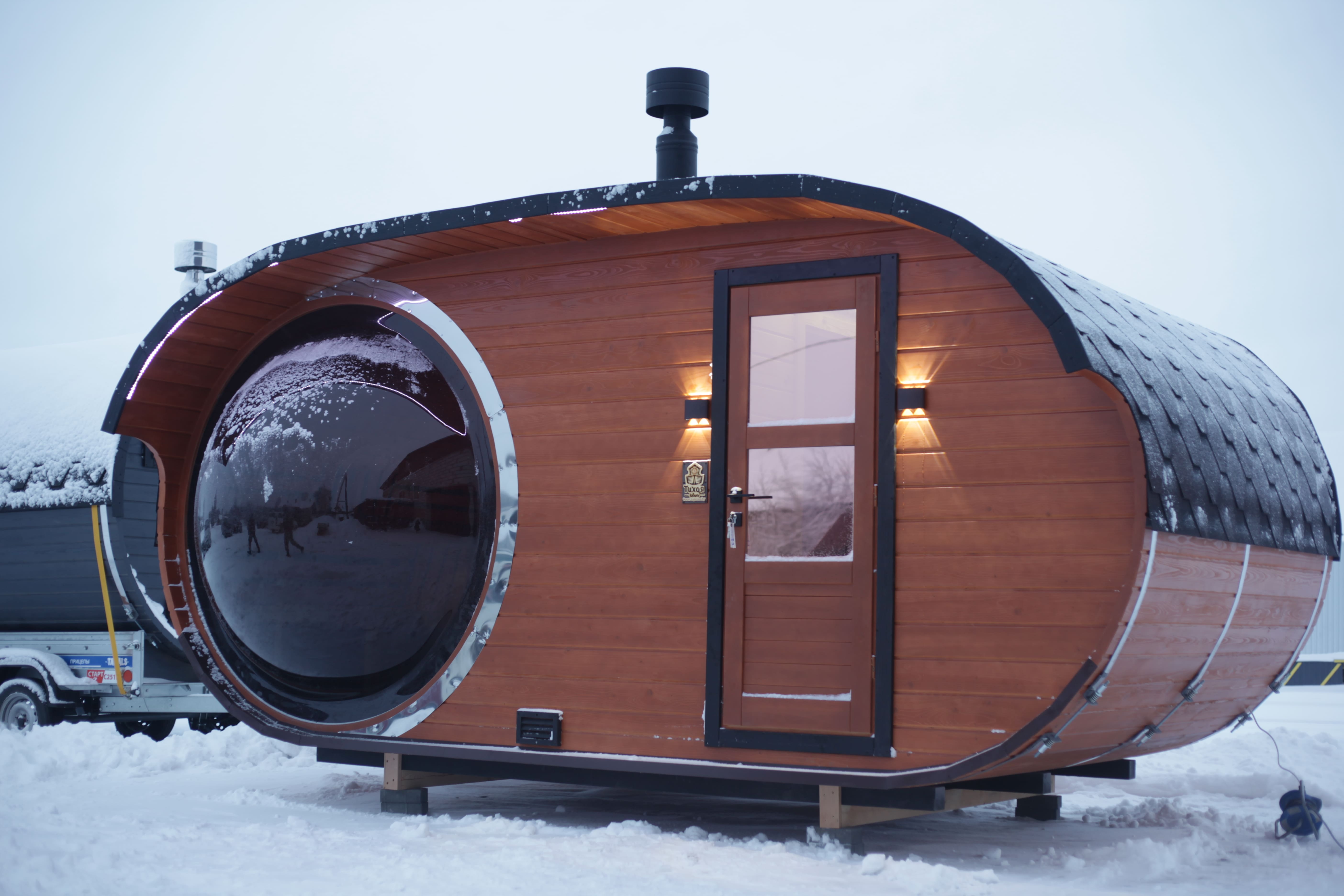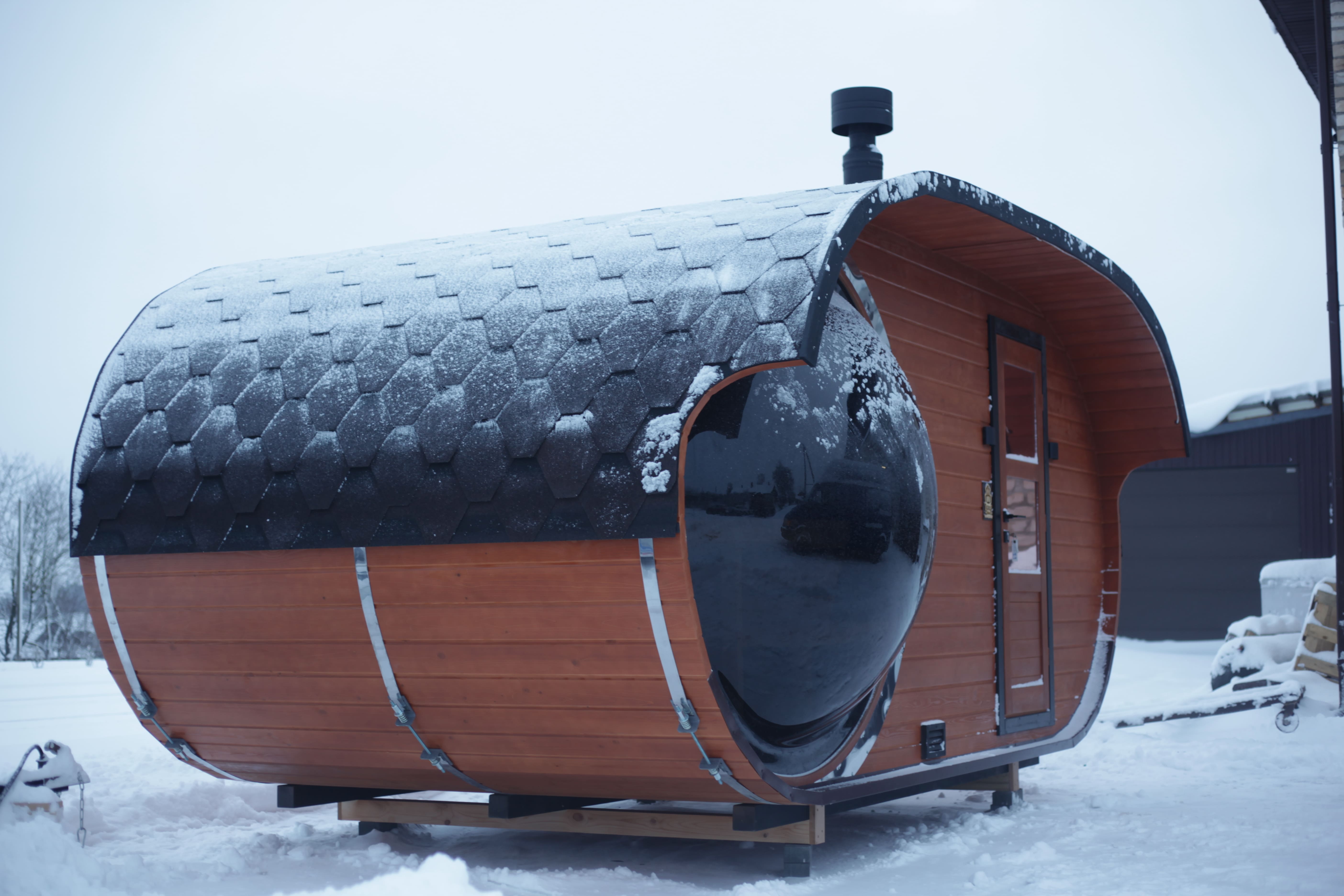Доставка бань в Россию осуществляется через транспортные компании. Перевозчика заказчик может выбрать самостоятельно или с нашей помощью.