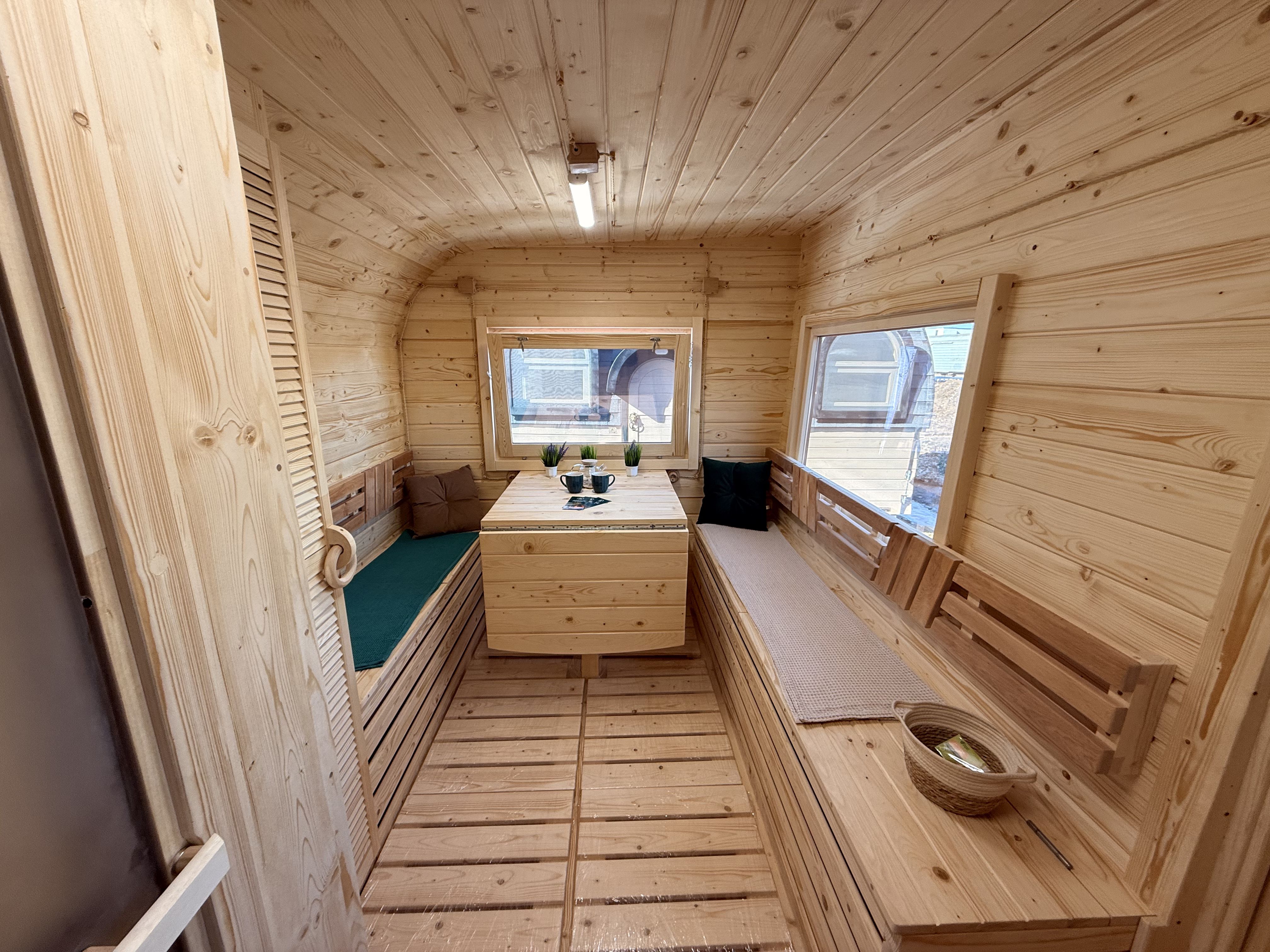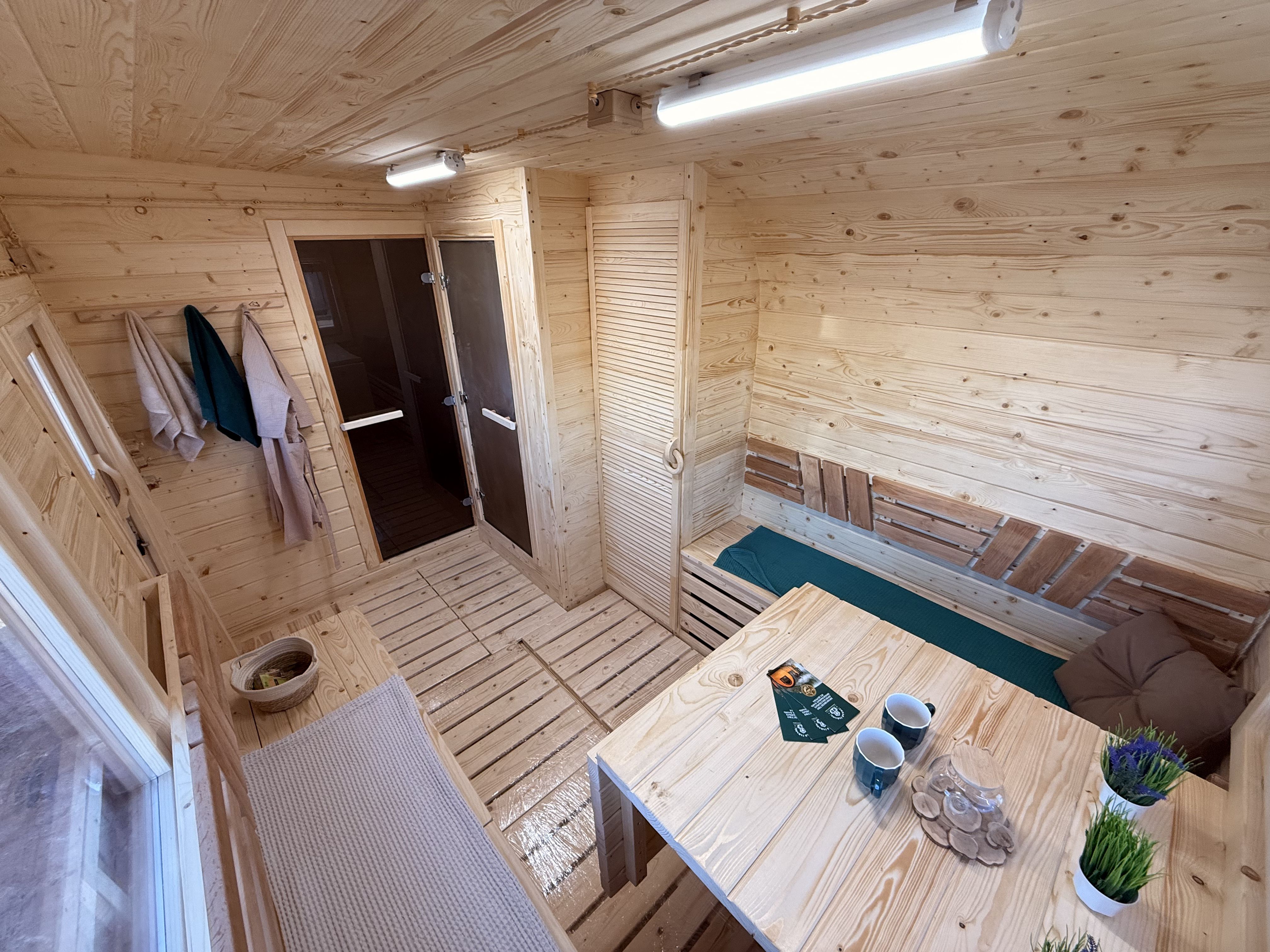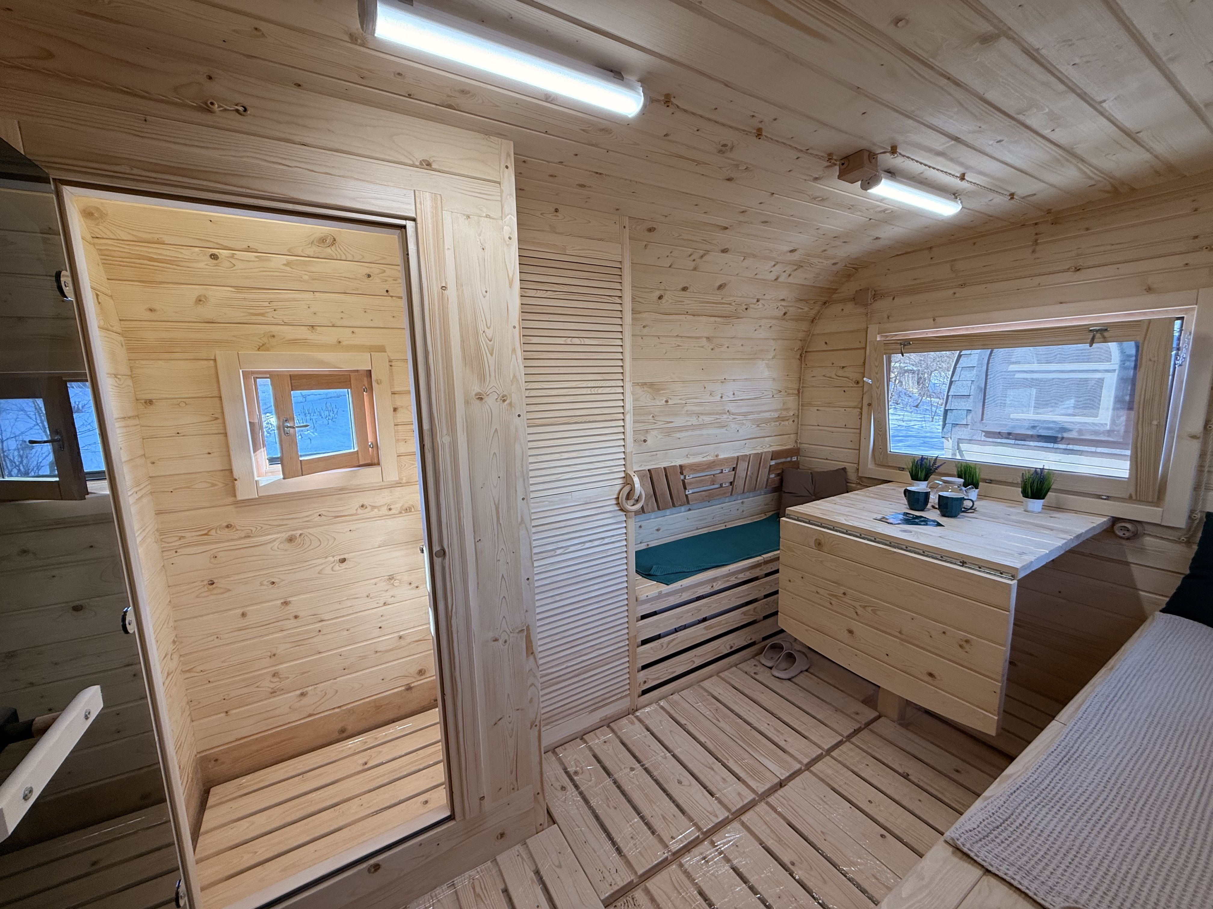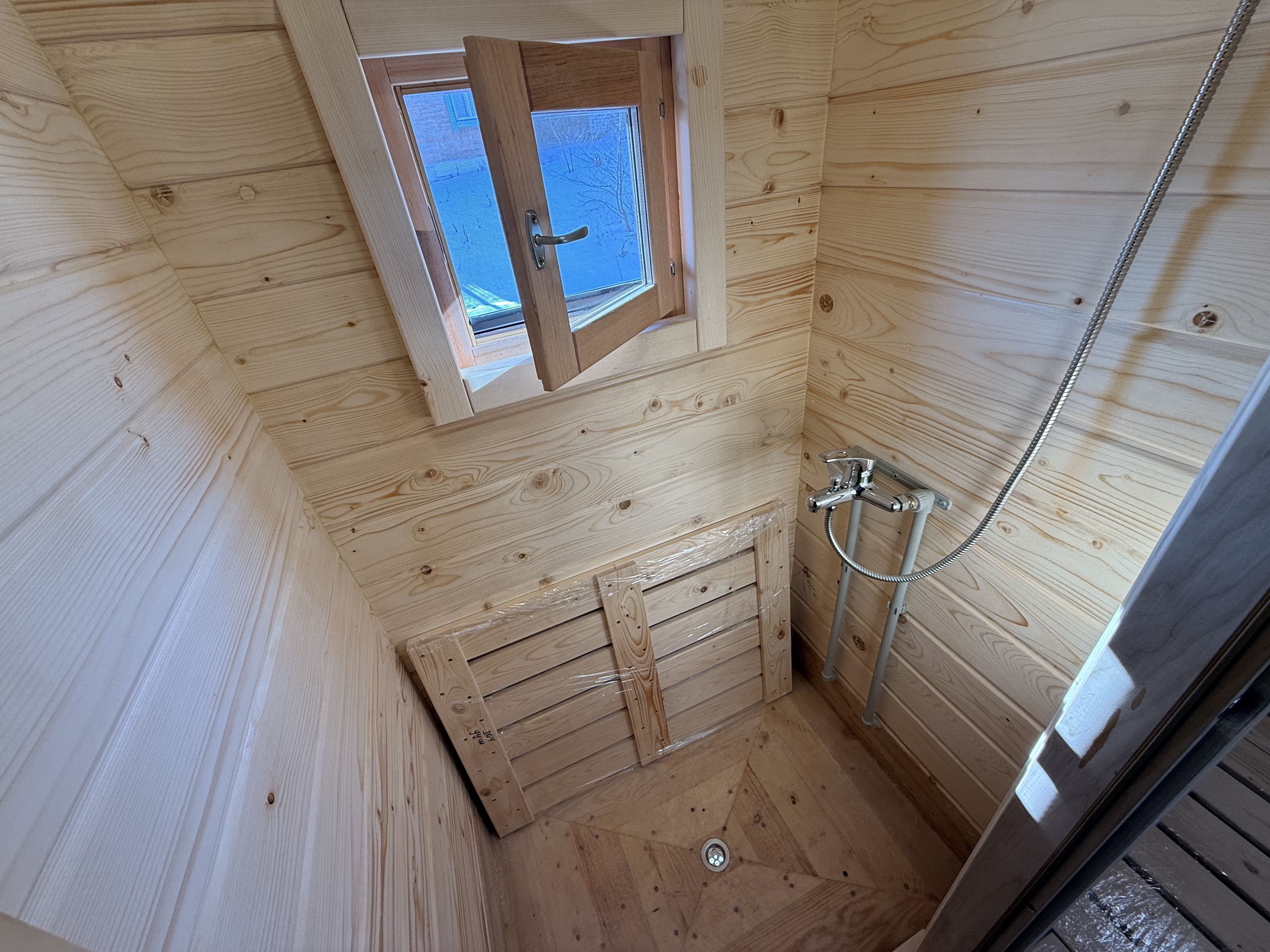 Главная / Каталог / Наши работы / Проекты бань Парус / Баня Парус 6 метров с душевой в комнате отдыха