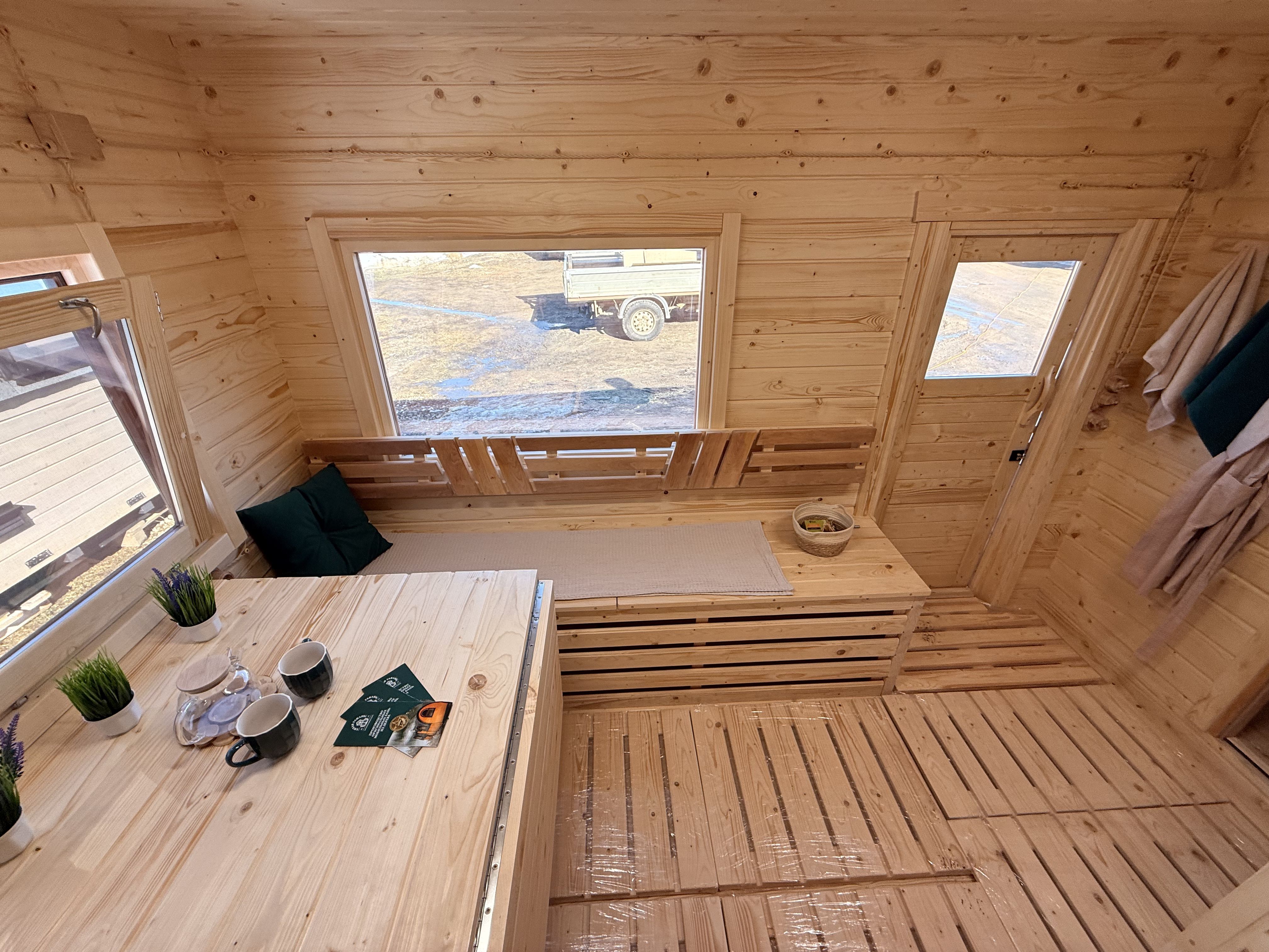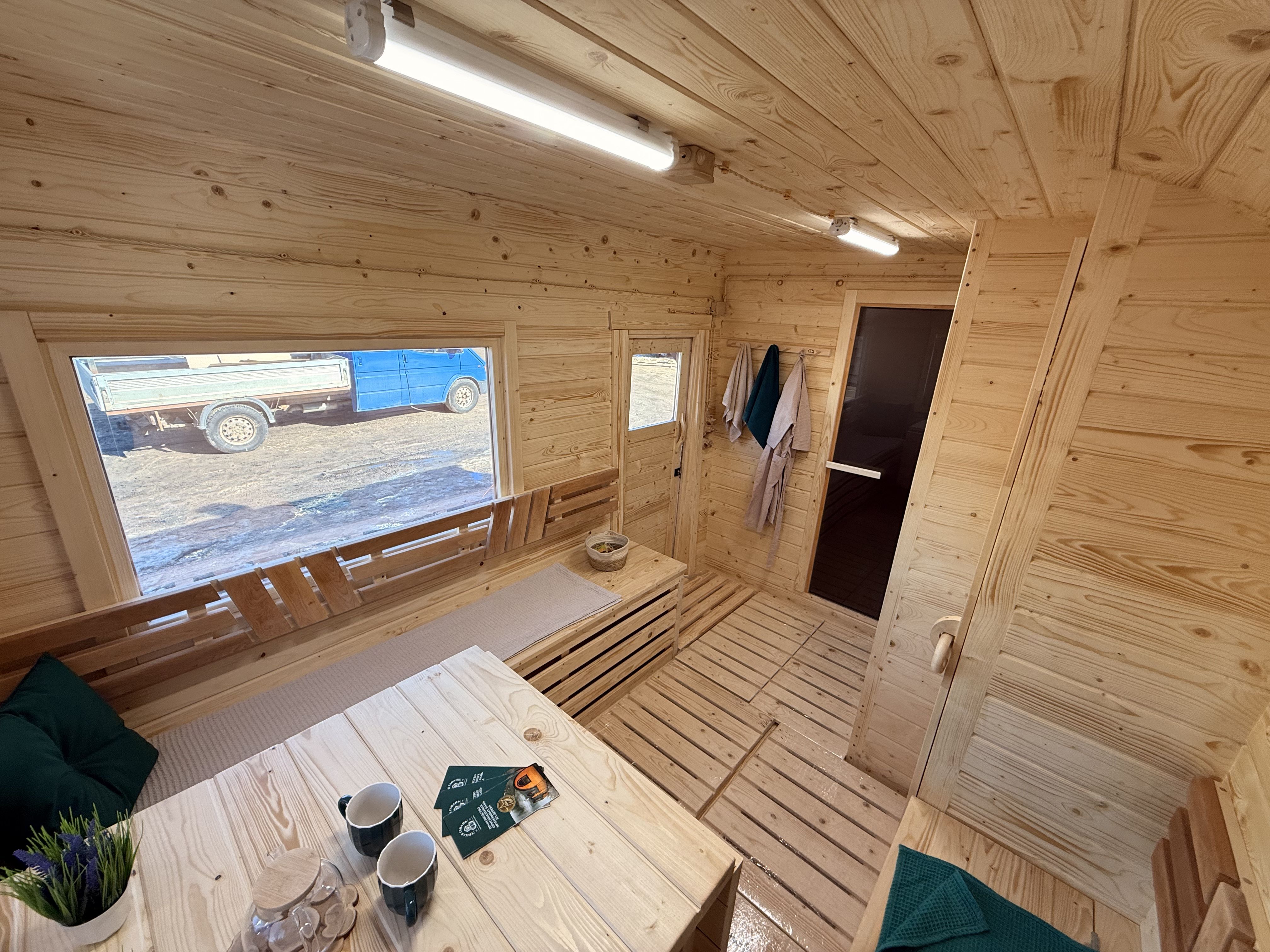 На производстве баня упаковывается и подготавливается к перевозке, после чего загружается в фуру или пятитонную машину с боковой загрузкой.