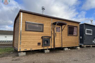 На производстве баня упаковывается и подготавливается к перевозке, после чего загружается в фуру или пятитонную машину с боковой загрузкой.
