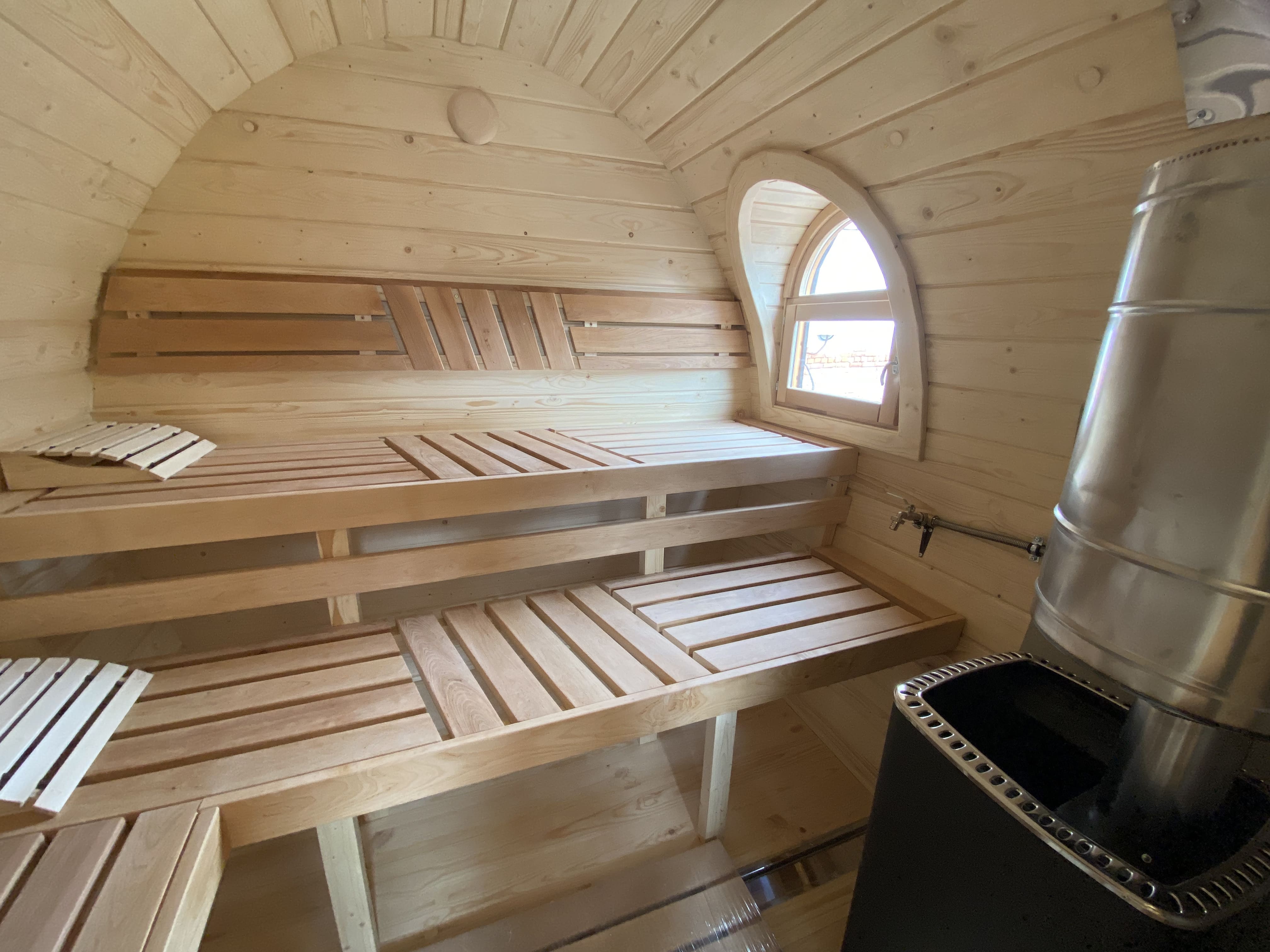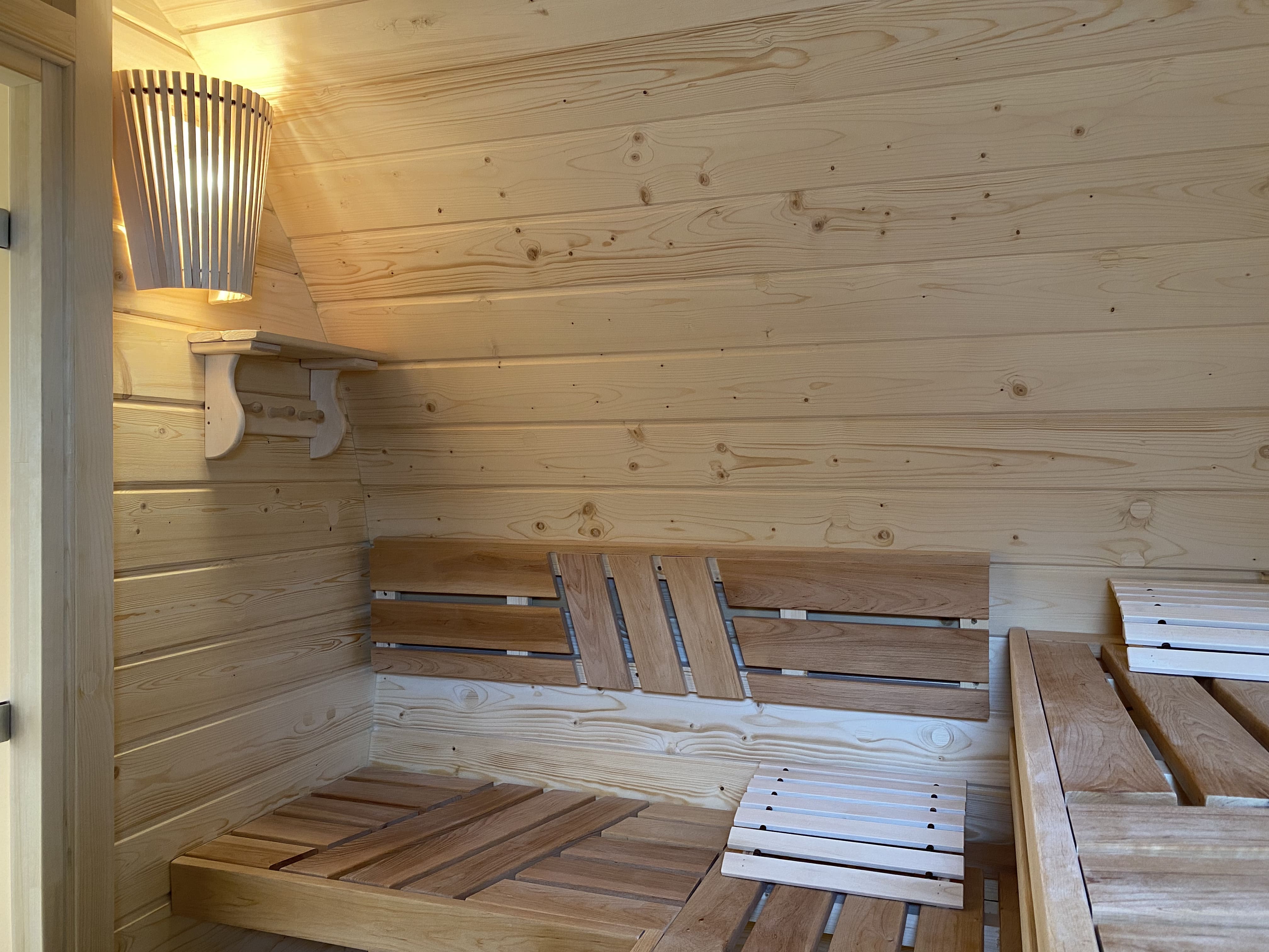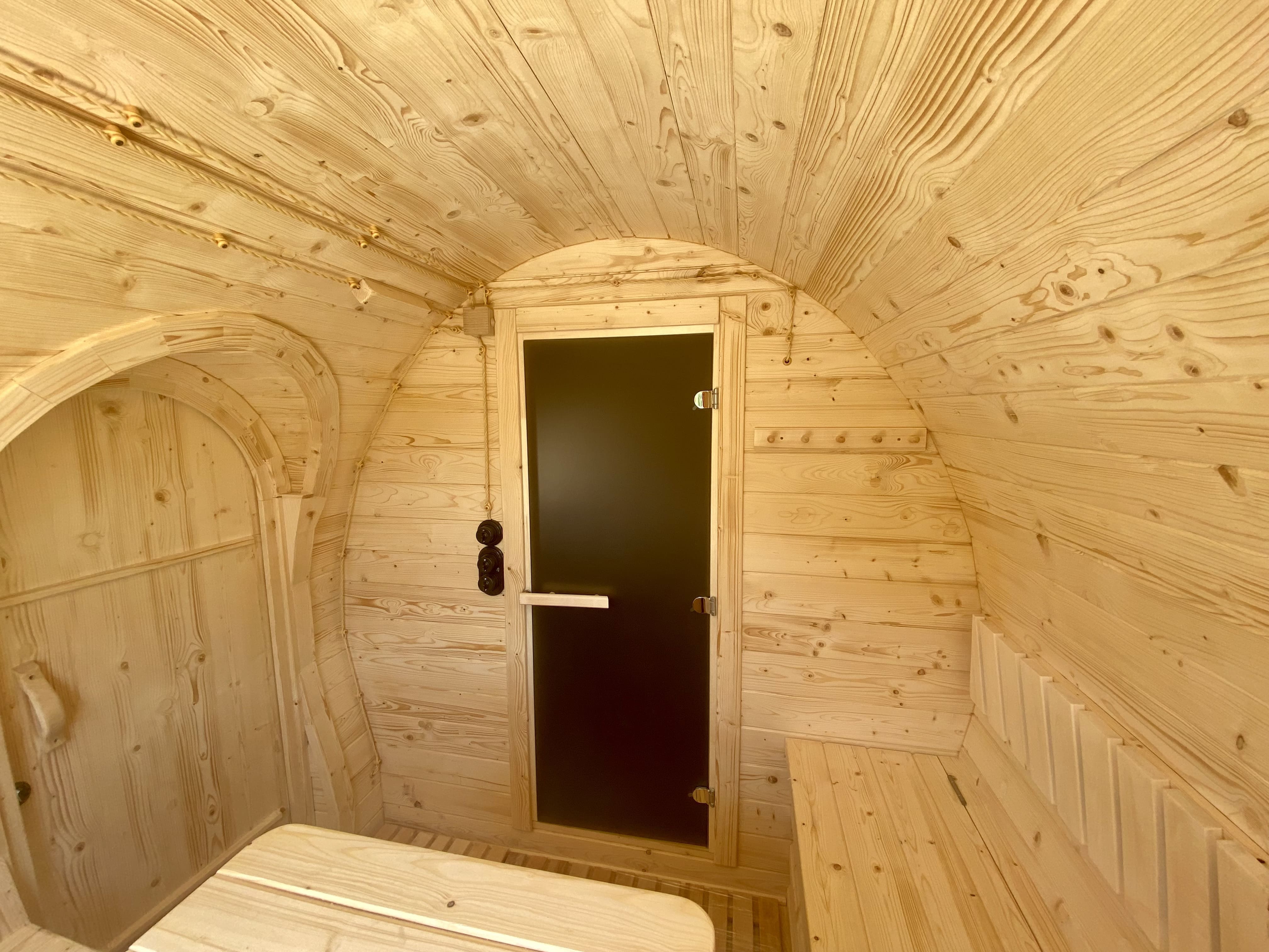 Внутри предусмотрены два помещения - комната отдыха и парная. Такой формат подходит для семьи или компании из 2-4 человек.
