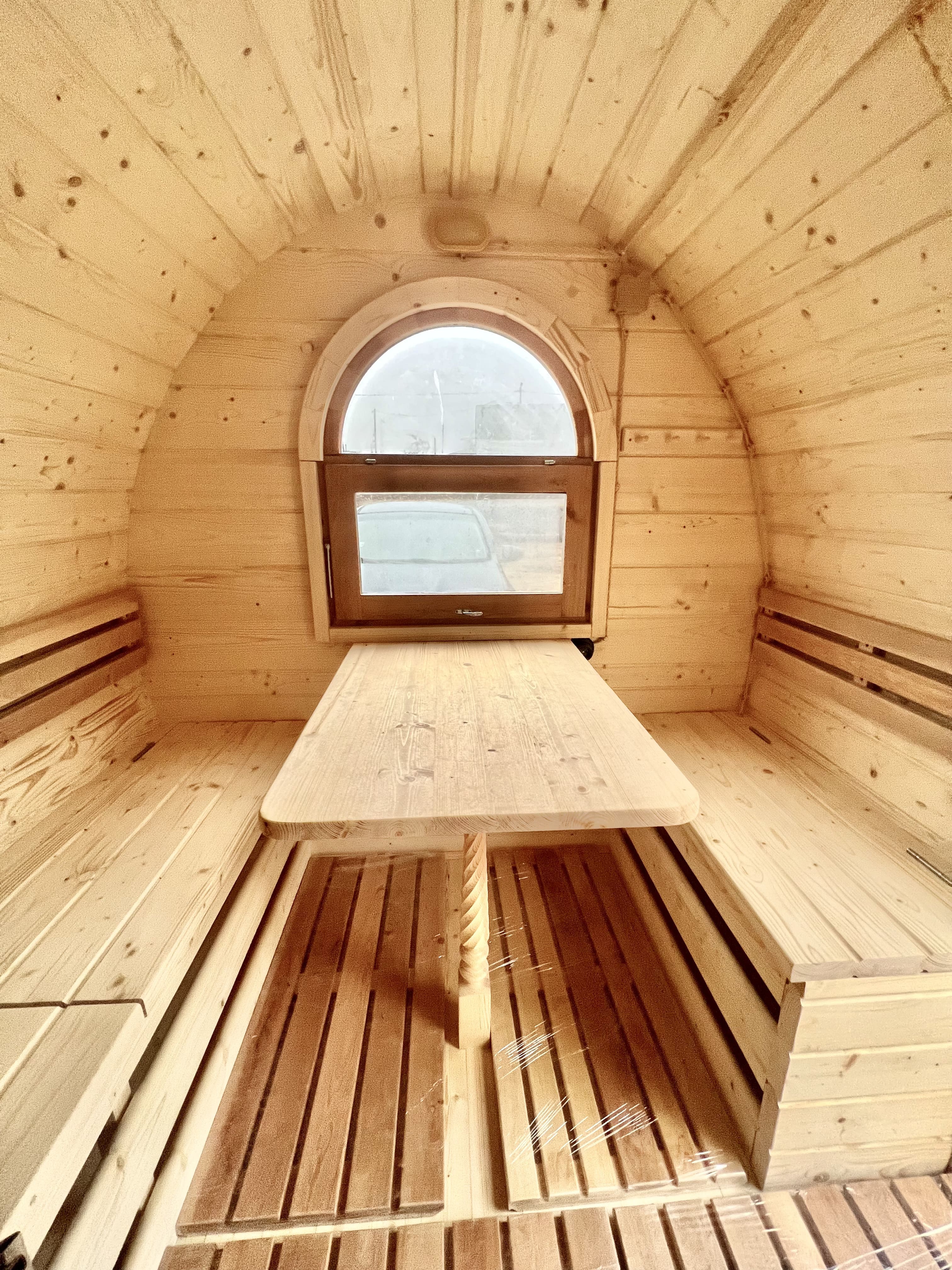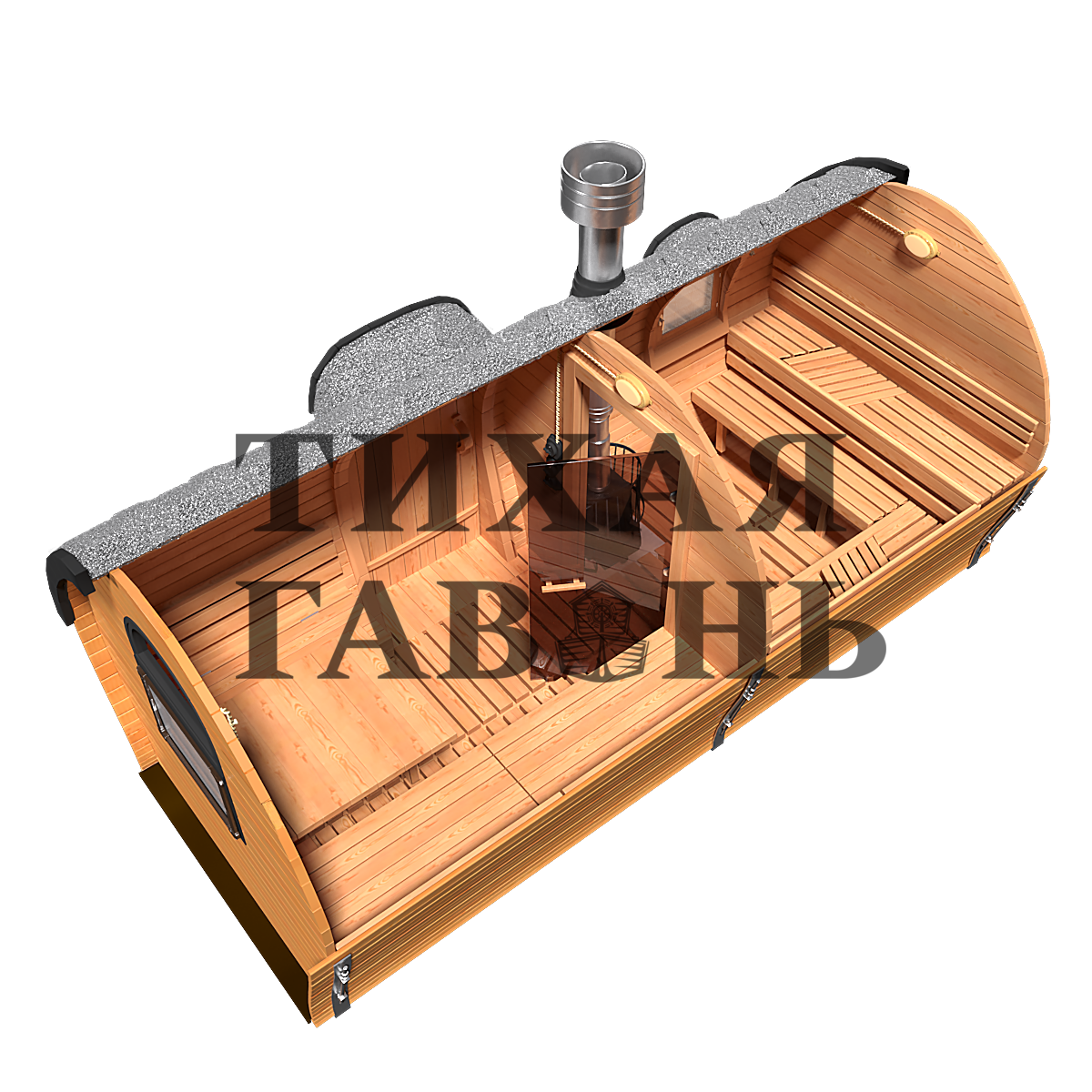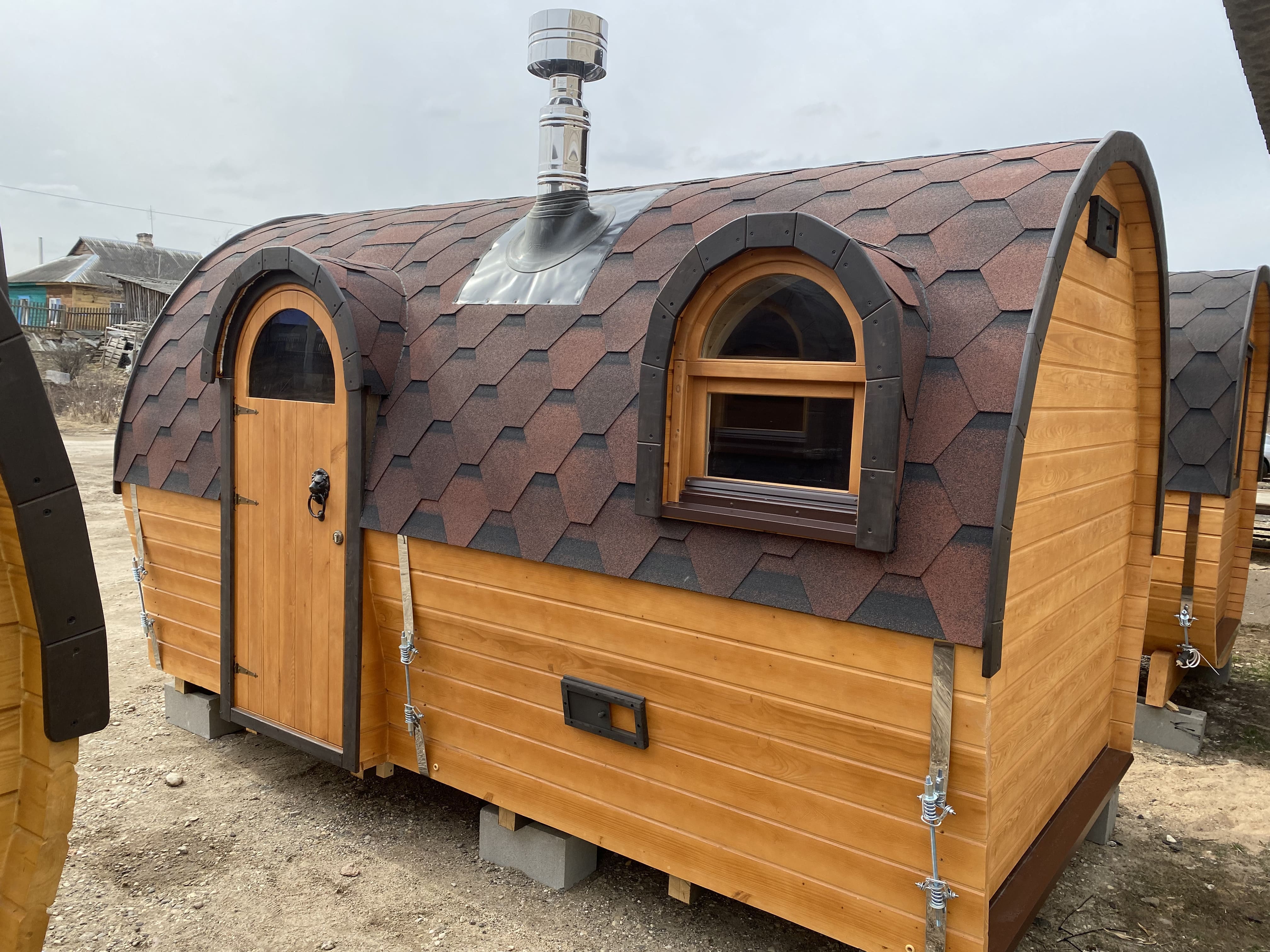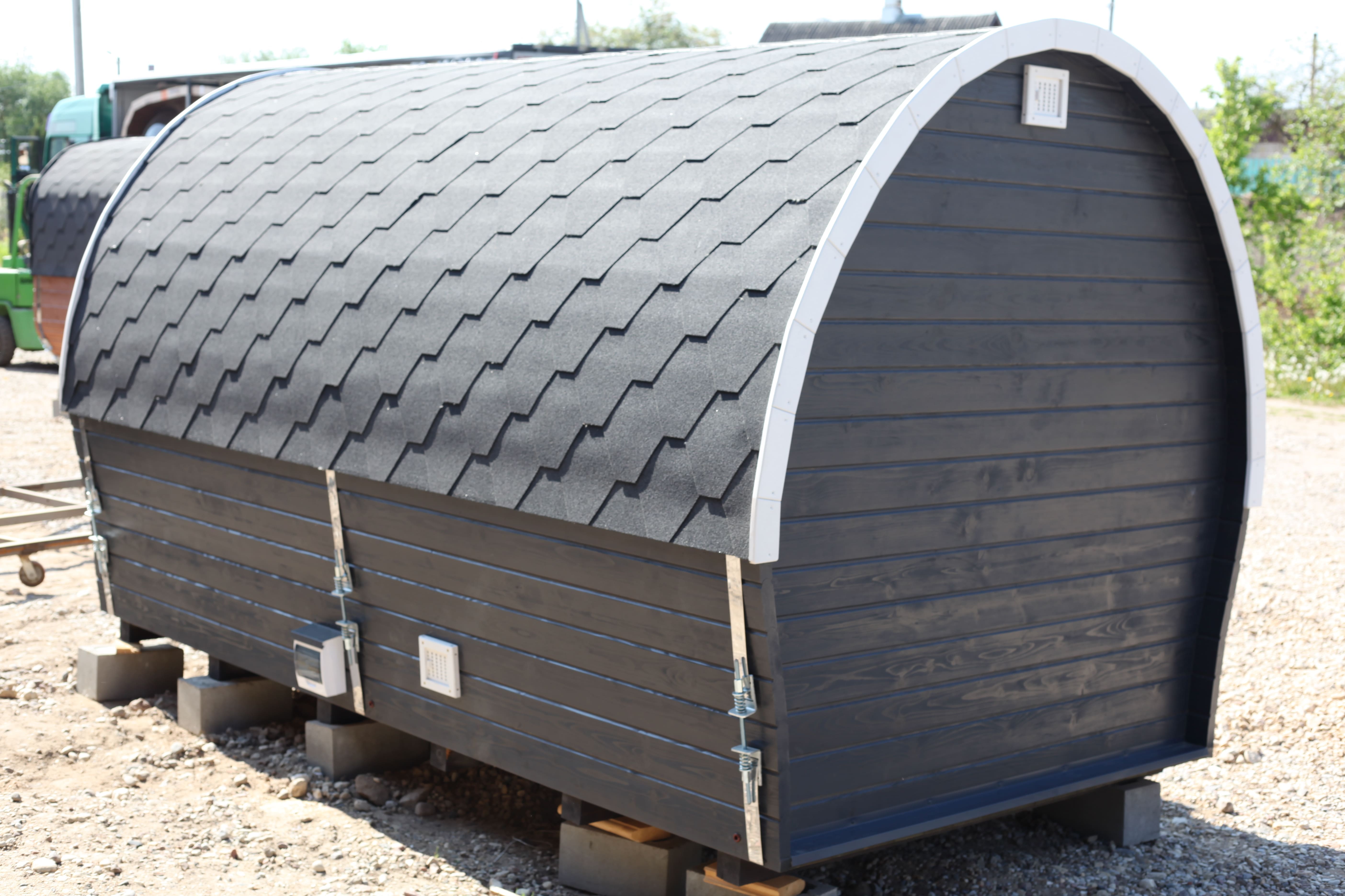 Баня Сундук 4 м - это необычная модель в форме сундука с округлой верхней частью. За счёт такой геометрии внутри ощущается больше воздуха и пространства, при этом пол остаётся ровным по всей площади.