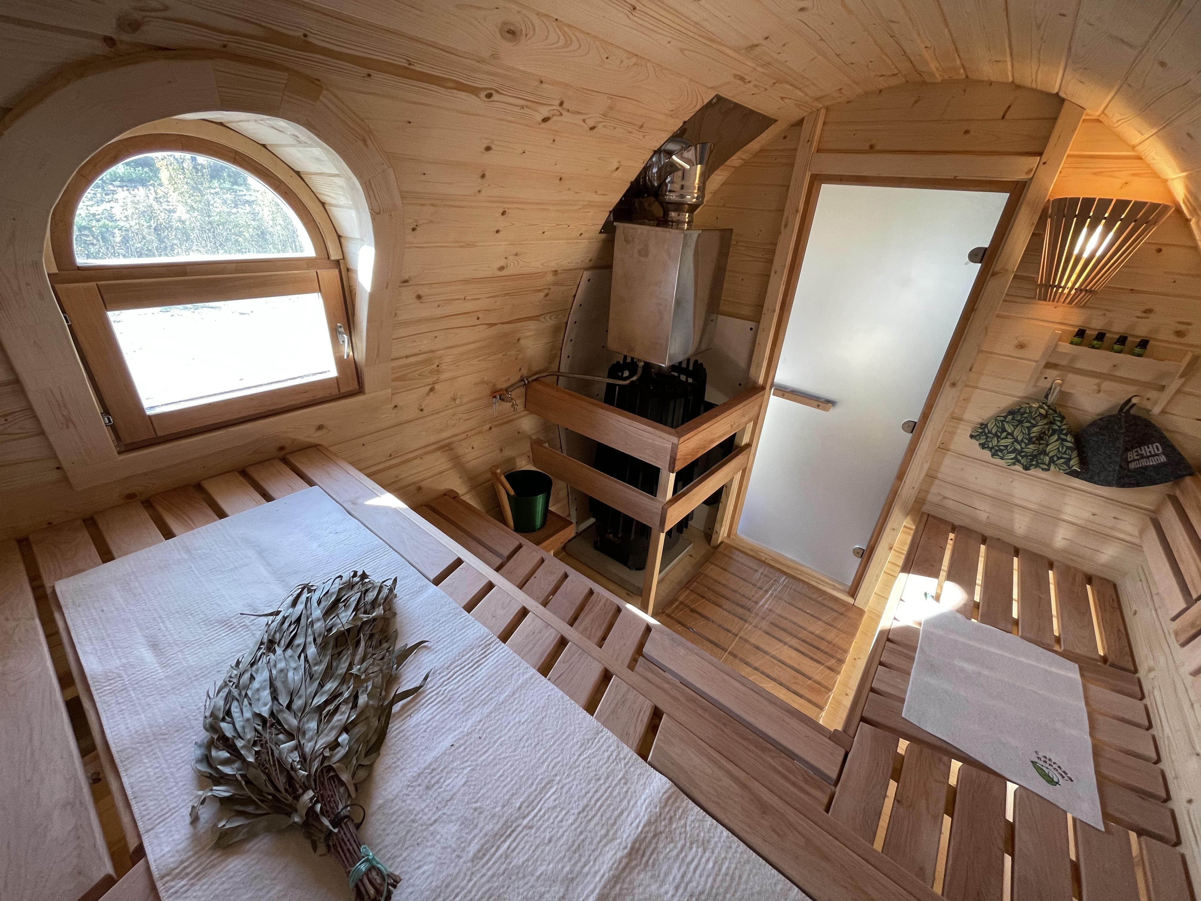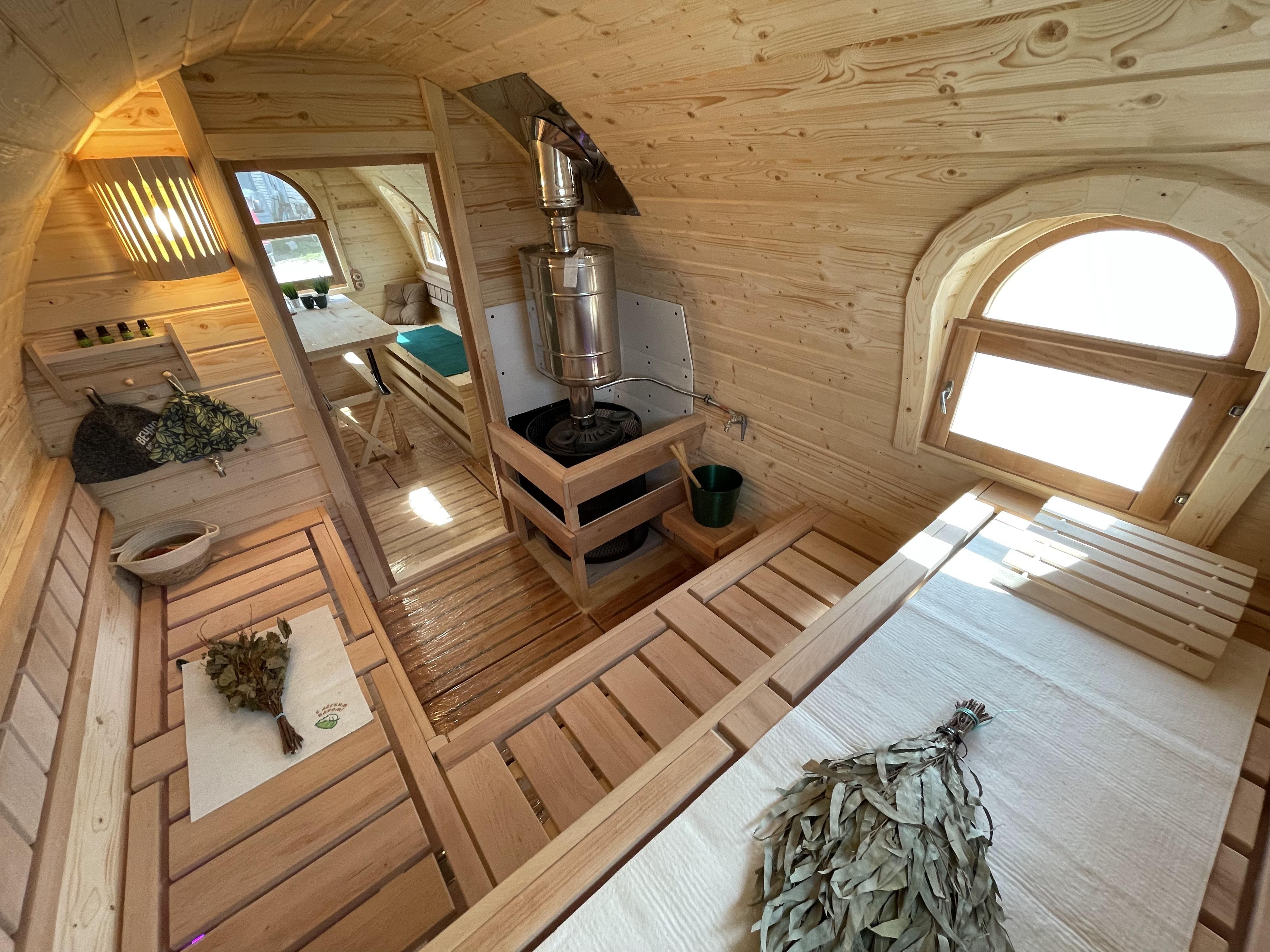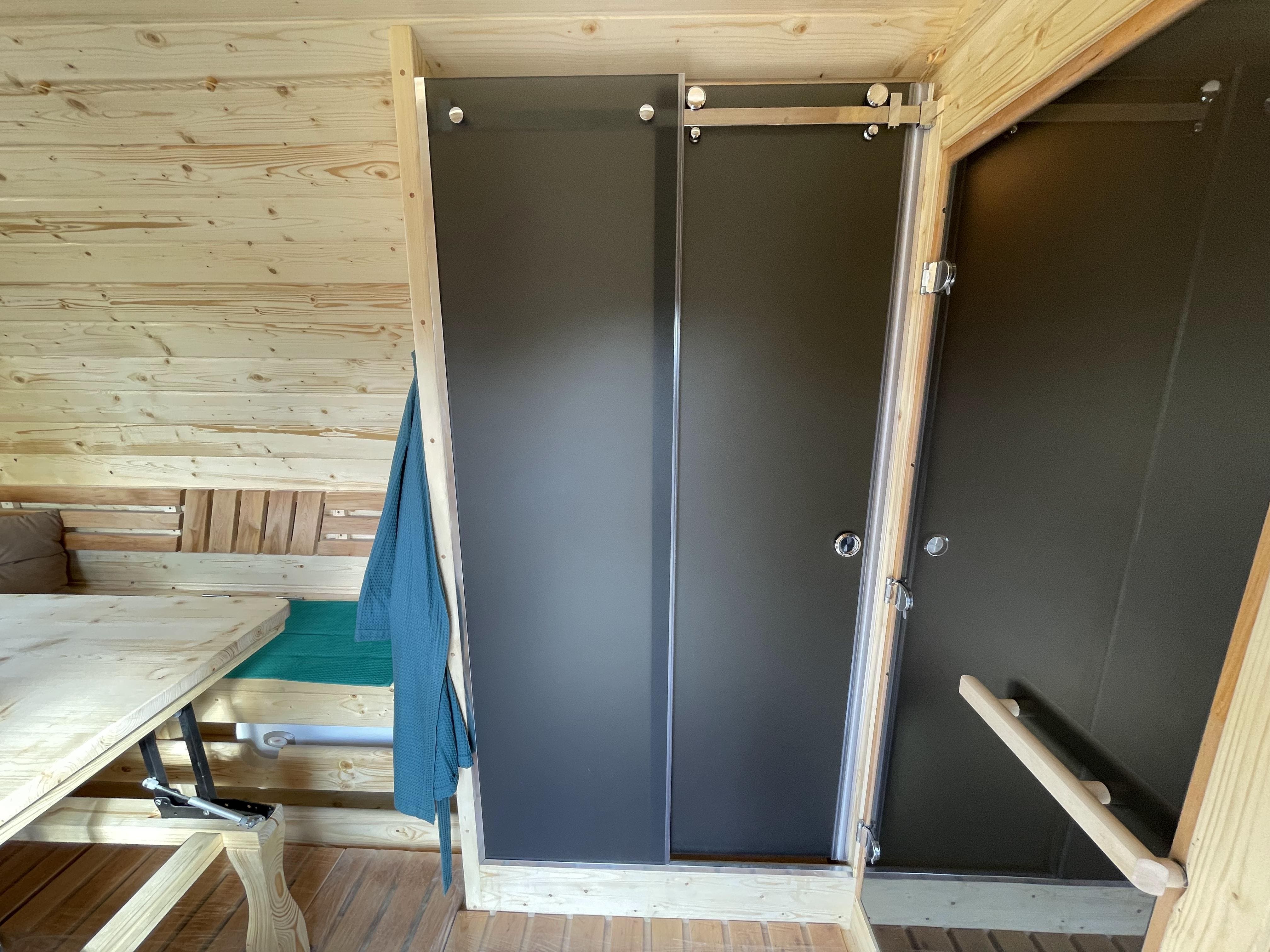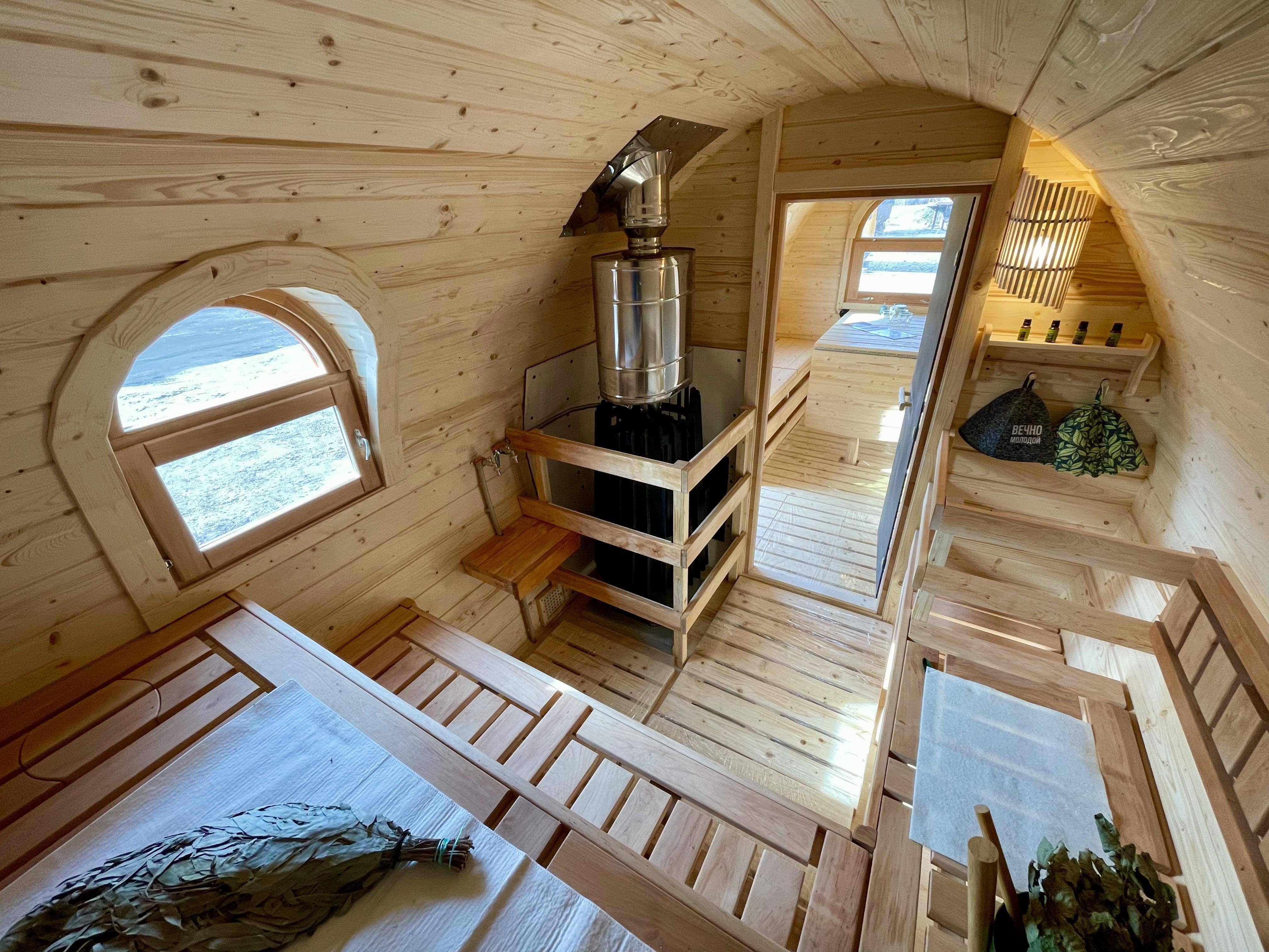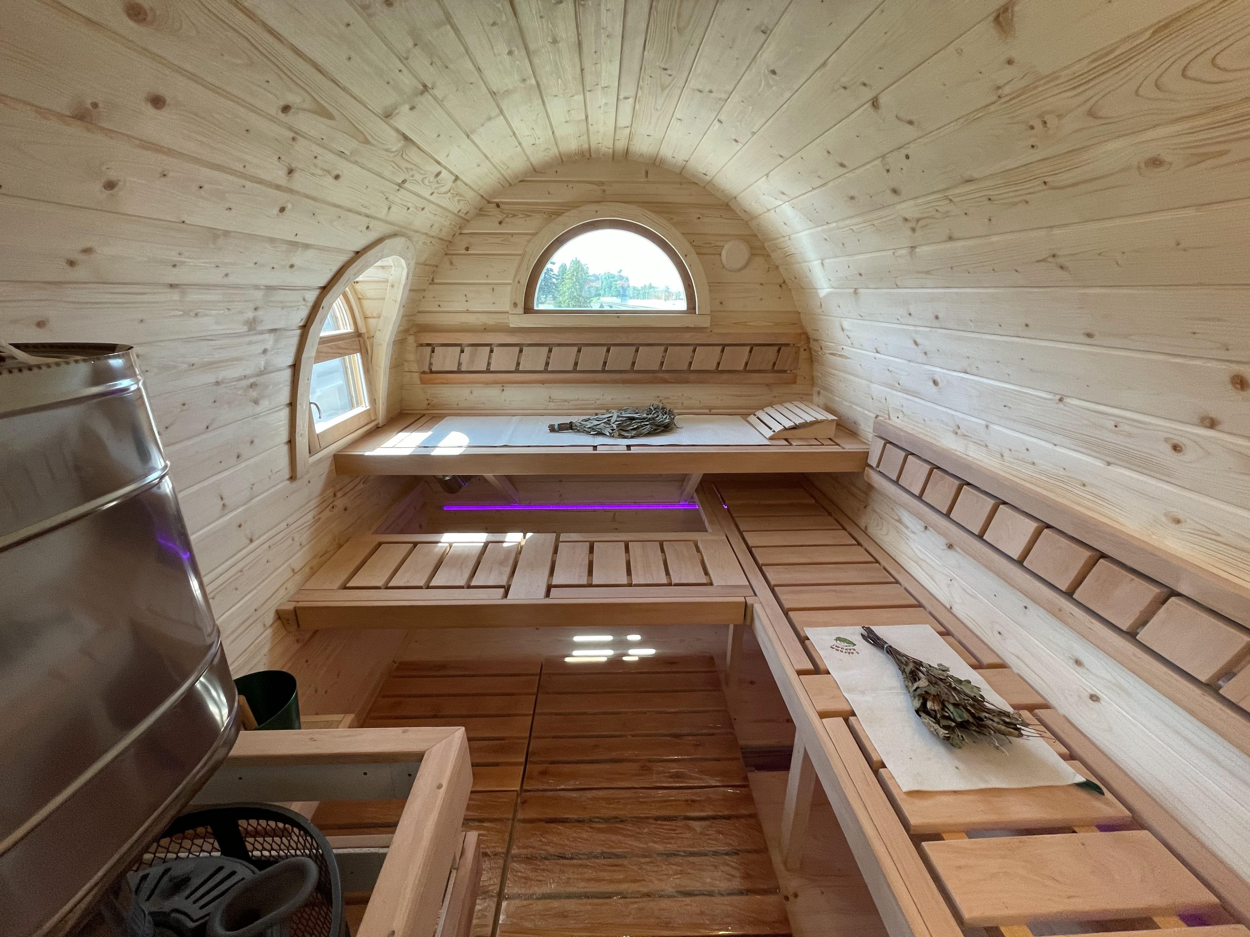 Модель доставляется в готовом виде и устанавливается на участке за 1 день при наличии подготовленного основания. После монтажа баня полностью готова к использованию.