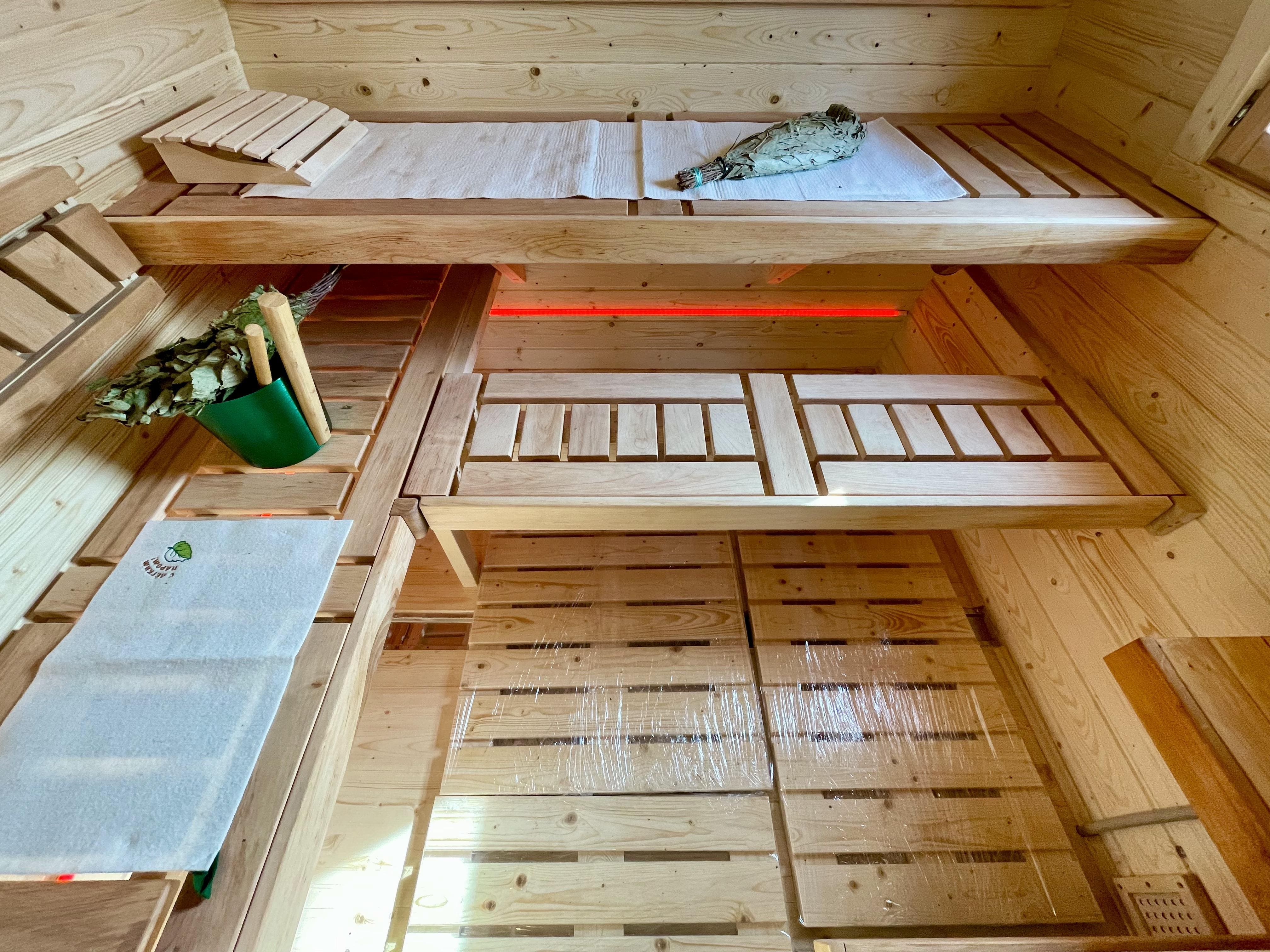 Модель включает два помещения - просторную комнату отдыха и полноценную парную. Такой формат подходит для семьи или компании из 4-6 человек.