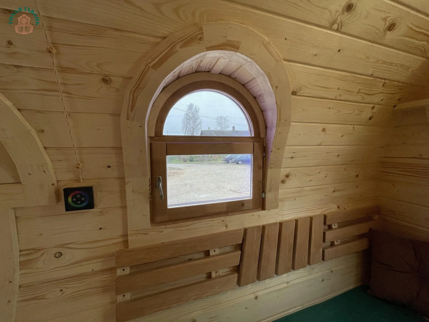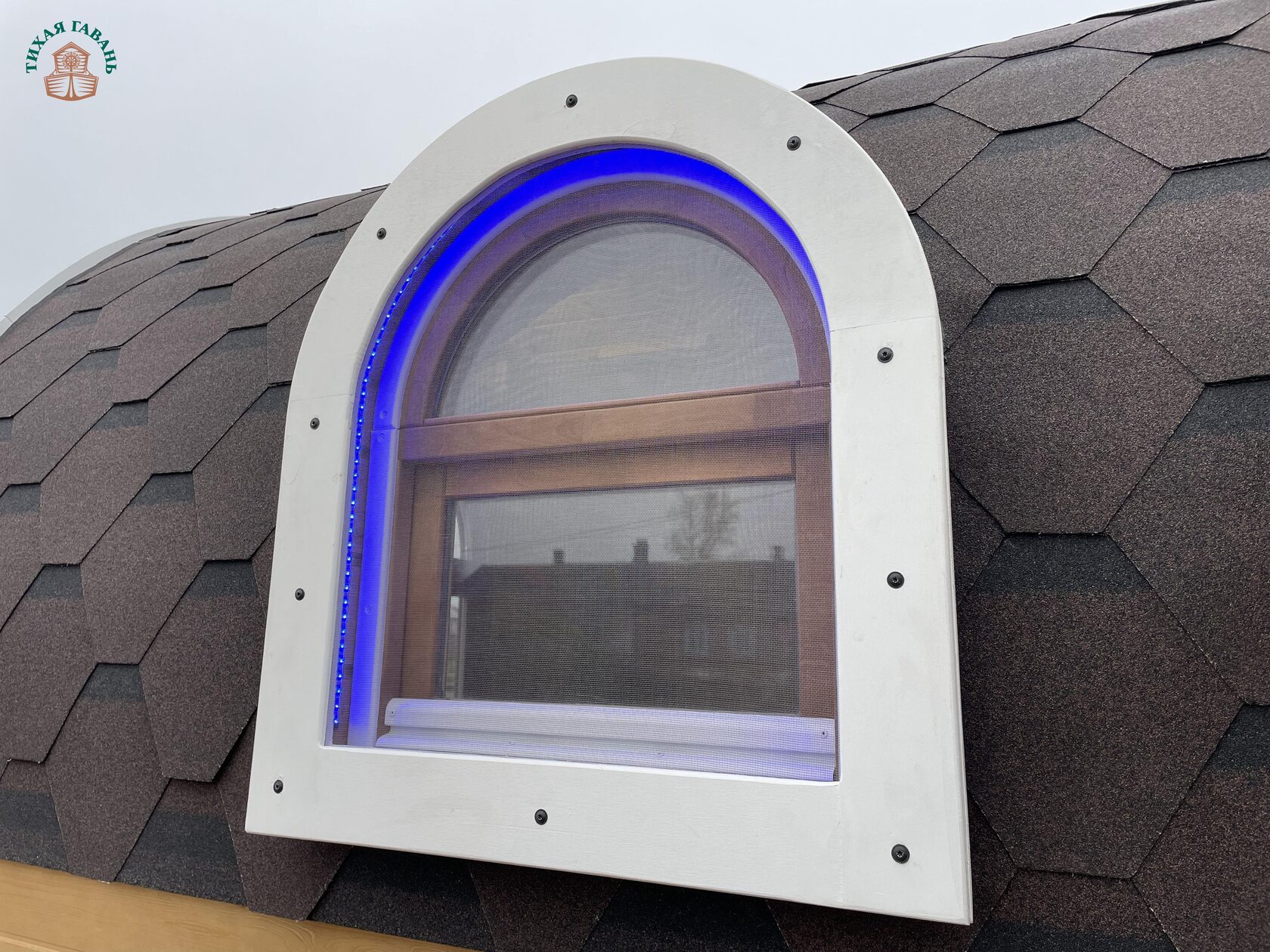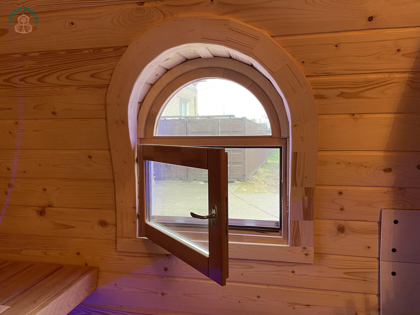В комнате отдыха арочное окно 900*1000 мм. Слив снизу. Обрамление. М/С. Дополнительное арочное окно в комнате отдыха 600*700 мм. Слив снизу. Обрамление. М/С. В парной арочное окно 600*700 мм. Слив снизу. Обрамление. М/С.