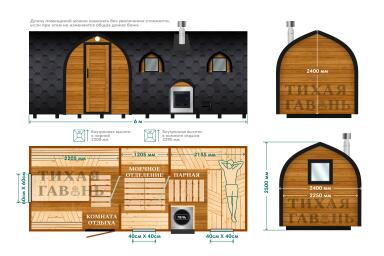 Баня прогревается примерно за 1 час. В зависимости от выбранной печи температура в парной может достигать 90-120 градусов. Доставка осуществляется в готовом виде, установка на участке занимает 1 день, после чего баня готова к эксплуатации.