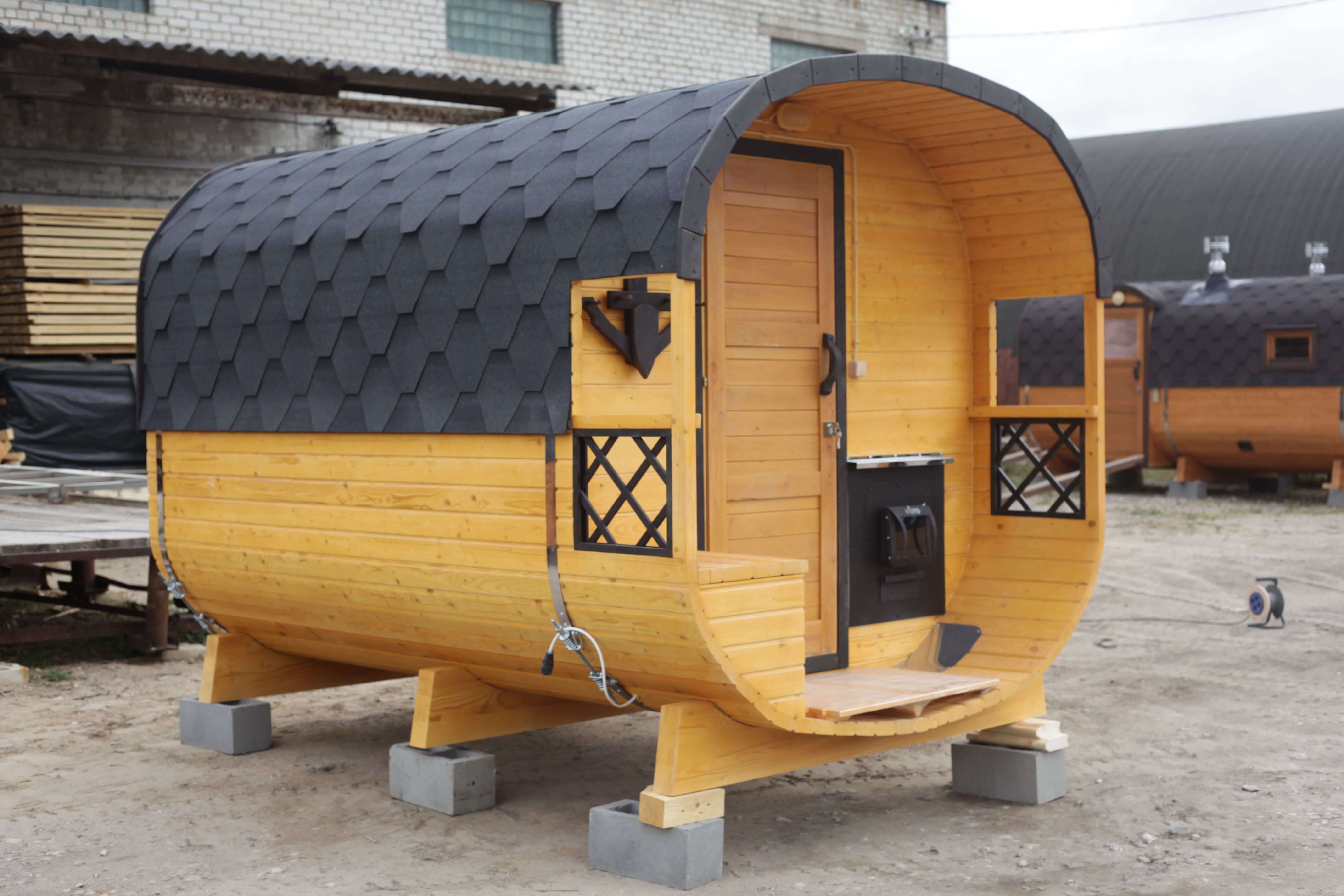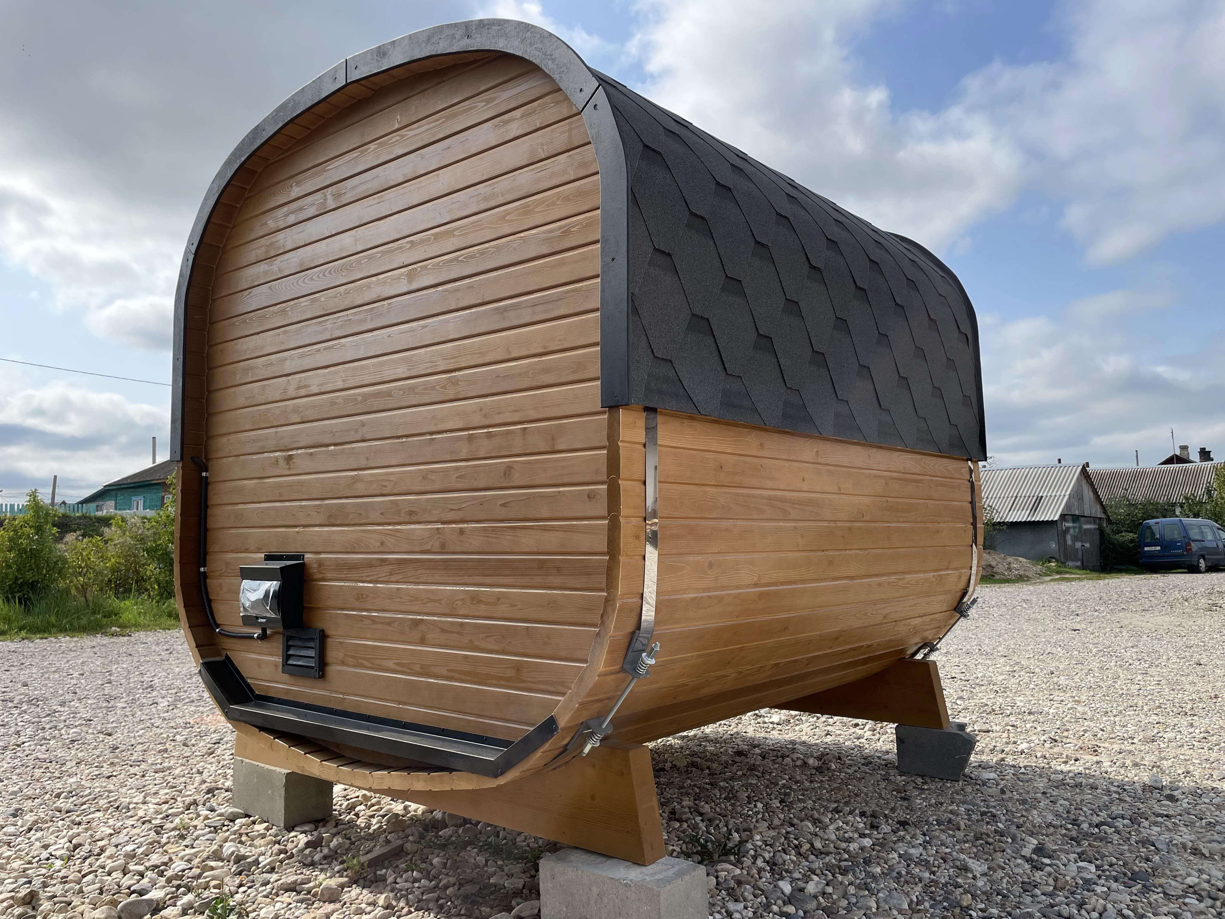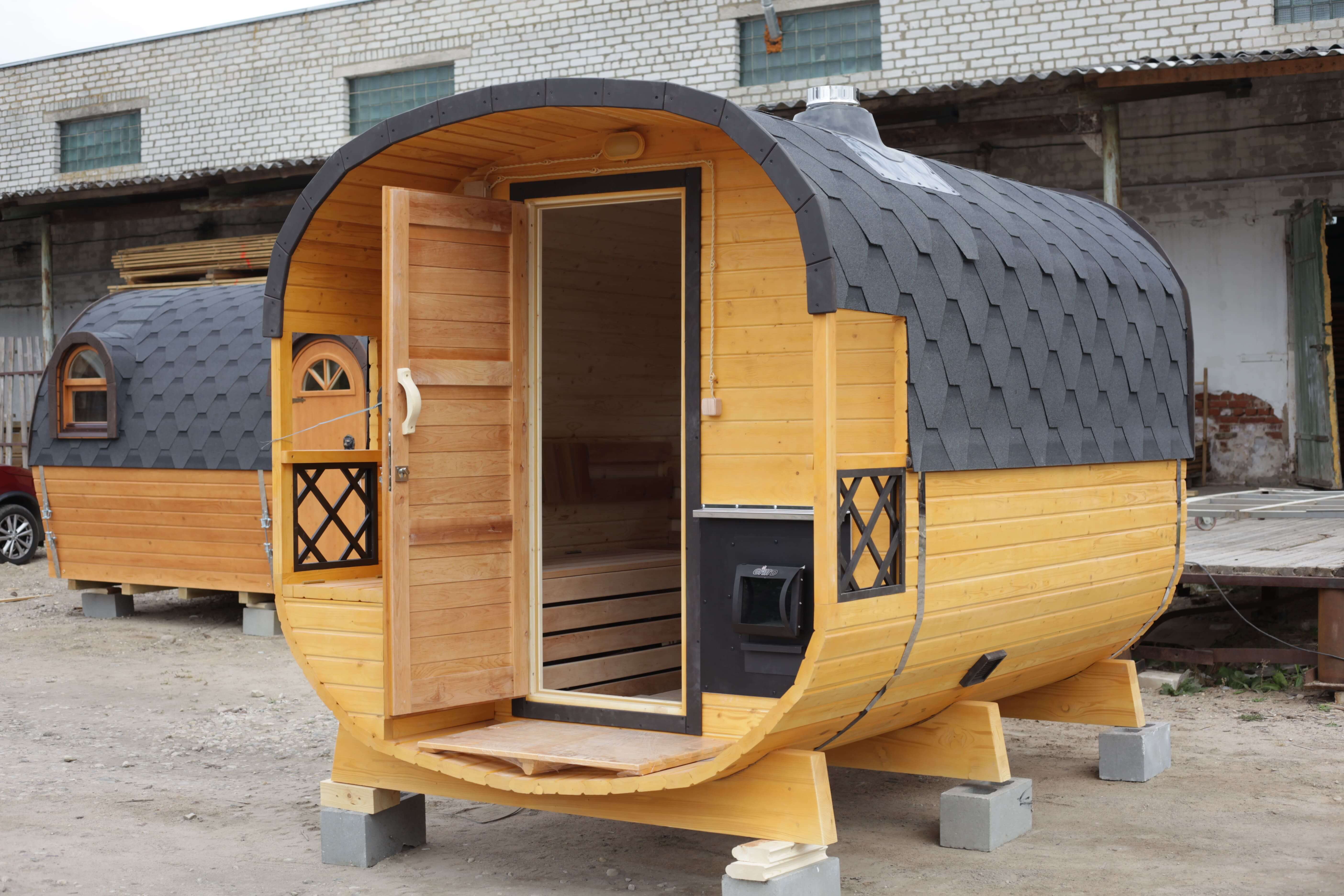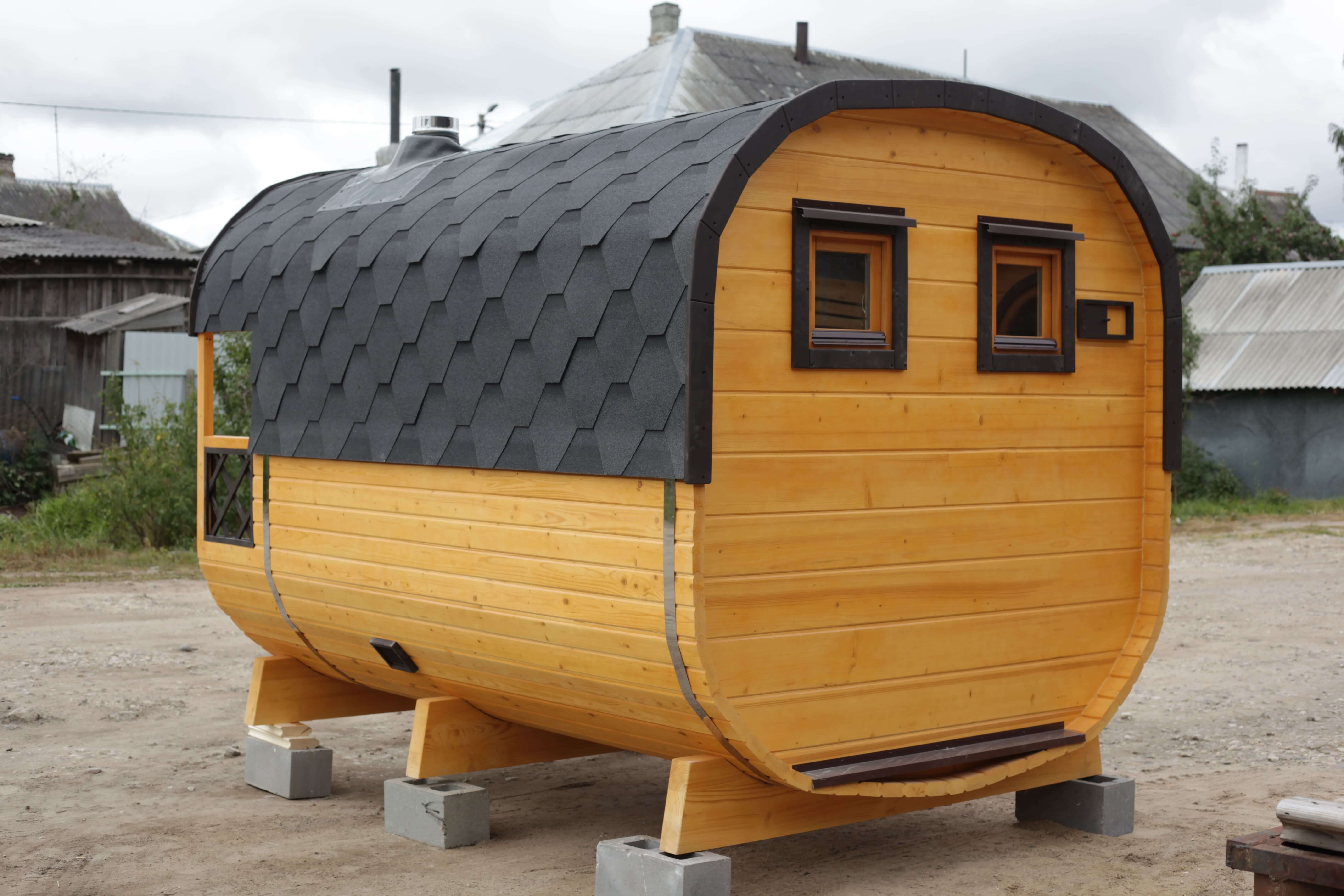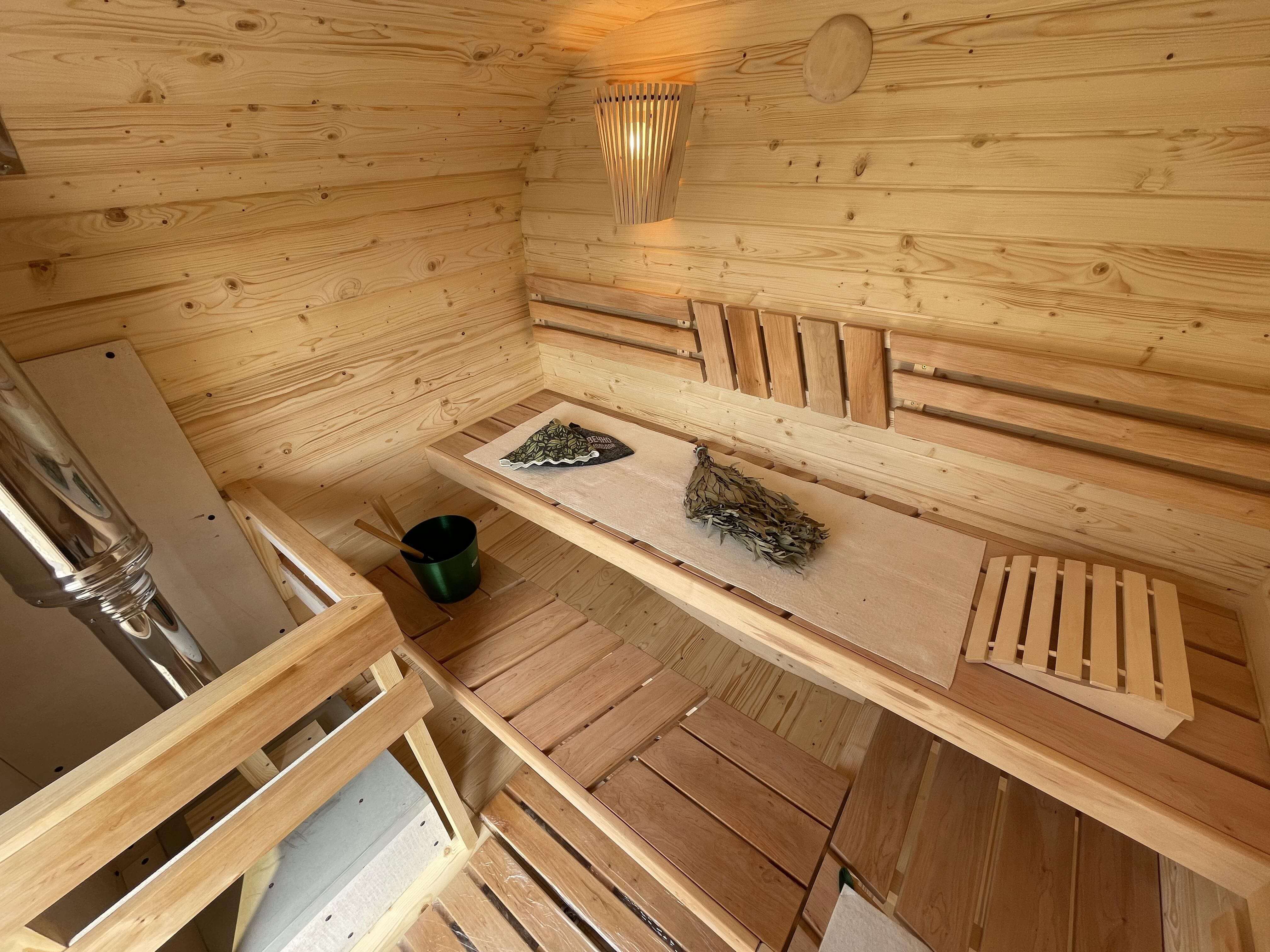 Небольшой внутренний объем позволяет быстро подготовить баню к использованию и поддерживать стабильную температуру в процессе парения. Формат удобен для тех, кто ценит практичность и не планирует размещение дополнительных помещений.