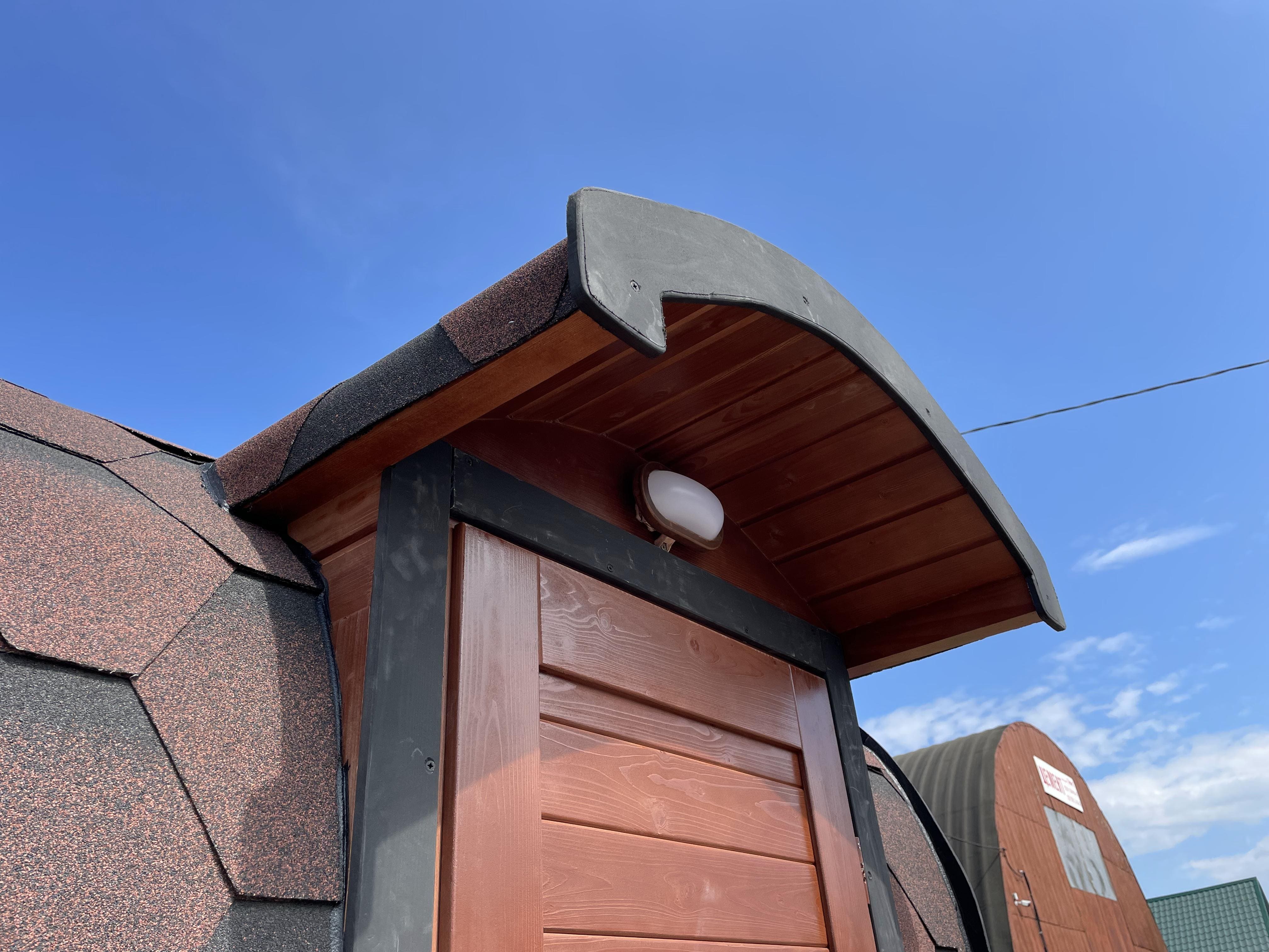 Все квадро бани поставляются с козырьком в базовой комплектации. Козырёк защищает входную дверь от осадков и дождя. Баня устанавливается без регистрации и капитального фундамента, монтаж выполняется на подготовленное основание, после чего баня готова к эксплуатации.
