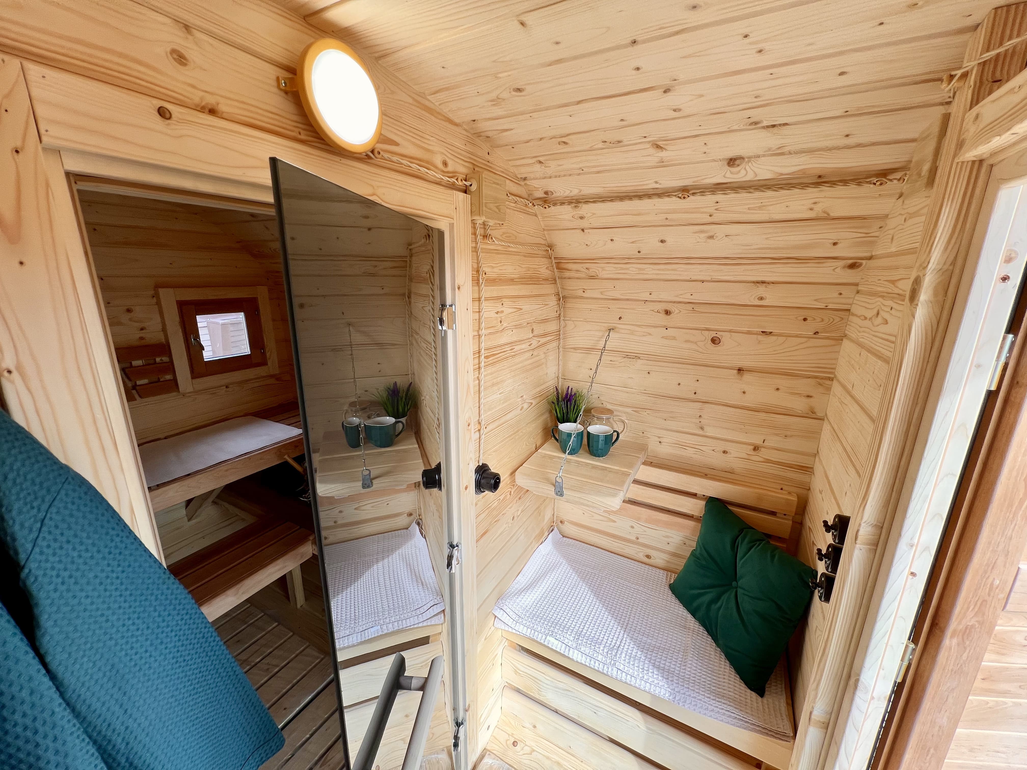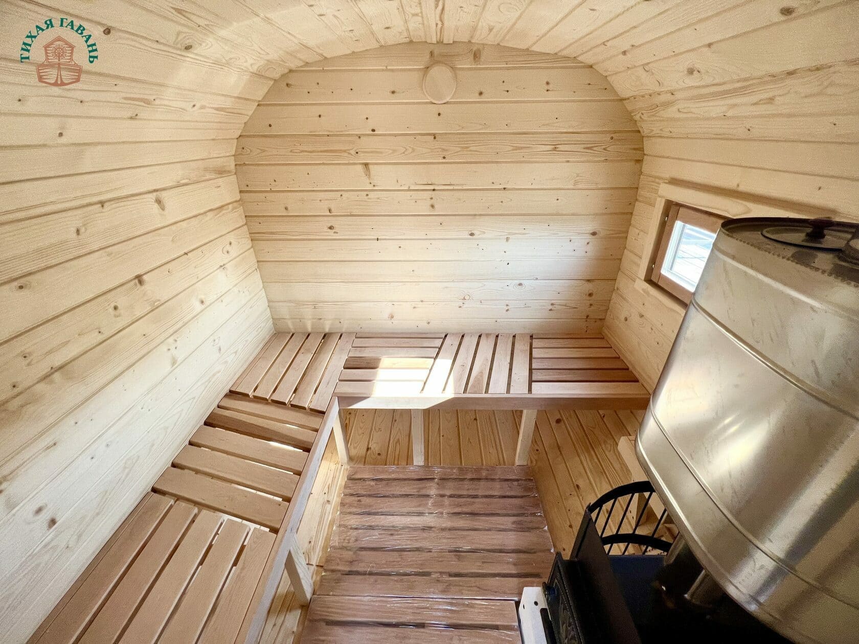 Форма квадро бани отличается скошенными и слегка закруглёнными стенками. Пол внутри имеет характерное закругление, что является особенностью серии Квадро. Такая геометрия способствует равномерному распределению тепла и быстрому прогреву внутреннего пространства.