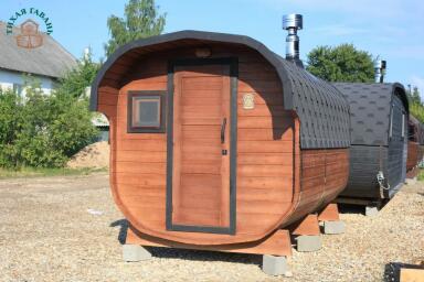 Баня относится к мобильным конструкциям, не требует регистрации и капитального фундамента. Установка выполняется на подготовленное основание без использования дорогостоящих фундаментных решений. Козырёк входит в базовую комплектацию и защищает входную зону от осадков, повышая комфорт при эксплуатации в любое время года.