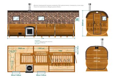 Такая форма способствует равномерному распределению тепла внутри и создаёт стабильный температурный режим в парной. Внутри остаётся достаточно объёма воздуха, что положительно сказывается на комфорте при использовании.