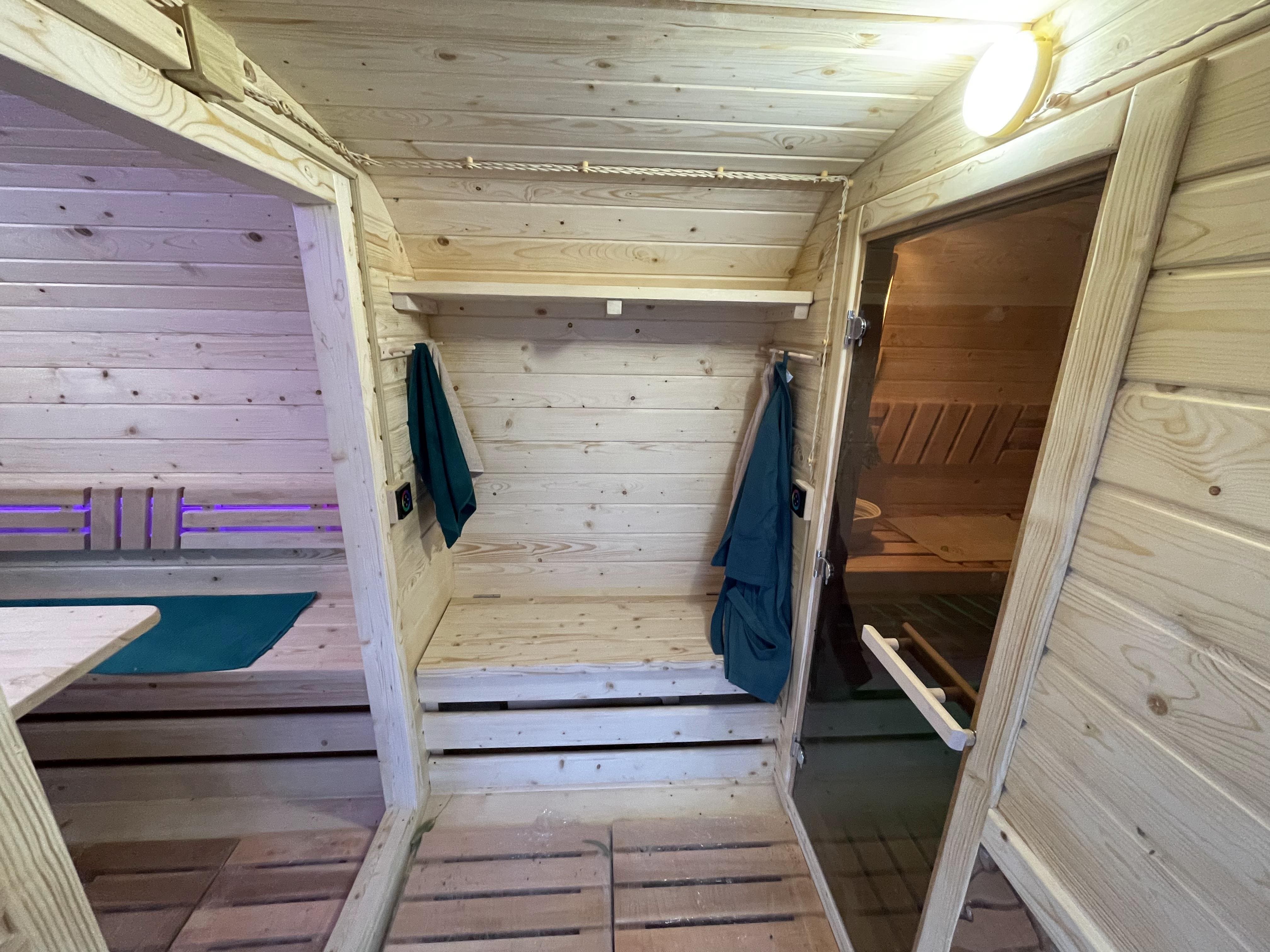 Основное отличие данной конфигурации – наличие отдельной раздевалки, которая отделяет входную зону от парной. Это решение упрощает использование бани в холодное время года и помогает сохранять тепло внутри.