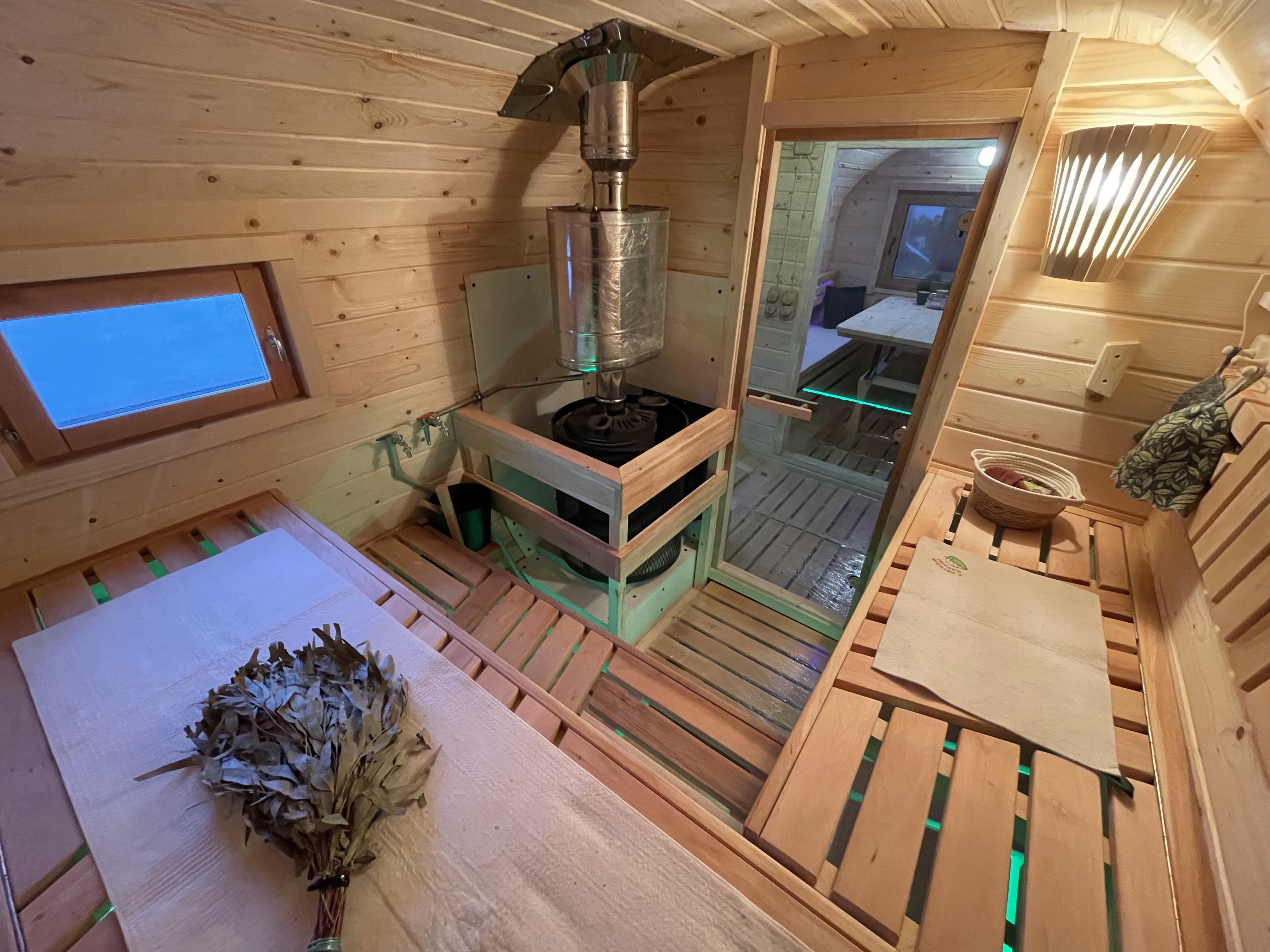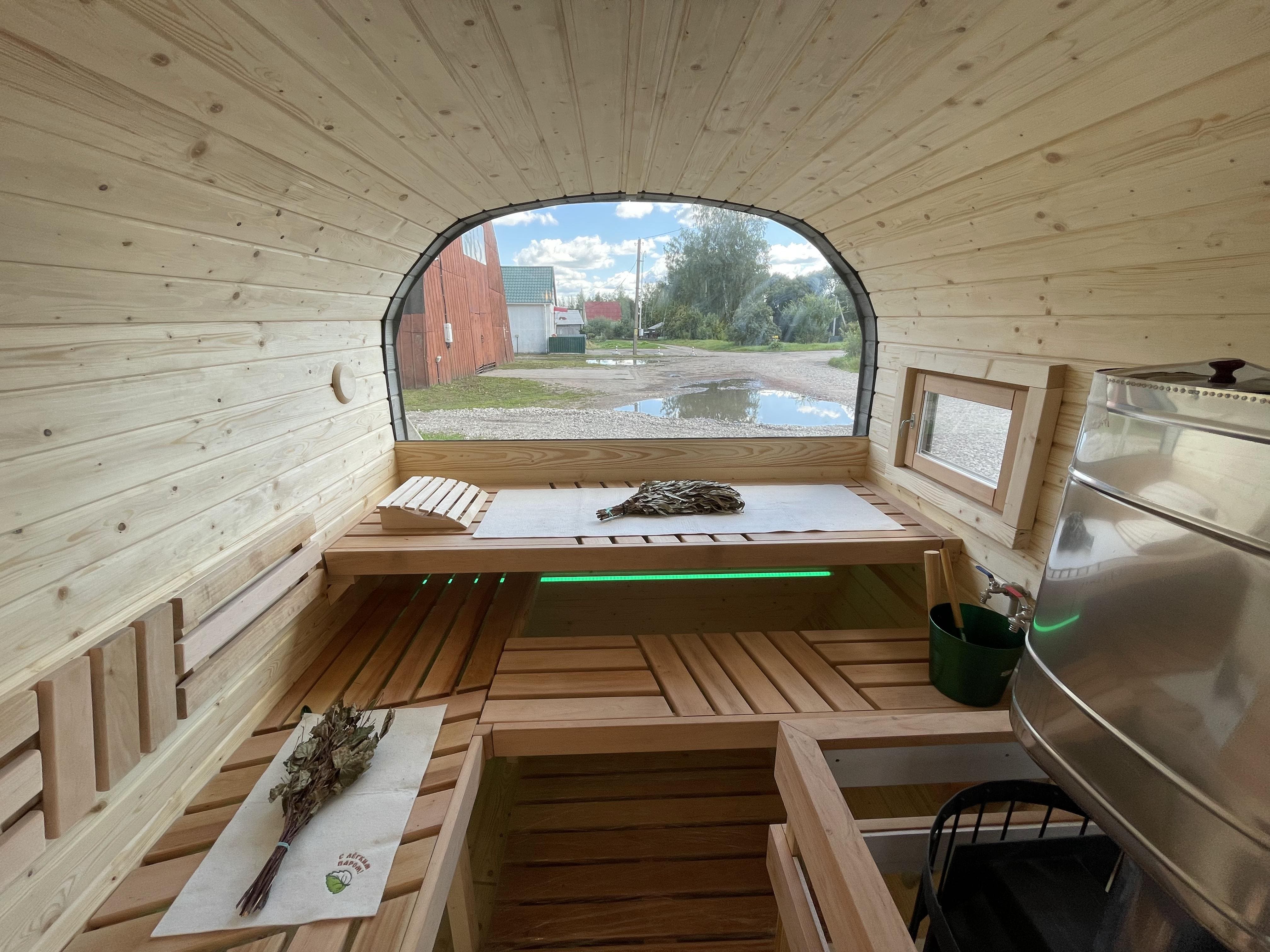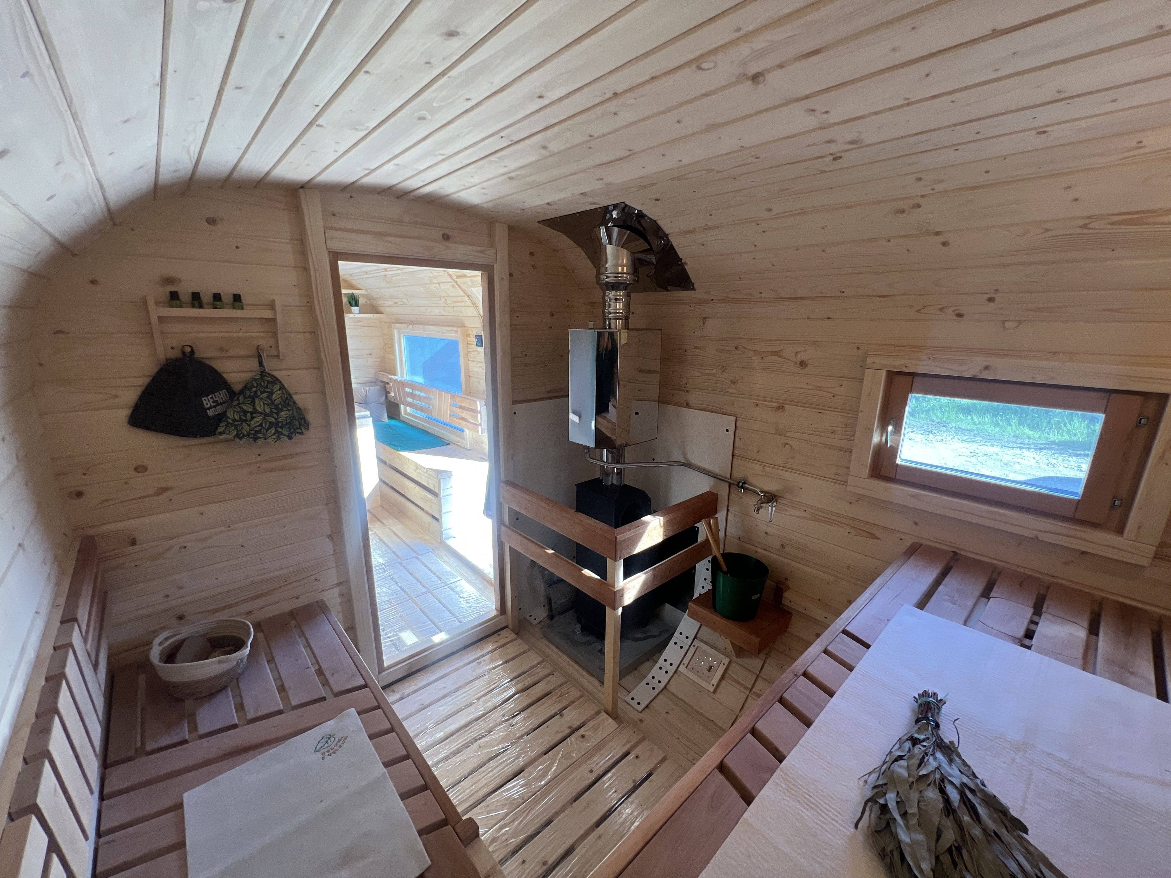 Баню используют для регулярных банных процедур, отдыха после рабочего дня и встреч в тёплой компании. Конструкция не требует регистрации и капитального фундамента, установка выполняется на подготовленное основание, после чего баня готова к эксплуатации.