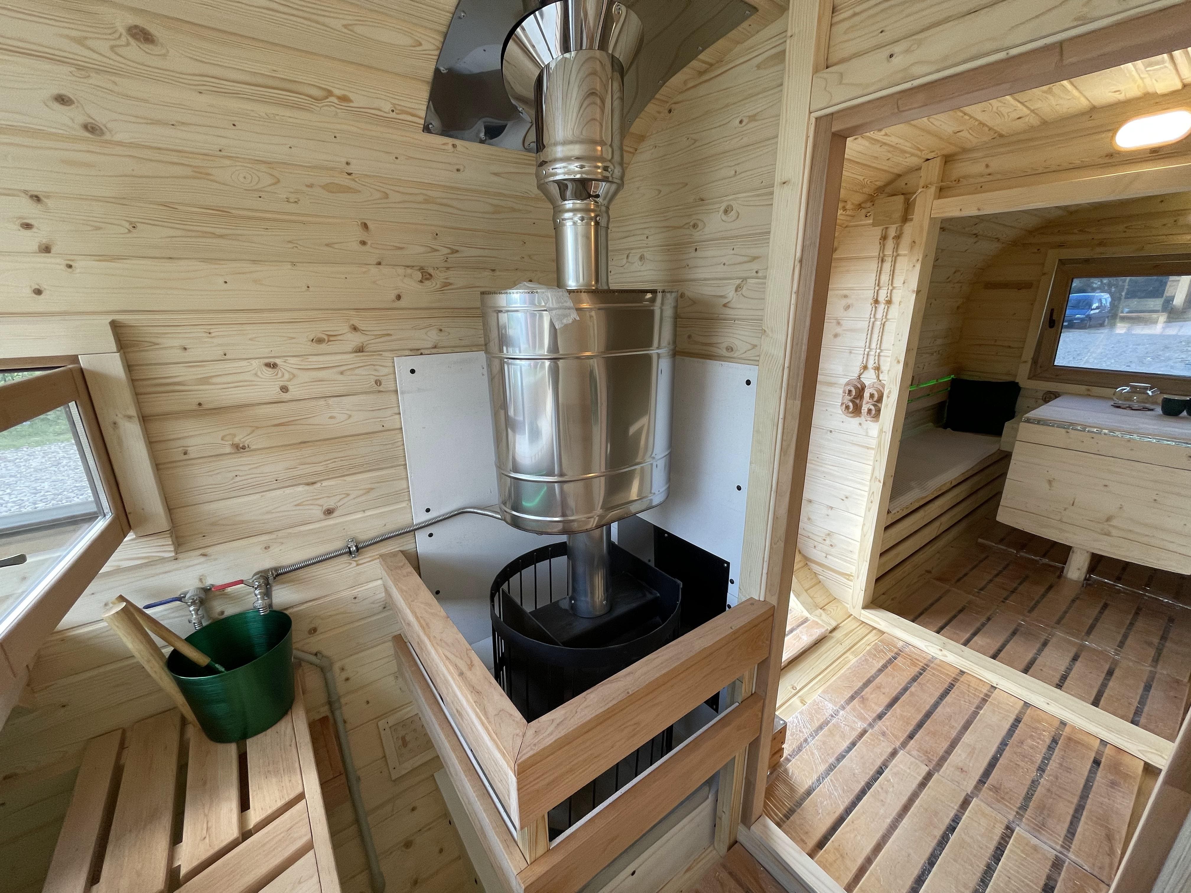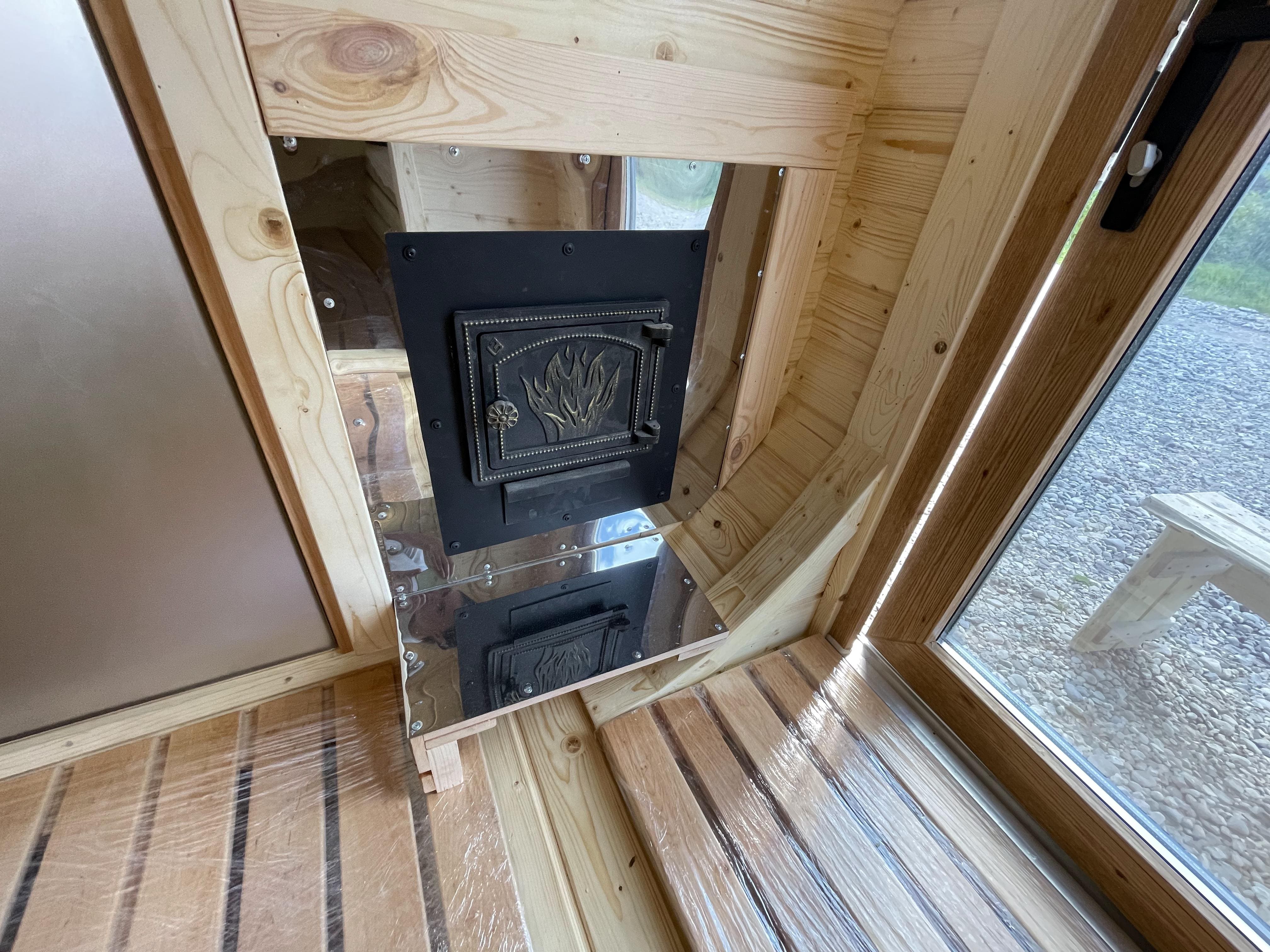 Топку в данной модели чаще выносят на улицу или в зону отдыха. Такой вариант остаётся удобным и практичным, позволяя поддерживать чистоту внутри парной.