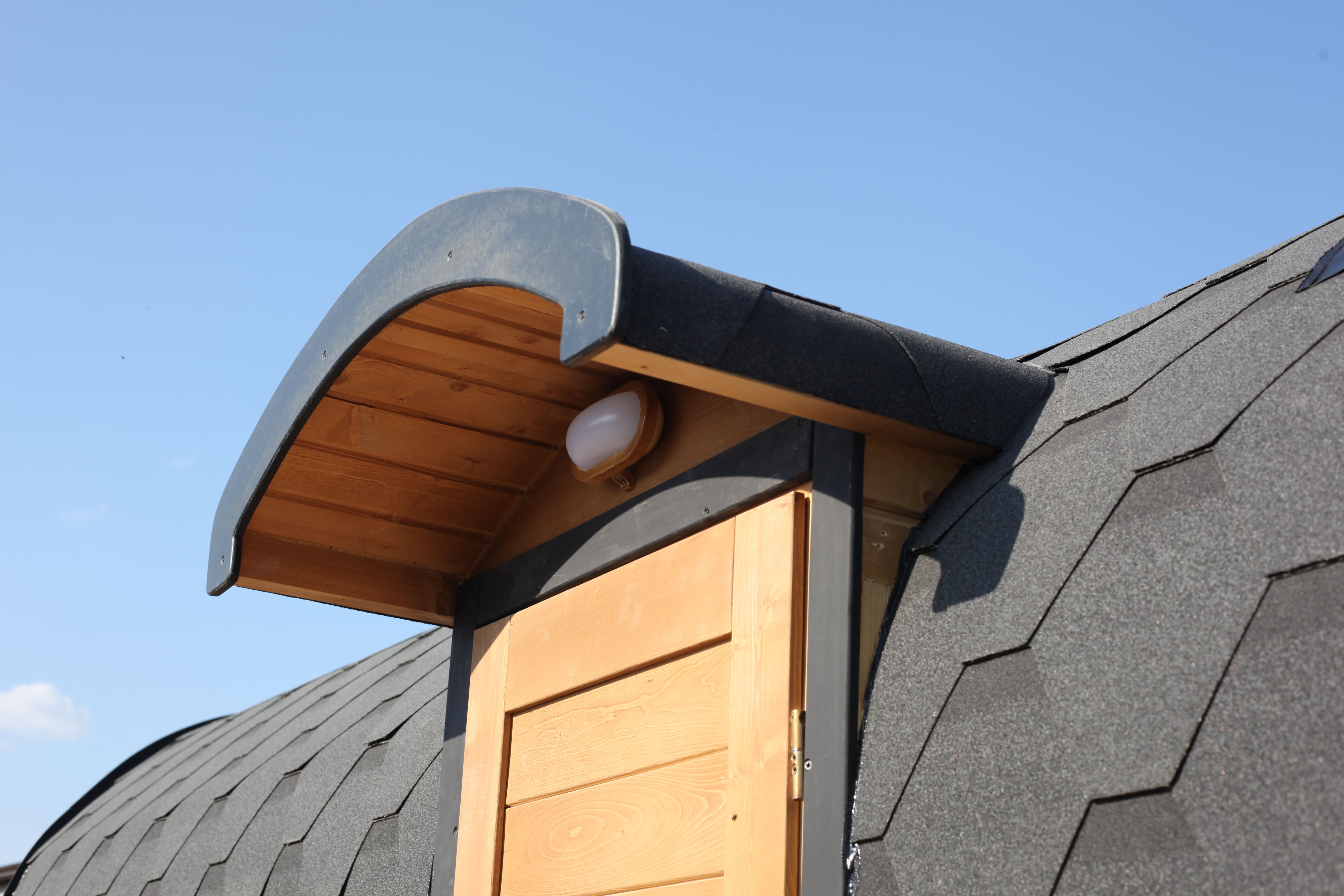 Боковой вход с навесом над дверью.