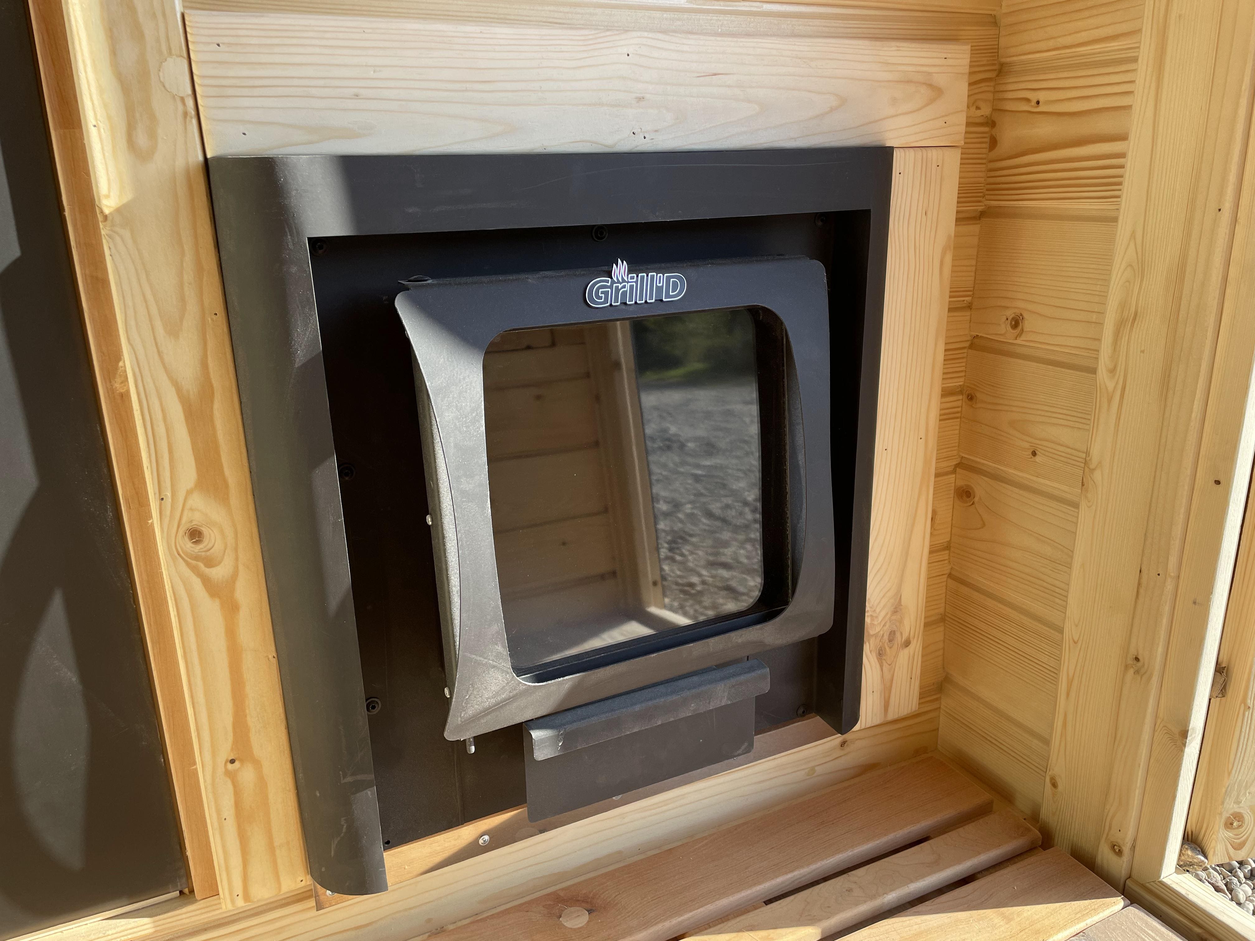 GRILL'D COMETA 180 VEGA WINDOW MAX с выносной топкой в комнату отдыха.