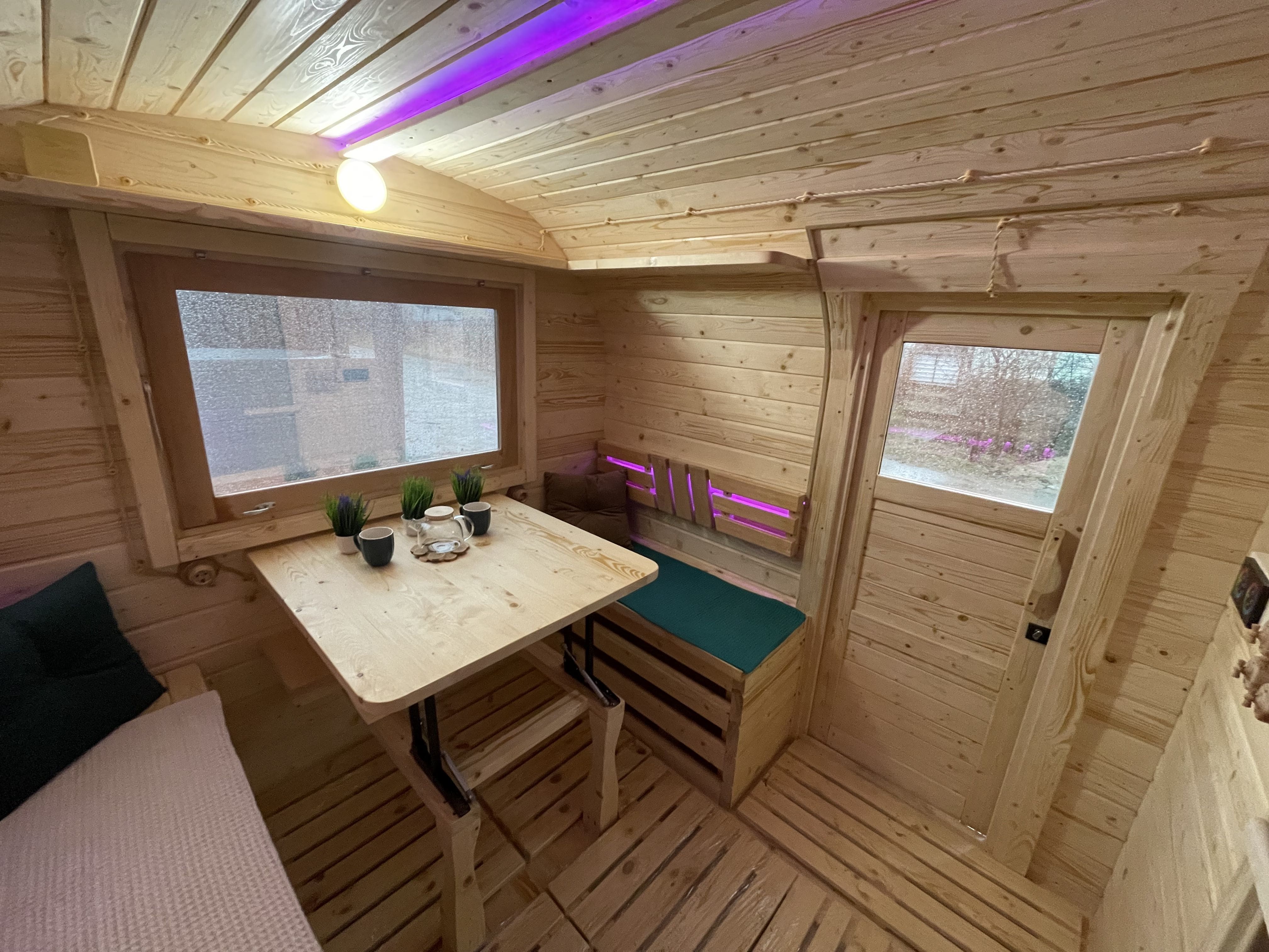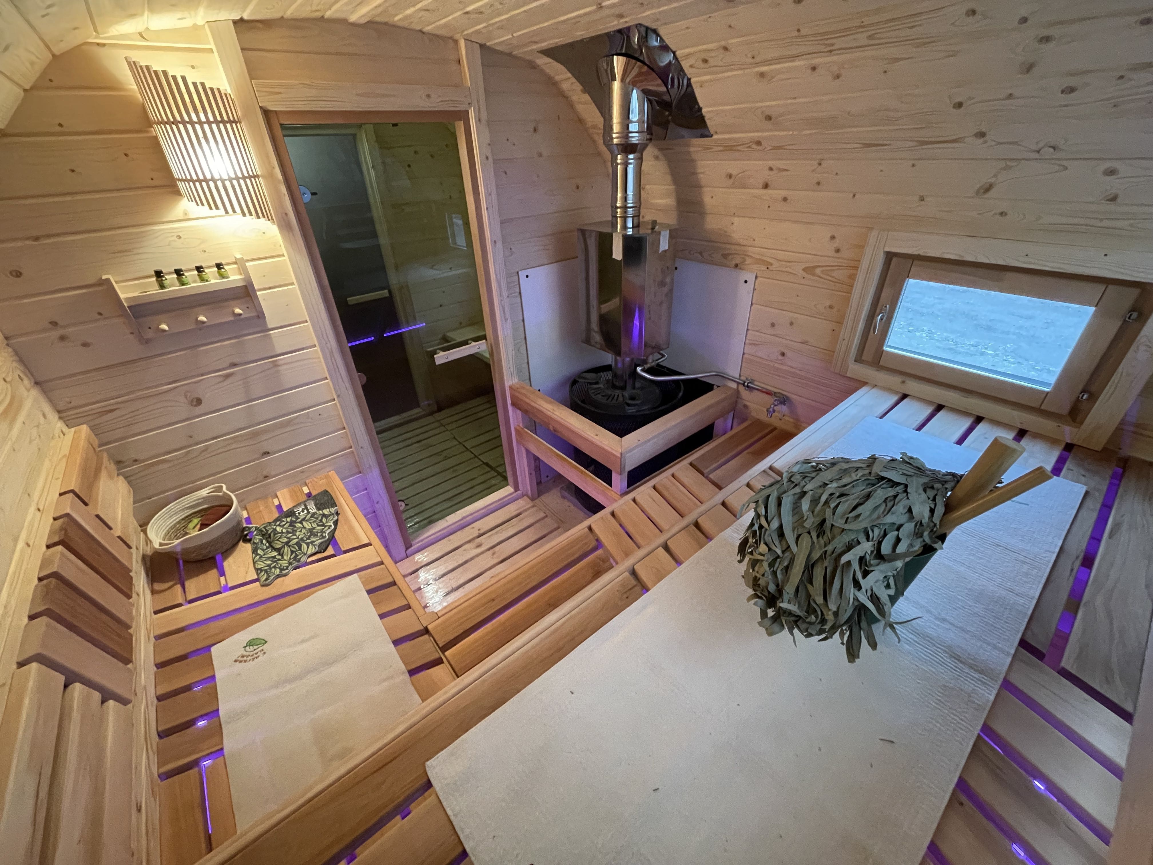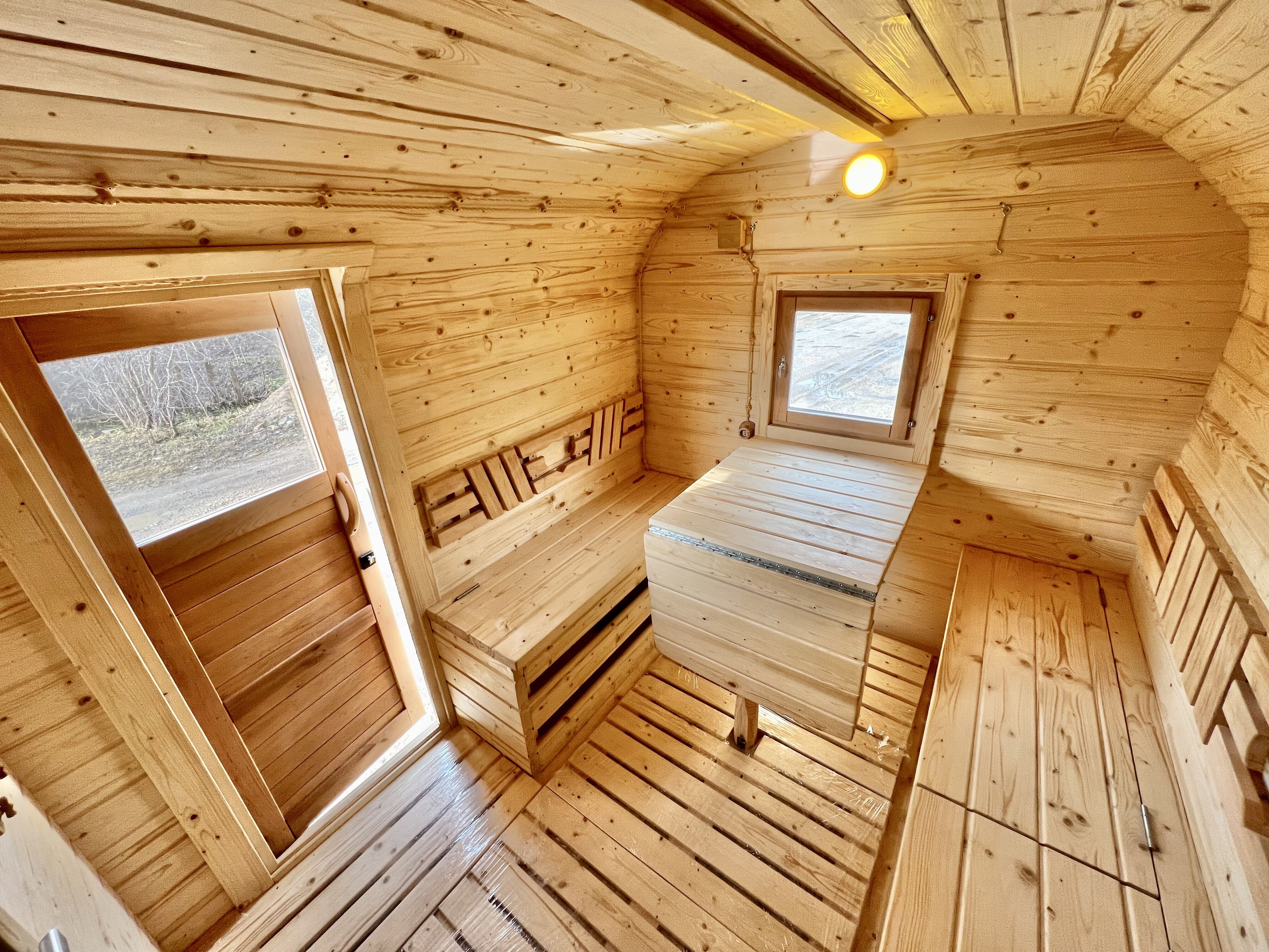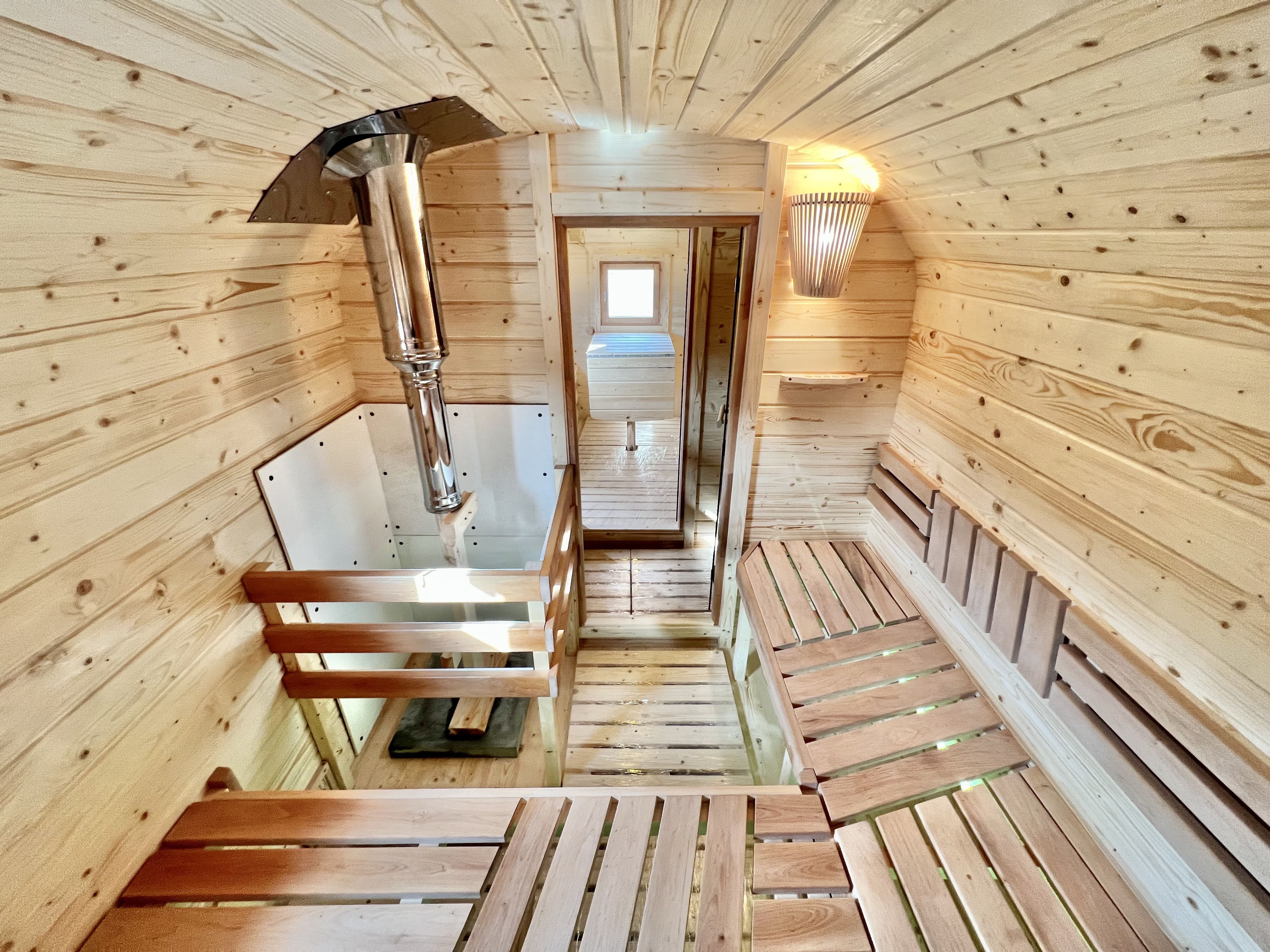 Стандартные габариты модели составляют 2,37 м по ширине и 2,24 м по высоте. По запросу возможно изготовление бани с увеличенной высотой, что удобно для высоких людей и тех, кто ценит простор.