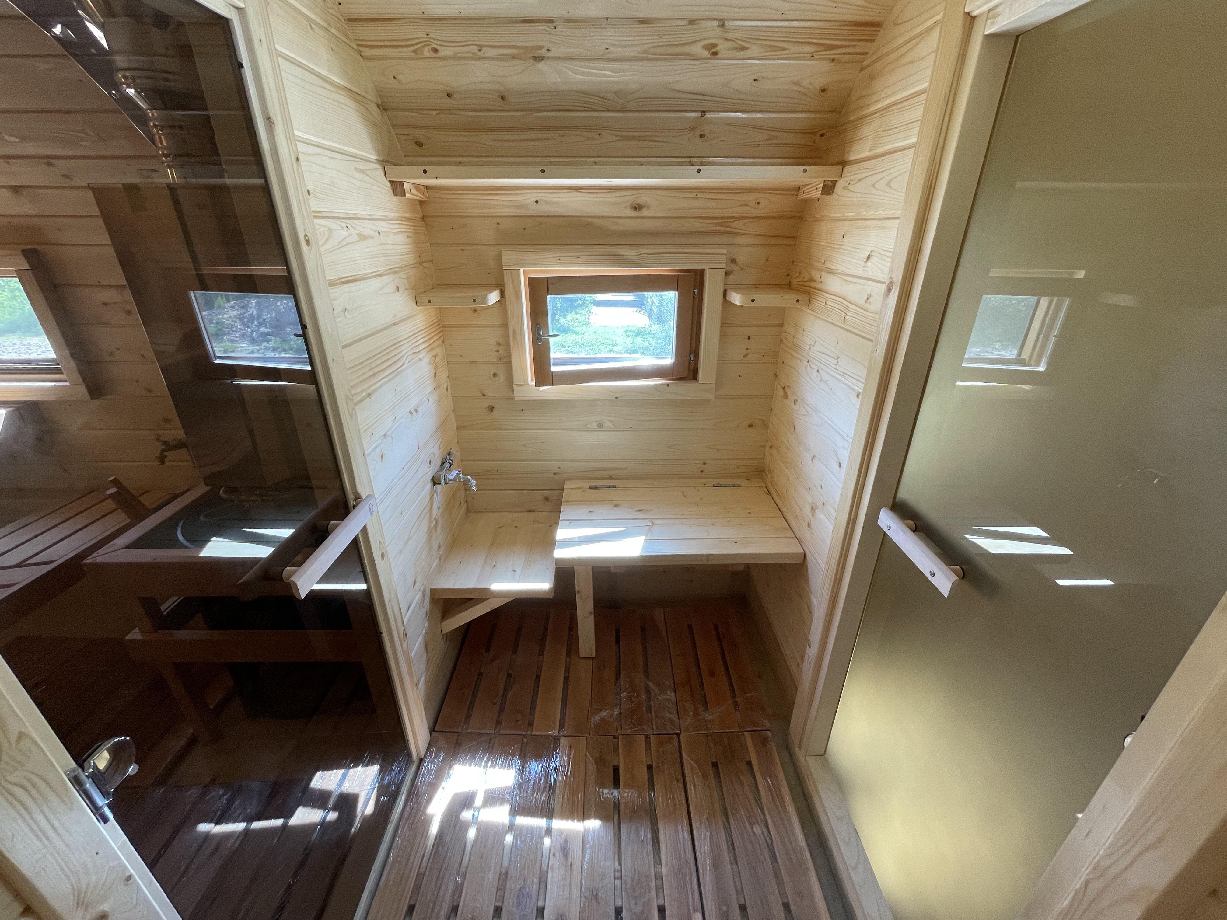 Ровный пол по всей площади делает баню удобной для передвижения и обустройства интерьера. Внутри баня воспринимается как капитальное помещение, где легко разместить мебель и дополнительные зоны.