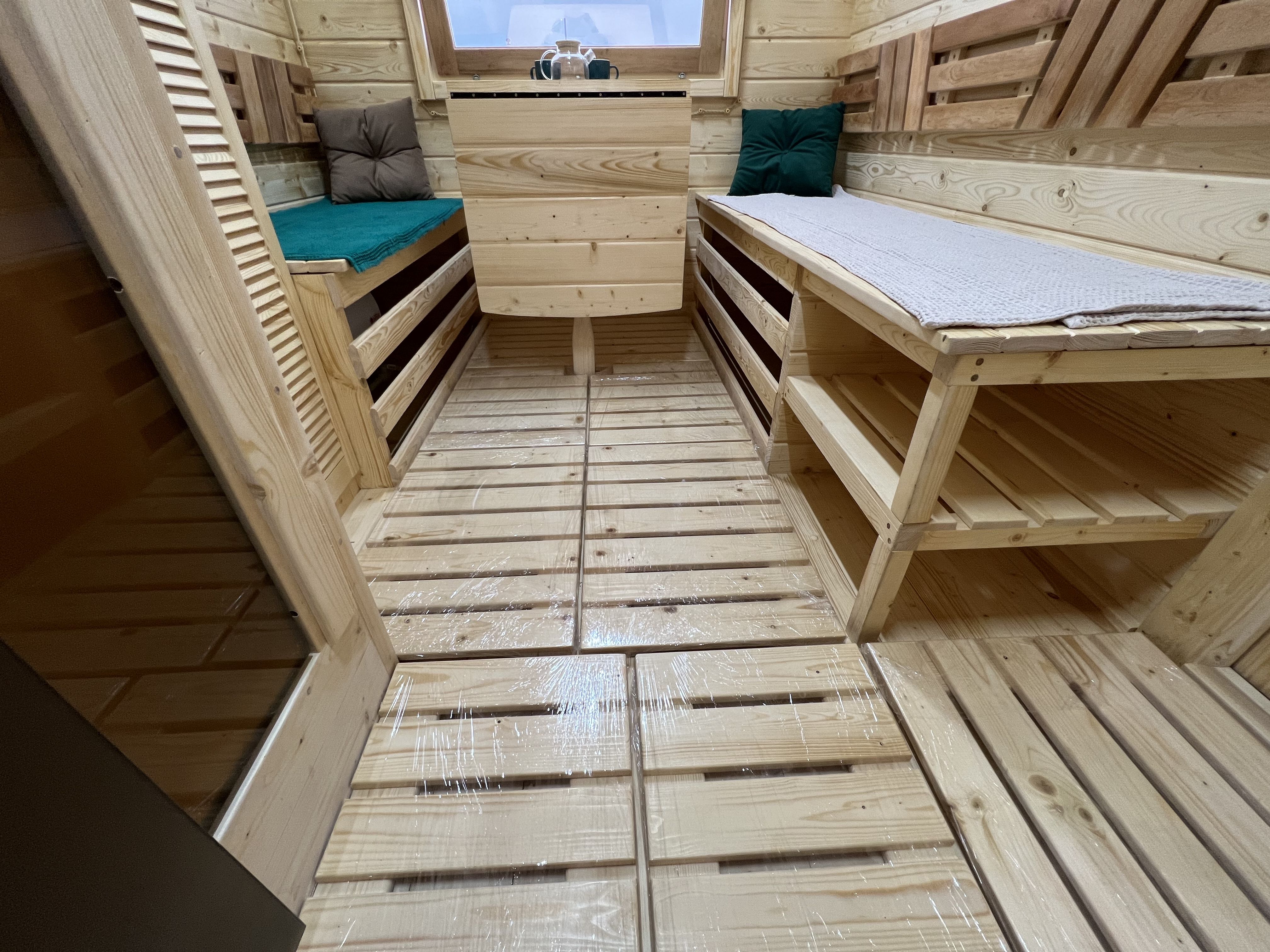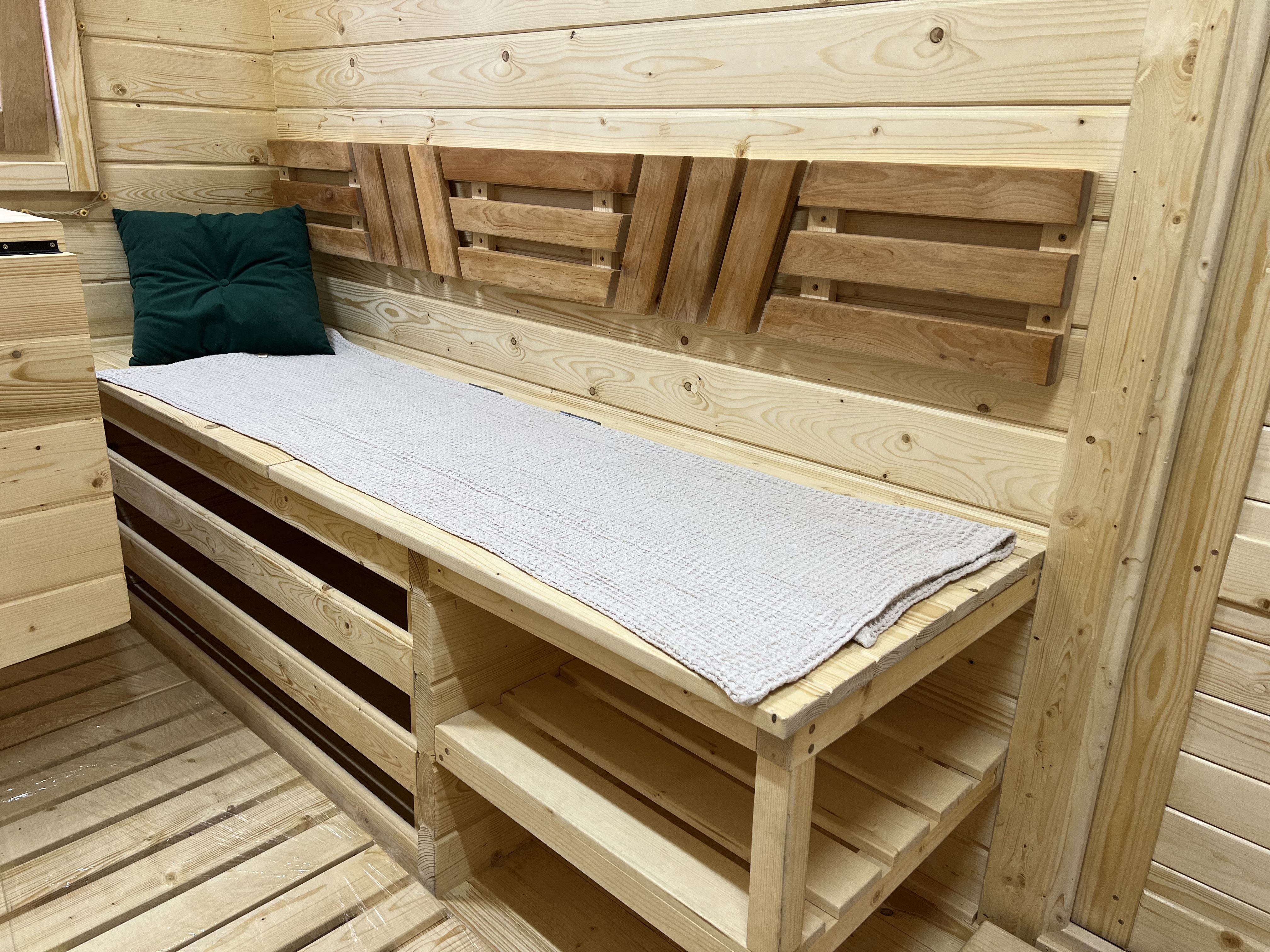 На производстве баня упаковывается и подготавливается к перевозке, после чего загружается в фуру или пятитонную машину с боковой загрузкой.