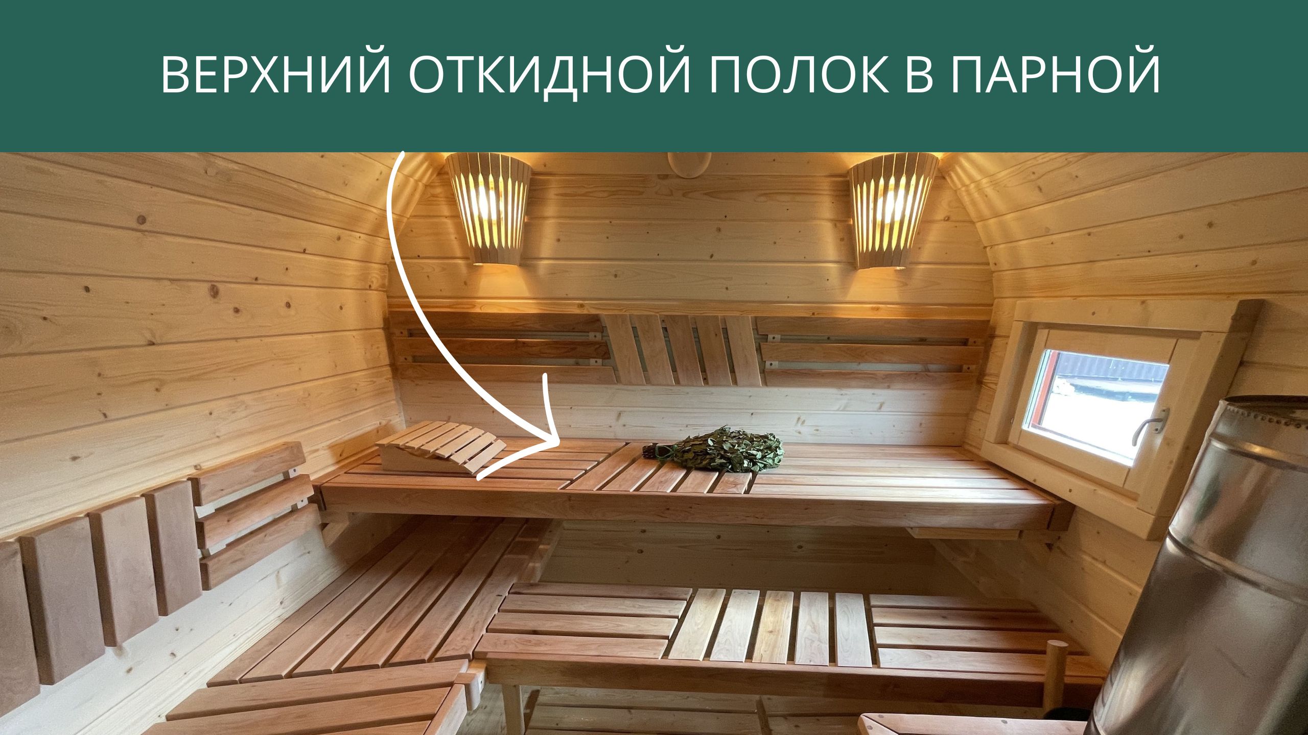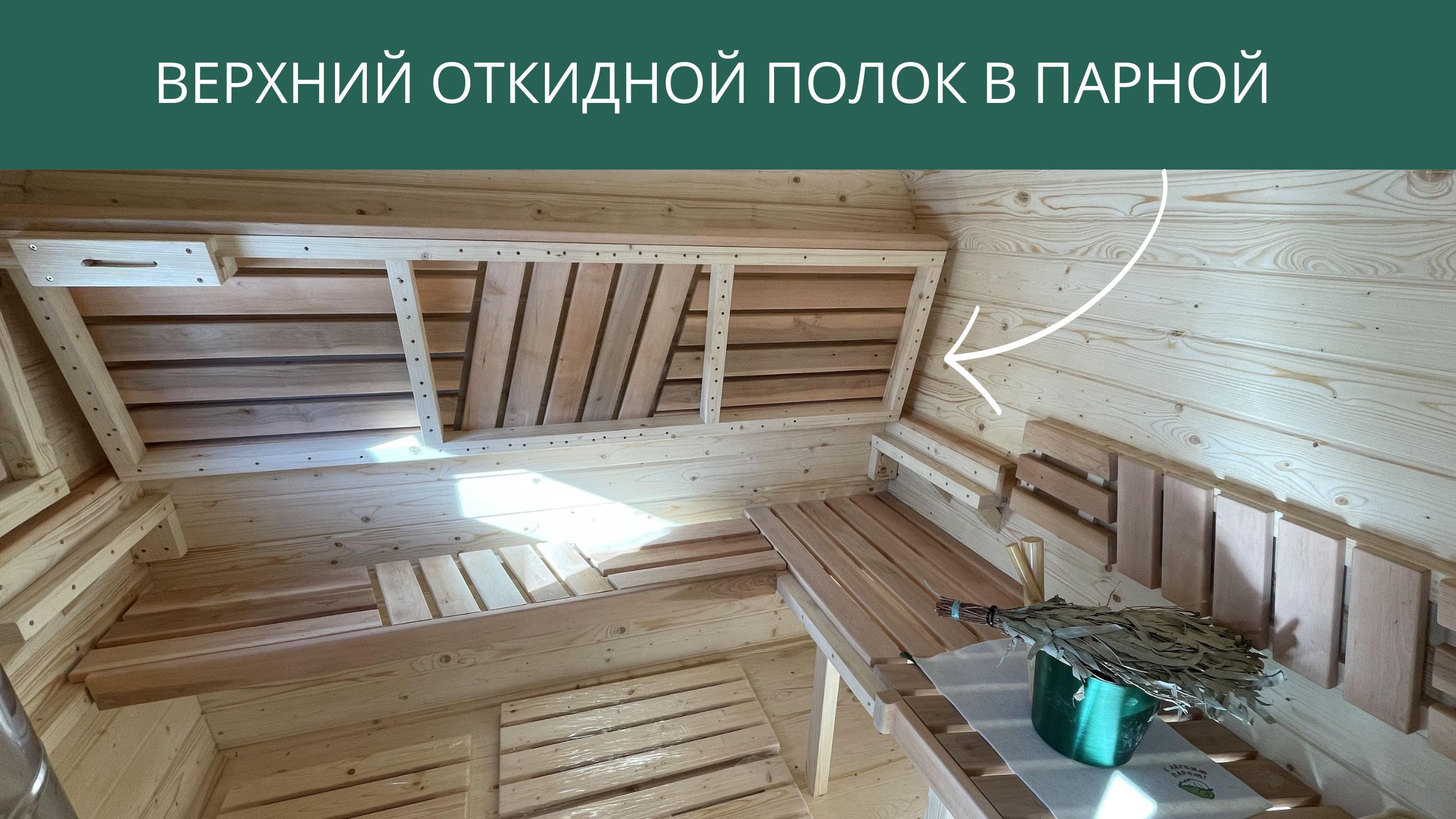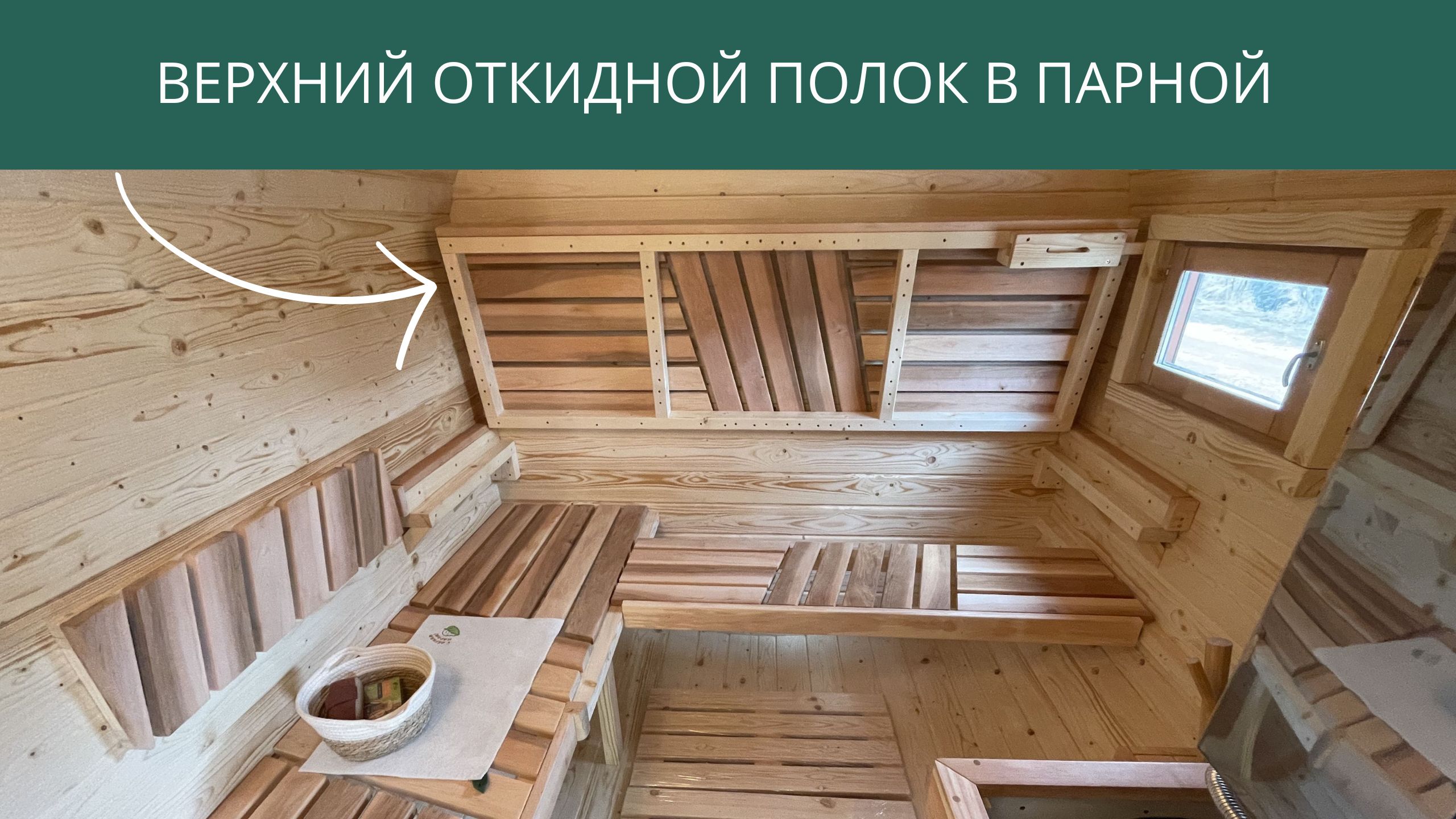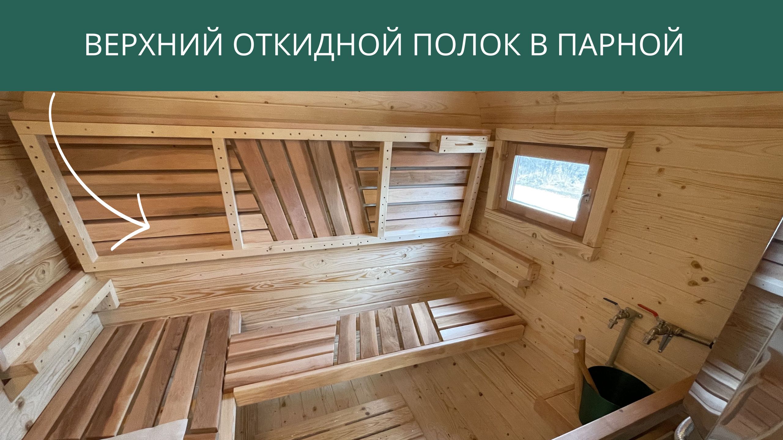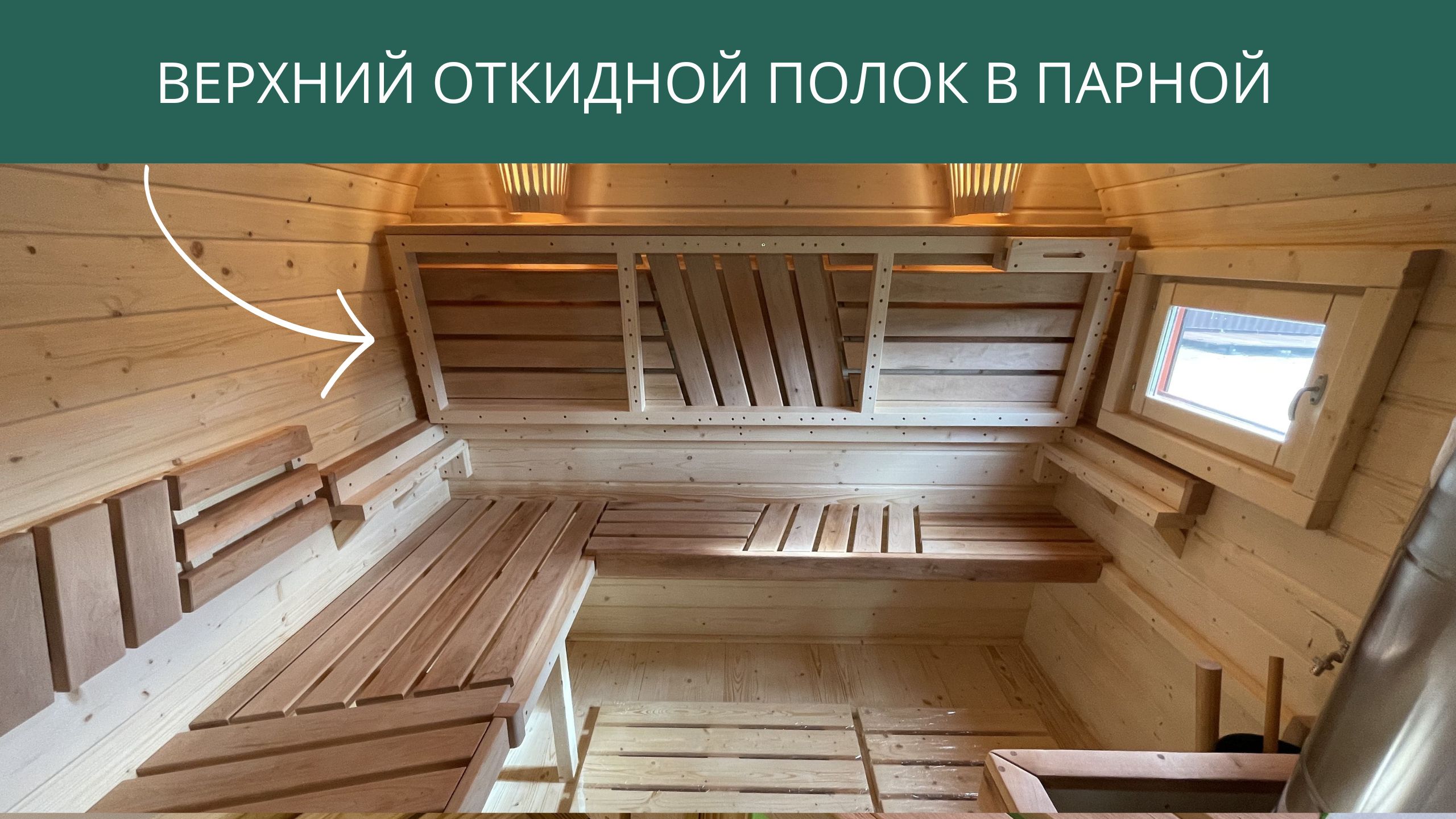 Главная / Каталог / Опции и улучшения / Мебель для бани / Верхний откидной полок в парной